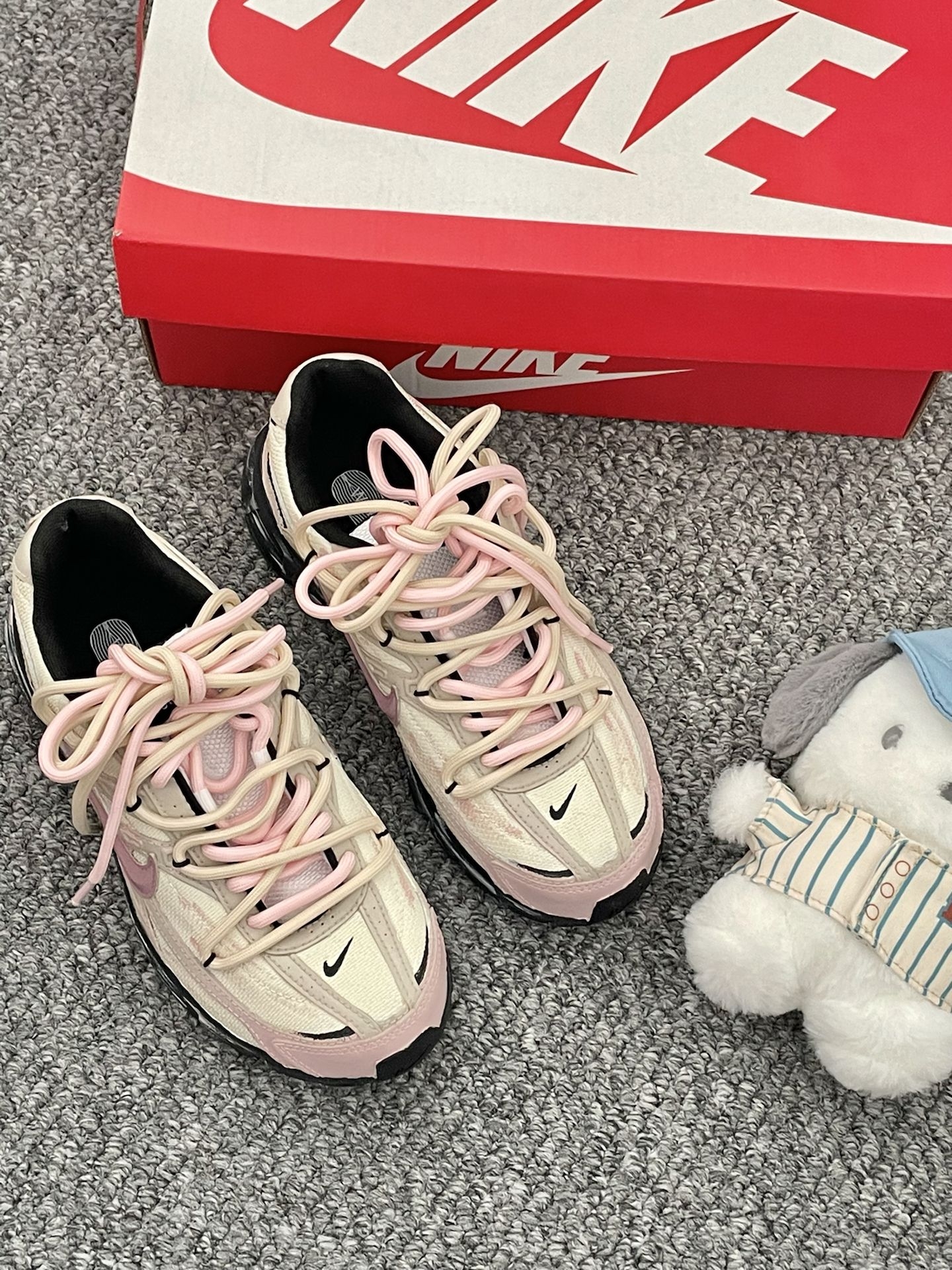 Nike绿野仙踪🍃➕帕恰狗玩偶充电宝🟰我去上学啦🥳|||我喜欢Nike的樱花粉跑鞋哎 这双踩着软软的 适合夜跑 奶粉色搭配浅卡其 好像奶油冰淇淋 搭我的休闲裤 裙子蛮好看滴 不仅可以跑步穿 日常通勤也不错 #韩系入冬穿这双 #2025跑鞋年终盘点 #交出你的鞋靴链接 #马上换新鞋 #这双潮鞋我锁死