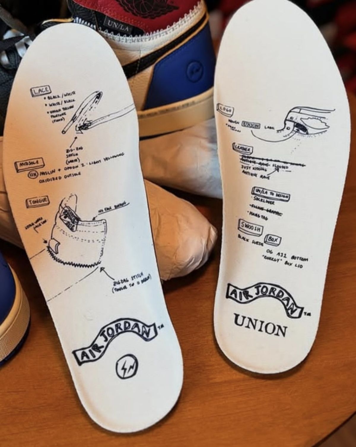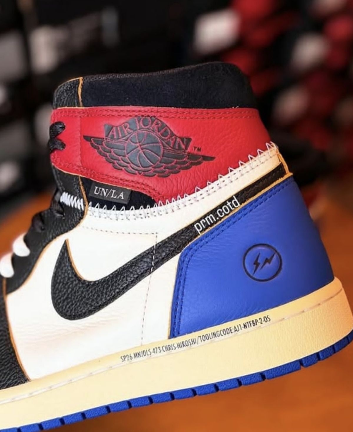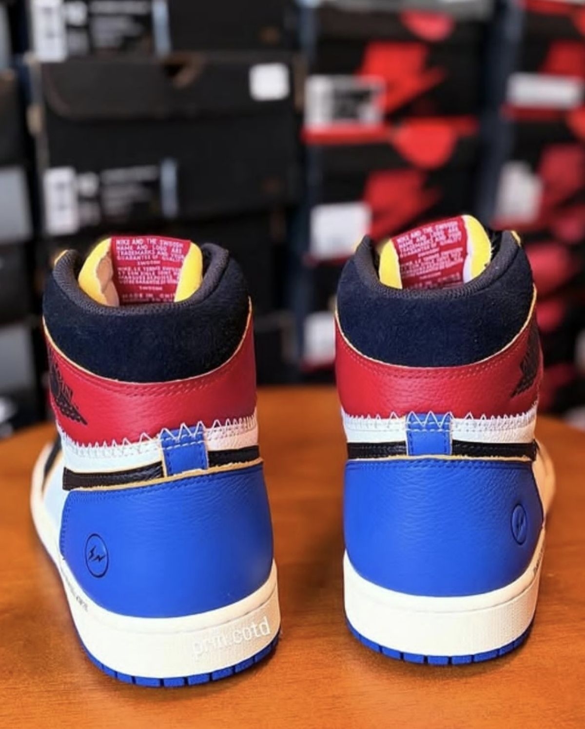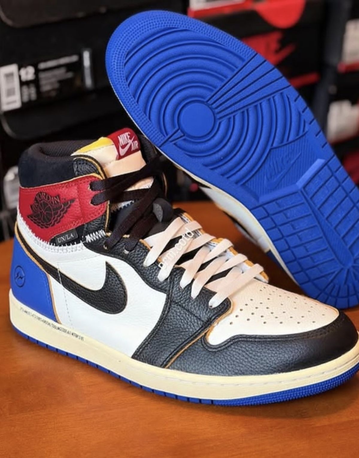 外观设计: - 撞色拼接天花板:黑、白、蓝、红四色撞色,经典AJ1高帮鞋型+做旧米白中底,复古感拉满;黑色Swoosh+Fragment闪电标+Union标签,三方联名标识直接拉满辨识度。 - 细节控狂喜:鞋舌、鞋垫都带有联名专属标识,鞋身材质拼接(皮革+织物)增加层次感,做旧中底自带“穿搭滤镜”,上脚自带复古街头范儿。 核心卖点: 1. 三方顶流联名:Fragment(藤原浩)×...