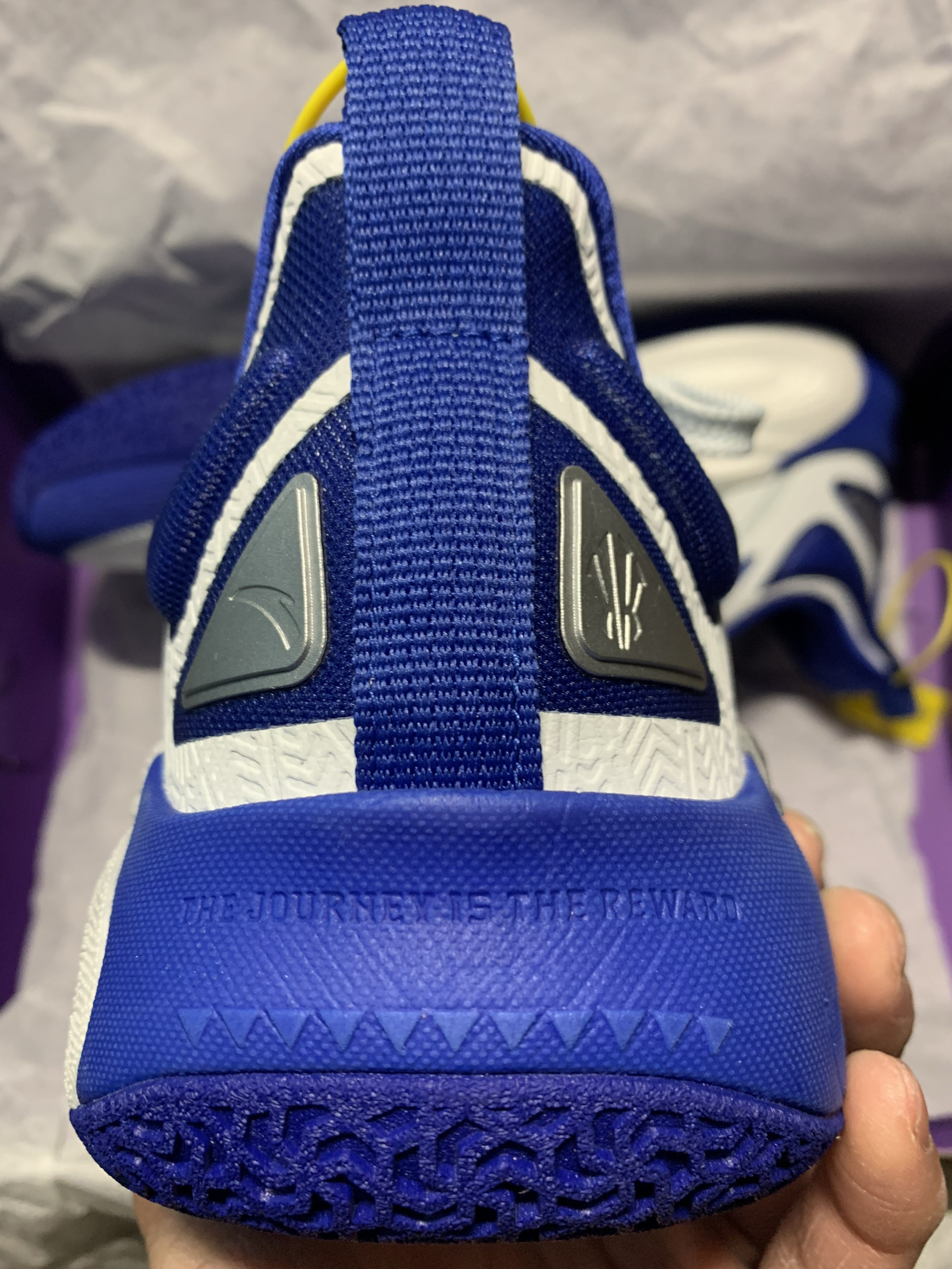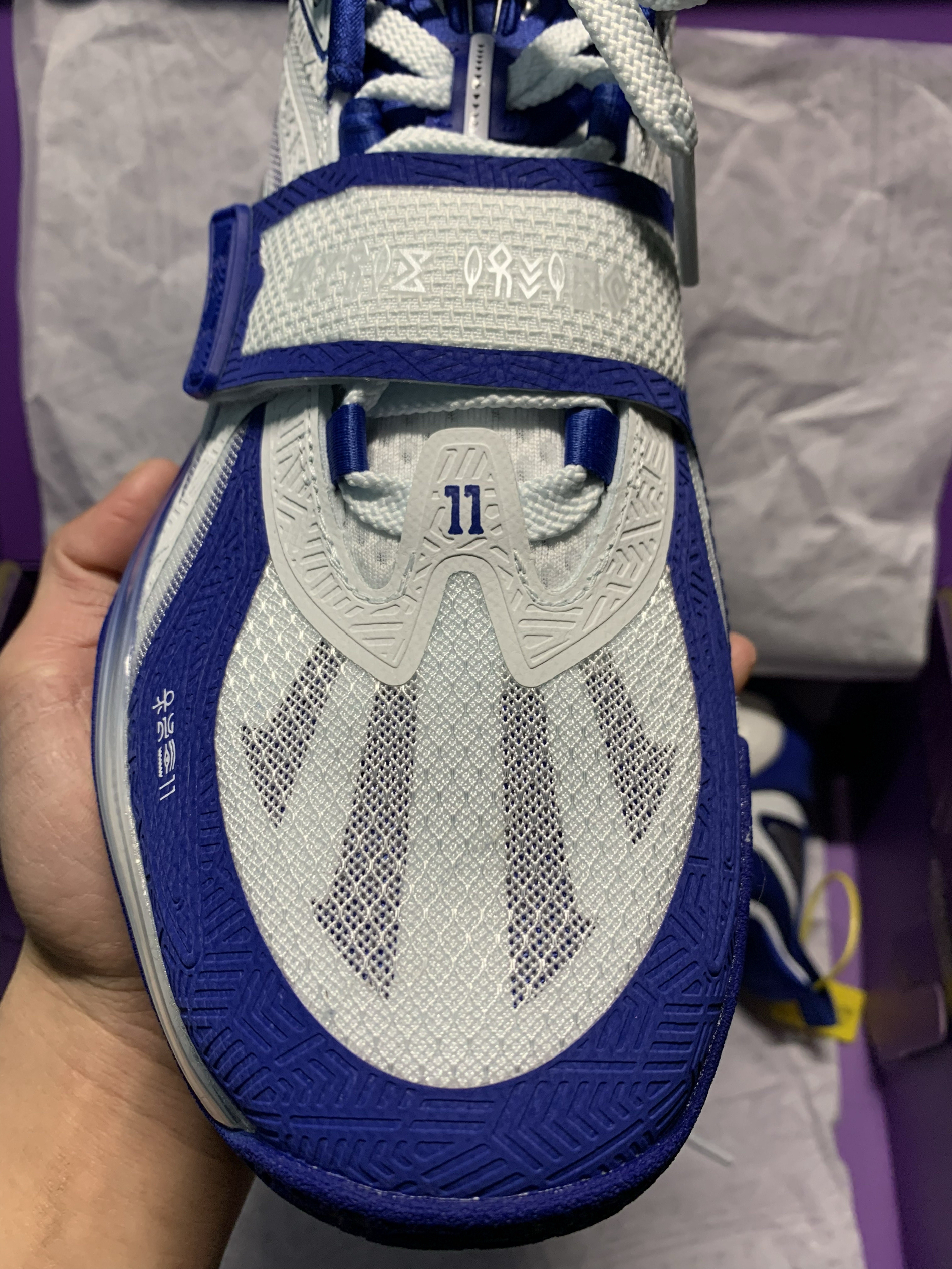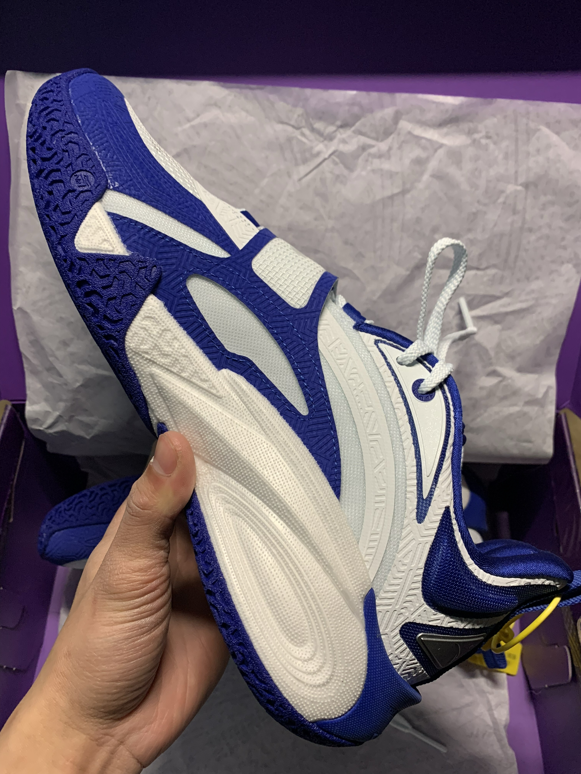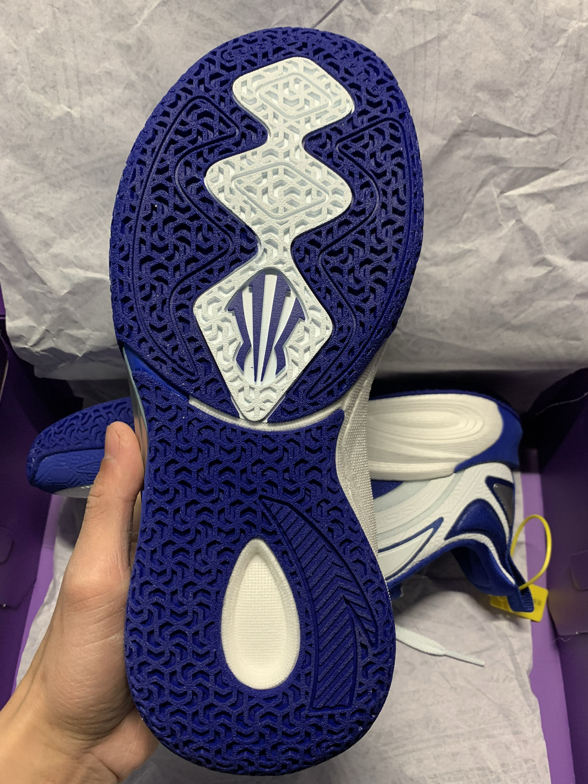 谁懂欧文球迷的狂喜!杜克大学配色直接戳中审美,经典蓝白撞色清爽又吸睛,今天就来深度拆解这双鞋。 外观上,它延续了欧文系列的风格,刺绣、鞋底花纹等细节处很有诚意,但鞋面上大面积热压材质质感不足,用料略显单调,远看吸睛,近看质感欠佳。 实战性能方面,它有不少亮点:整体脚感舒适,鞋型宽容度大,各种足弓、脚背高度都能适配,宽脚选大半码也能驾驭! 中足内侧氮气中底大面积上翻,提供舒适的弹性支撑感;后跟泡...