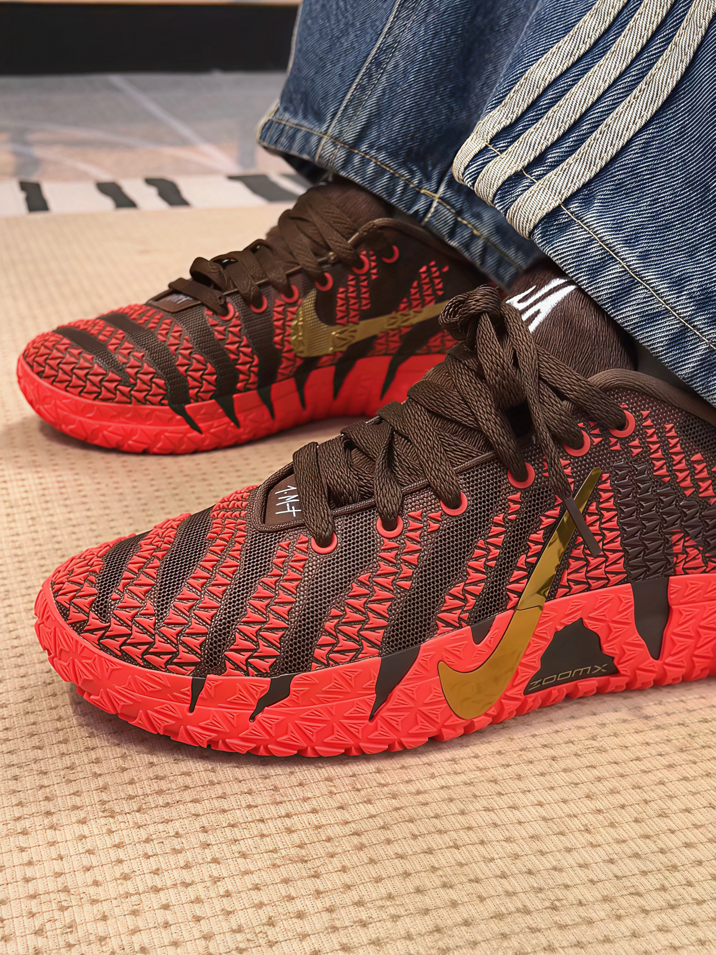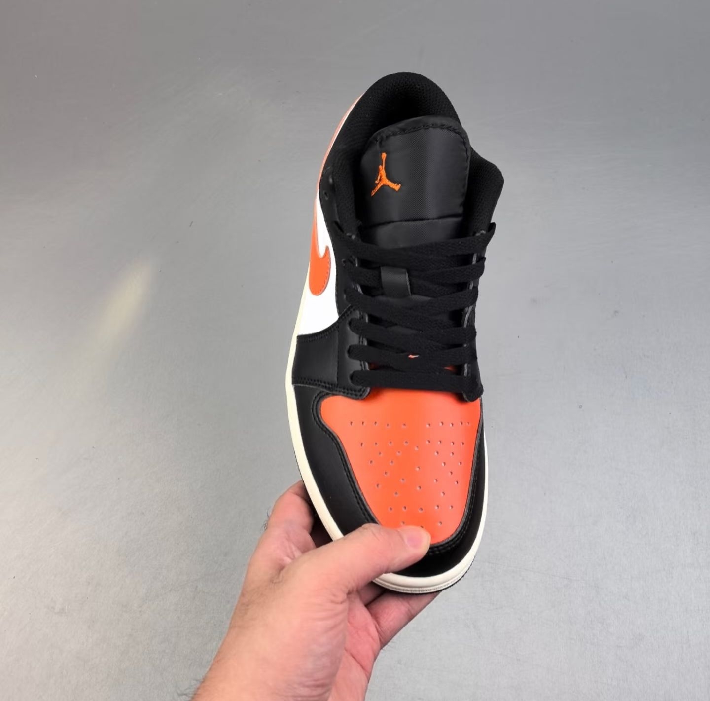黑红配色永远是yyds!这双AJ的磨砂皮质感绝了,红黑撞色超有视觉冲击,鞋身的飞人logo细节拉满,低帮设计上脚超百搭,不管搭牛仔裤还是运动裤都贼帅,脚感也很舒服,街头潮人直接冲就完事!