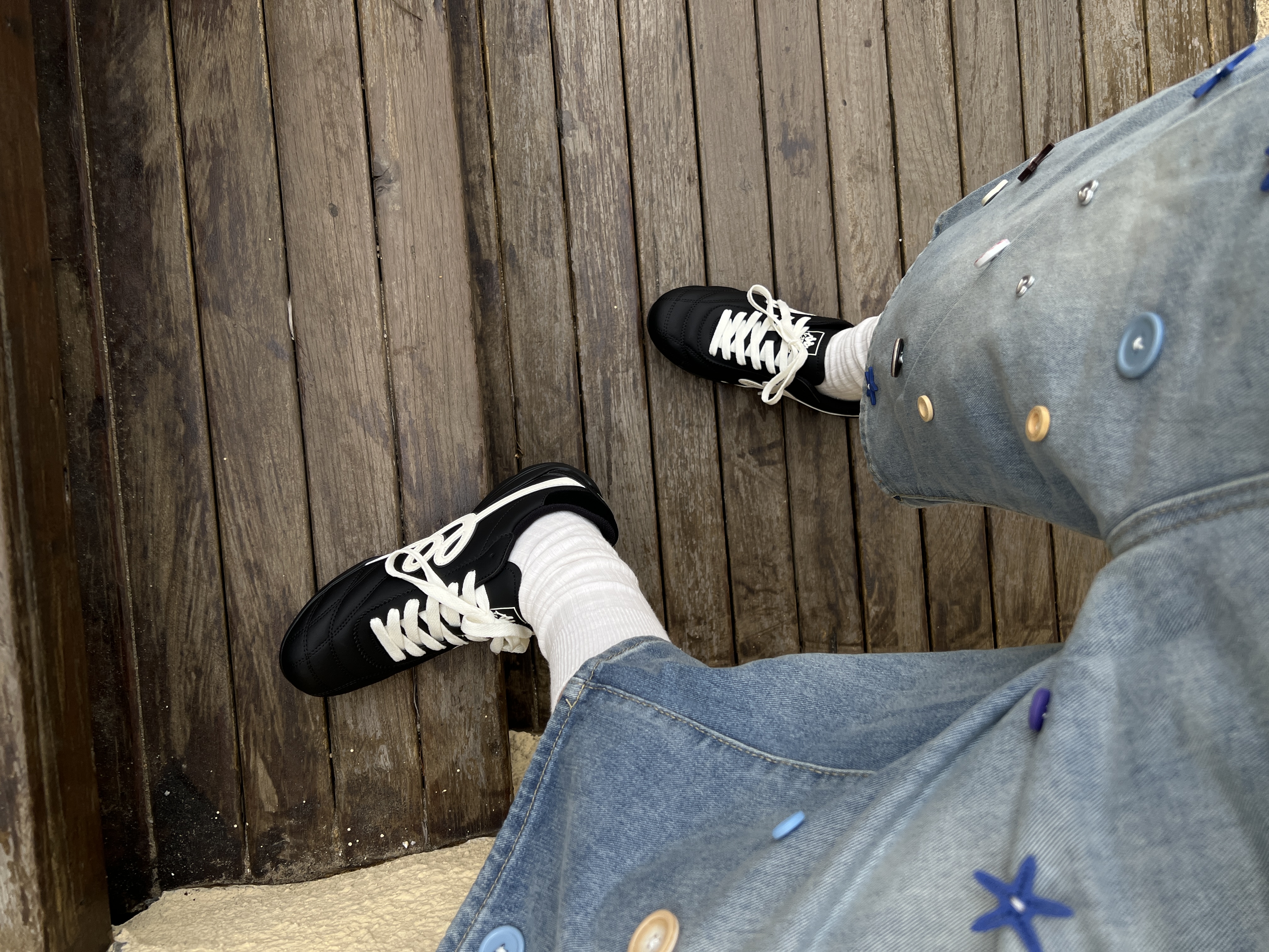 趁着好天气出门走走 附近的咖啡店太惬意了 今天穿的是Kappa足球德训鞋 随便搭个八分牛仔裤就能嘎嘎出片 短头薄底 脚感贴合又舒适 溜达逛街两小时也不累脚🚶
