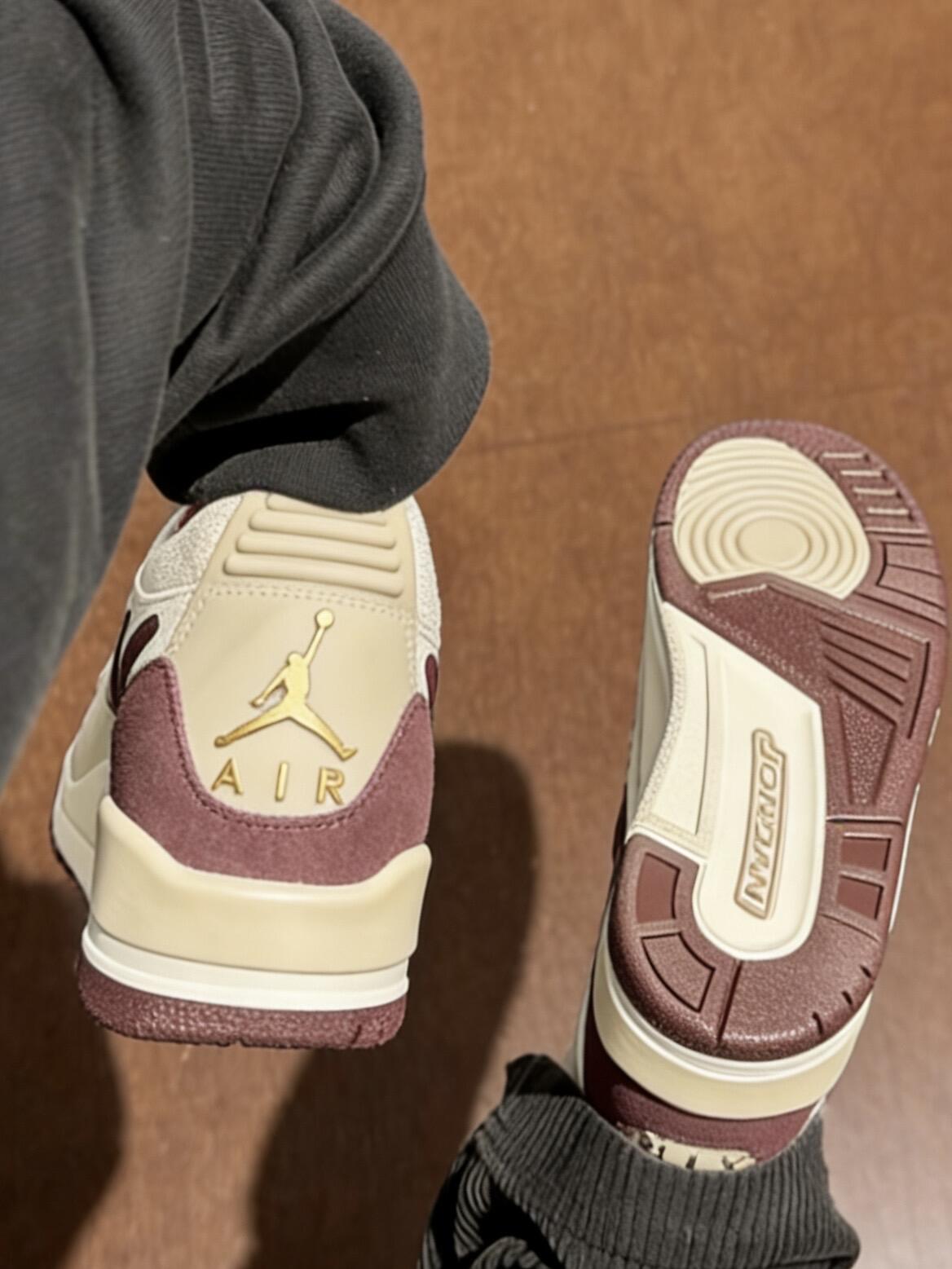 打工人下班冲的第一波快乐,就是这双AJ312酒红到了!拆箱的时候摸着皮质就觉得值,米白拼酒红的配色温柔又复古,周末搭牛仔裤去逛市集,回头率直接拉满~脚感也很软,暴走两万步都不磨脚,打工人的日常通勤鞋终于选对了!