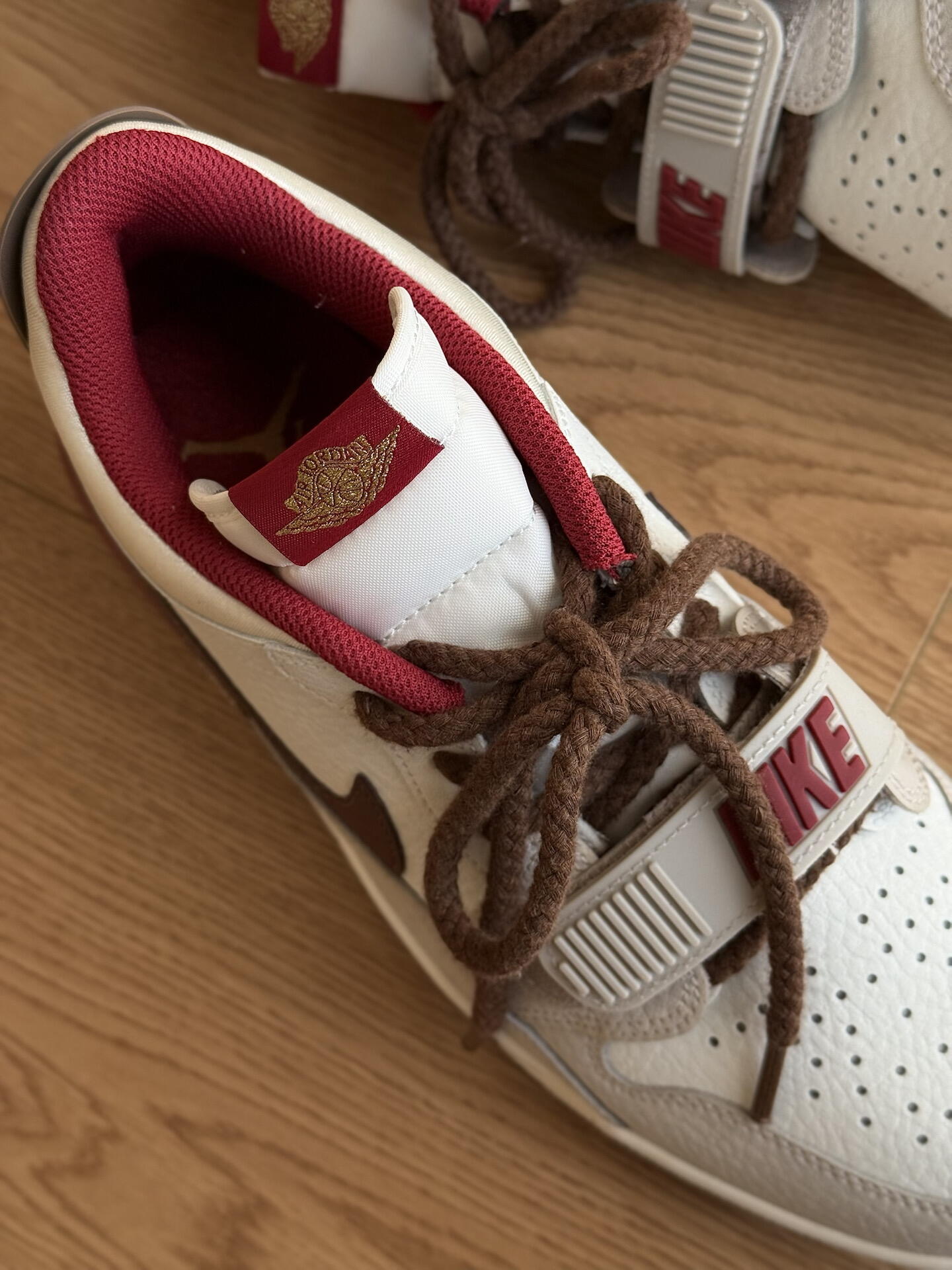 马年限定Aj312这双马年限定AJ312换鞋带后还是蛮好看的 原配d红棕配色的年味还挺足的 自己换了根棕色麻绳鞋带,看着层次感能强点。 魔术贴偶尔会卡脚背,不过上脚还算舒服 搭休闲装、韩系穿搭都还行 这个价位自穿挺合适的