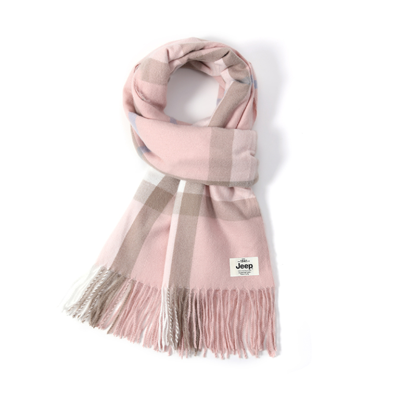 粉色格纹调得很嫩,搭大衣或者针织衫都很合适。材质摸起来软乎乎的,贴脖子不扎,风大的时候围上,保暖度也够,日常搭衣服超提气质的~