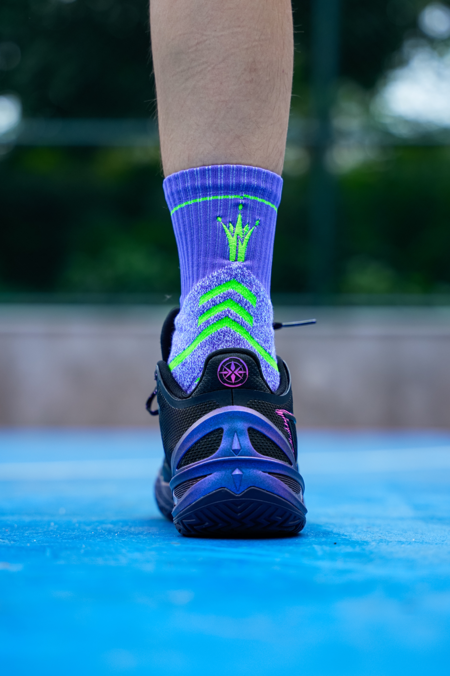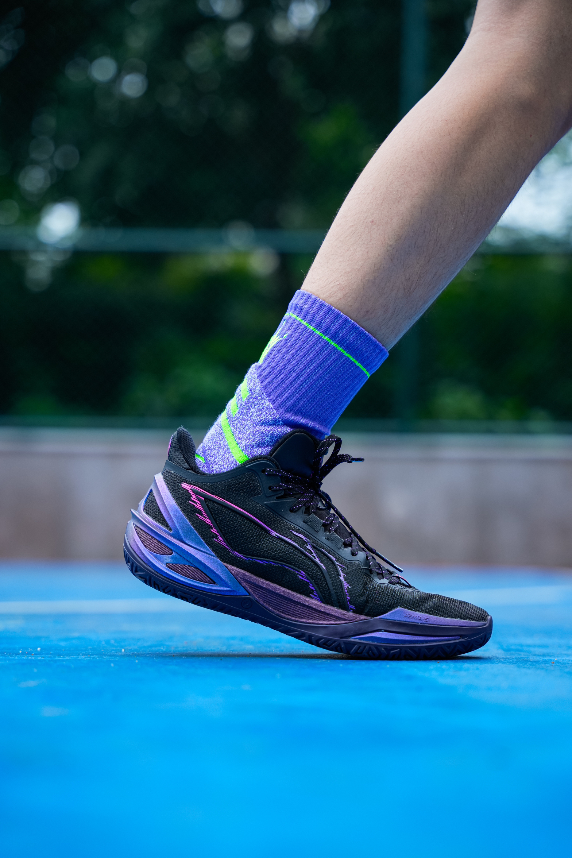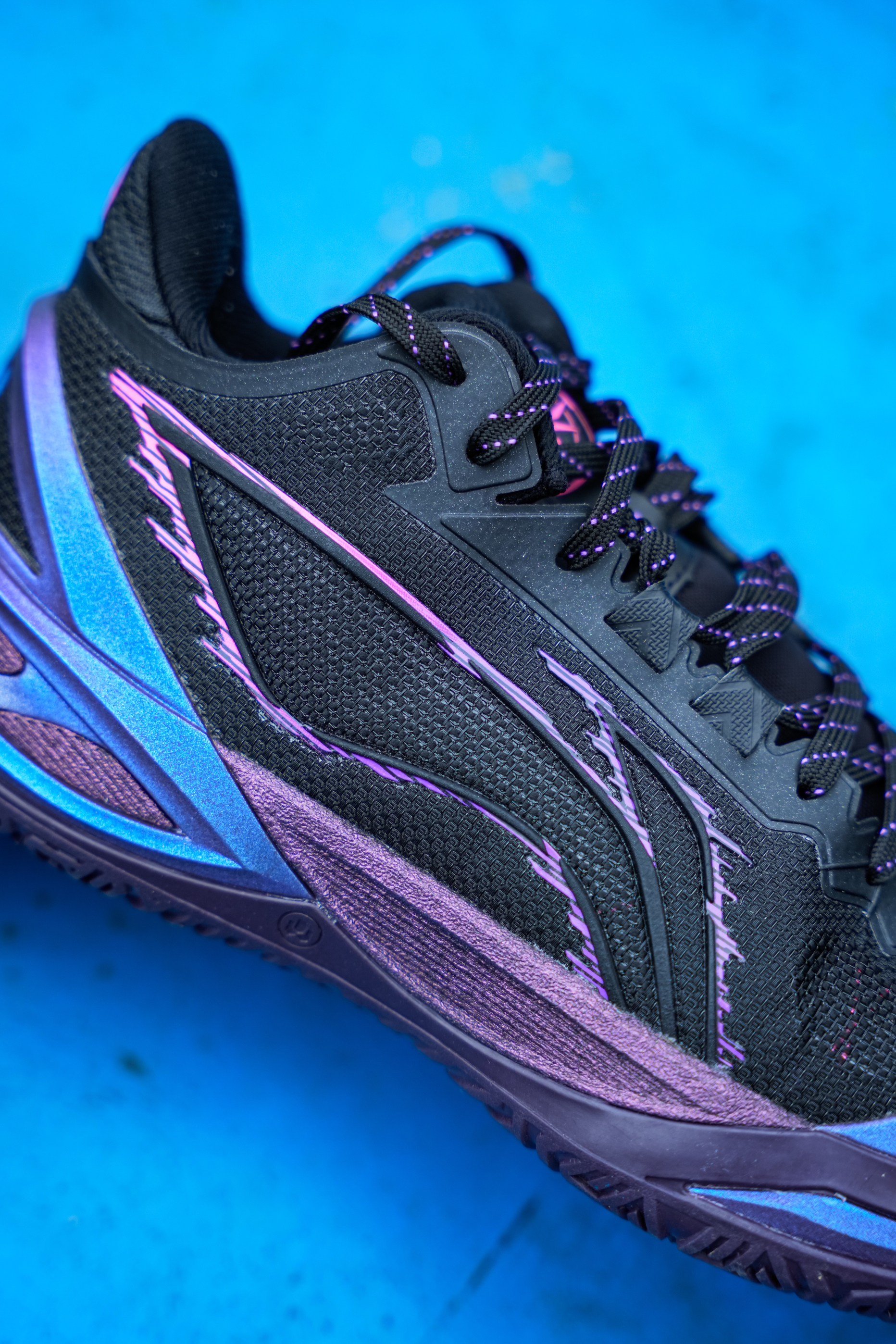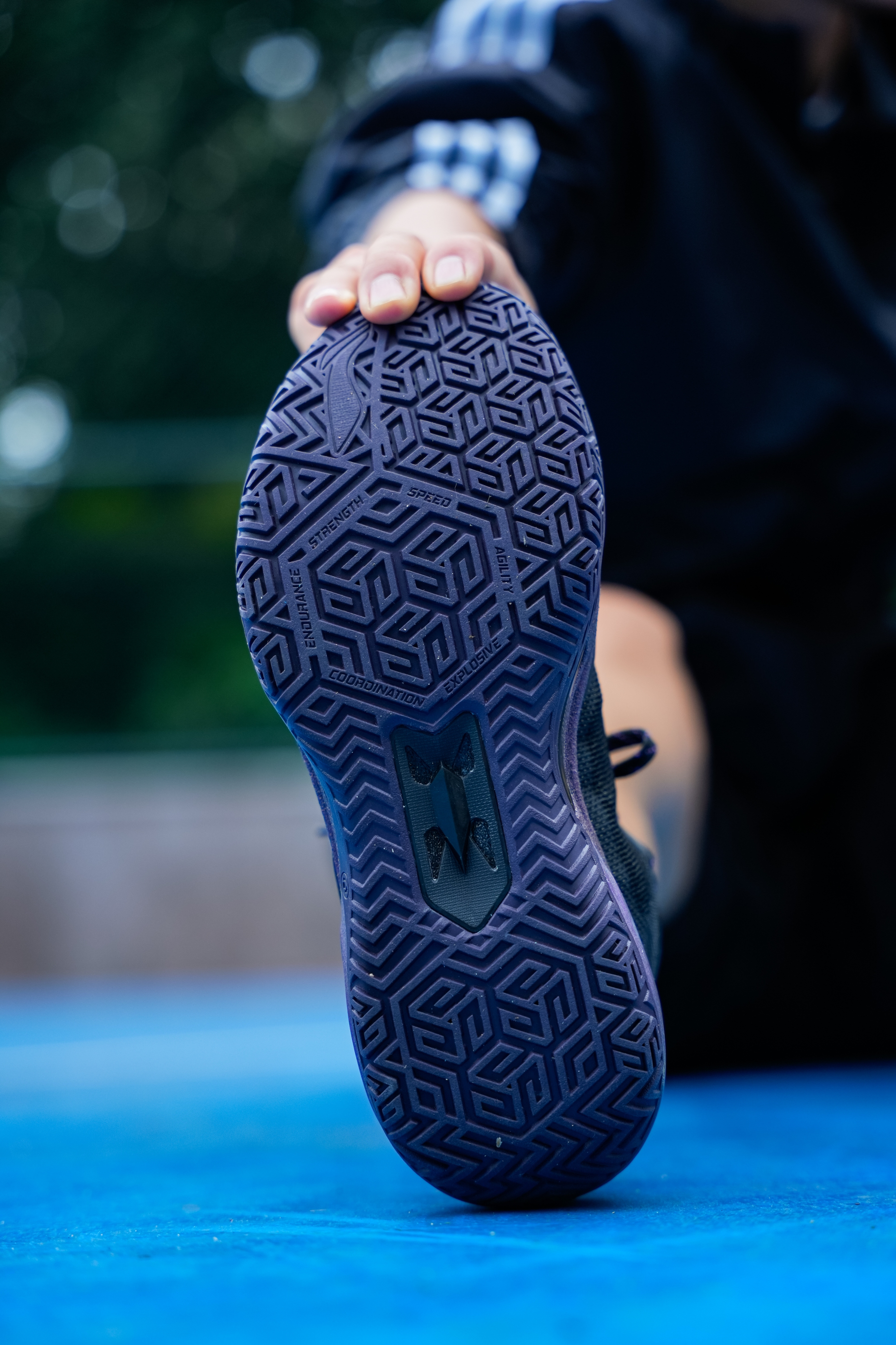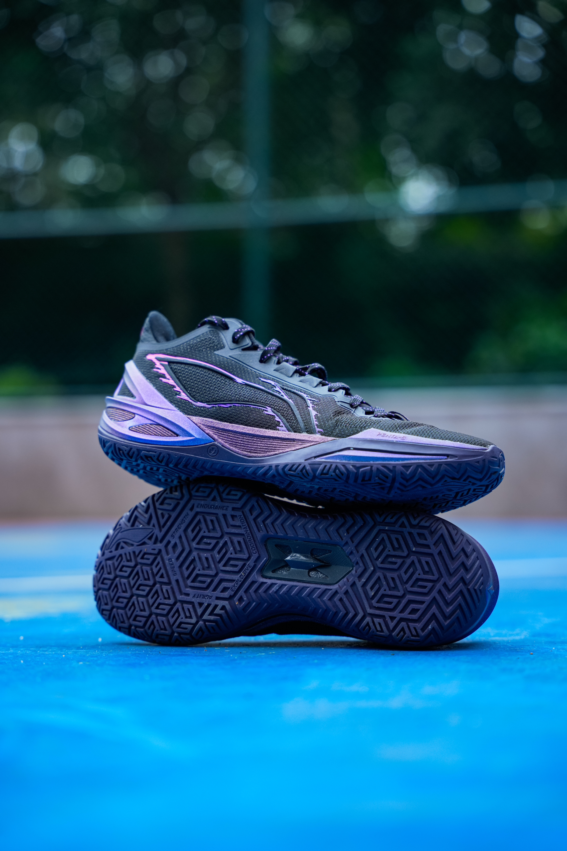 黑配色的利刃系列每代感觉都不会让我失望,这次6代的紫萤石配色我觉得也是如此,鞋面整体以黑色为底 侧面环保式蓝紫渐变加上彩色logo,颜值高而且比较耐脏… 这次六边形战士也不是白叫的,前掌加入了黑科技PENTA-S 就是一块tpu抗扭片,提升了横向的稳定性,并且我感觉在变相突破时也有助推感受! 中底全掌䨻外漏挺多的,加上tup包裹 形变空间更大 能给的更好的缓震脚感,给到的灵活性不错! 鞋面包裹性对...