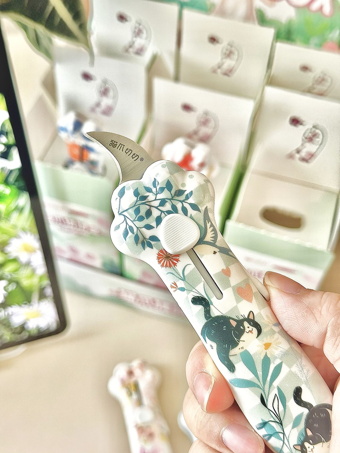 天啦噜,猫爪切切你小汁也太会了吧~ 居然把猫爪爪做成拆快递小刀!还是个盲盒 手黑的我,从来不看运气,直接端盒 拿到手拆开,是一个个肉嘟嘟的可爱小猫爪 滑一下能出刀,侧边按按就能收 拆起东西来hin方便~ 一盒6个色,还藏着隐藏款✨ 这下切水果,开包装,拆快递都有自己的刀啦 和好闺闺一人三把刚刚好,嘿嘿嘿 像是每天都有小猫咪帮我开快递,幸福得嘞✨ #盲盒开箱记录 #礼物纠结症必看 #入夏幸福感好物...