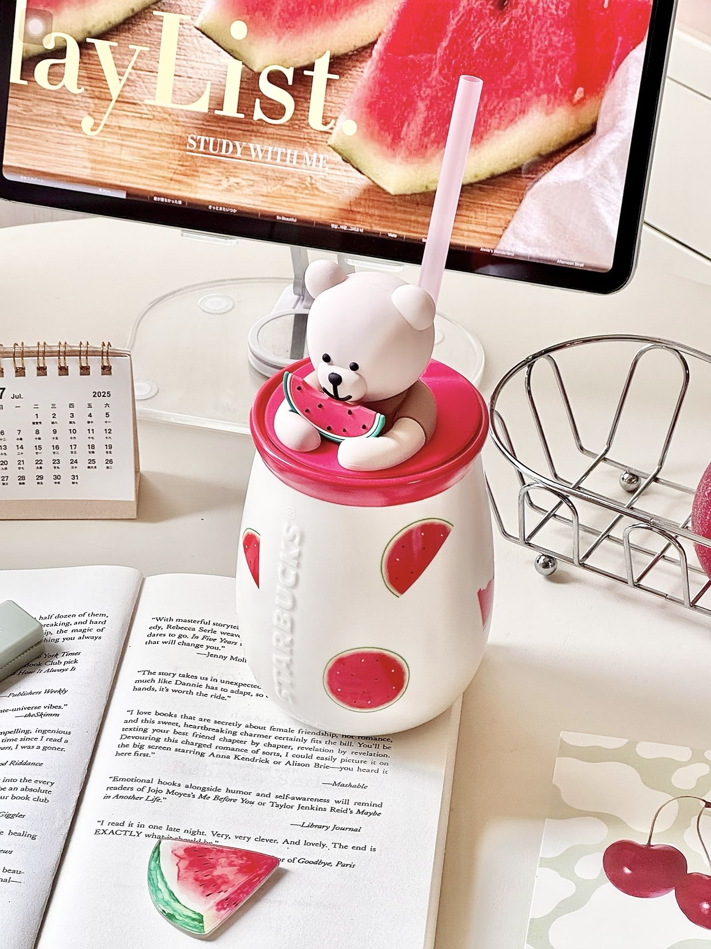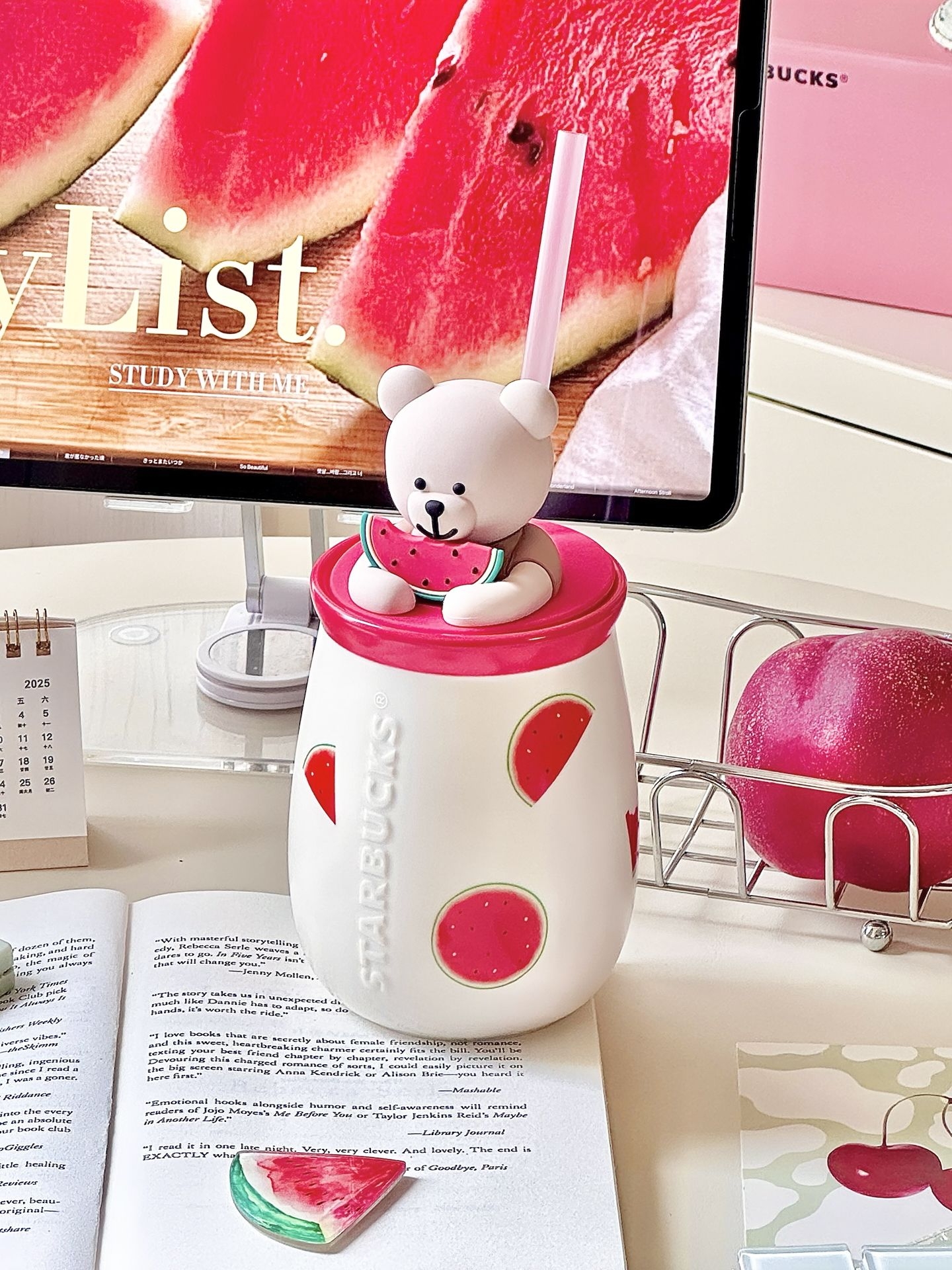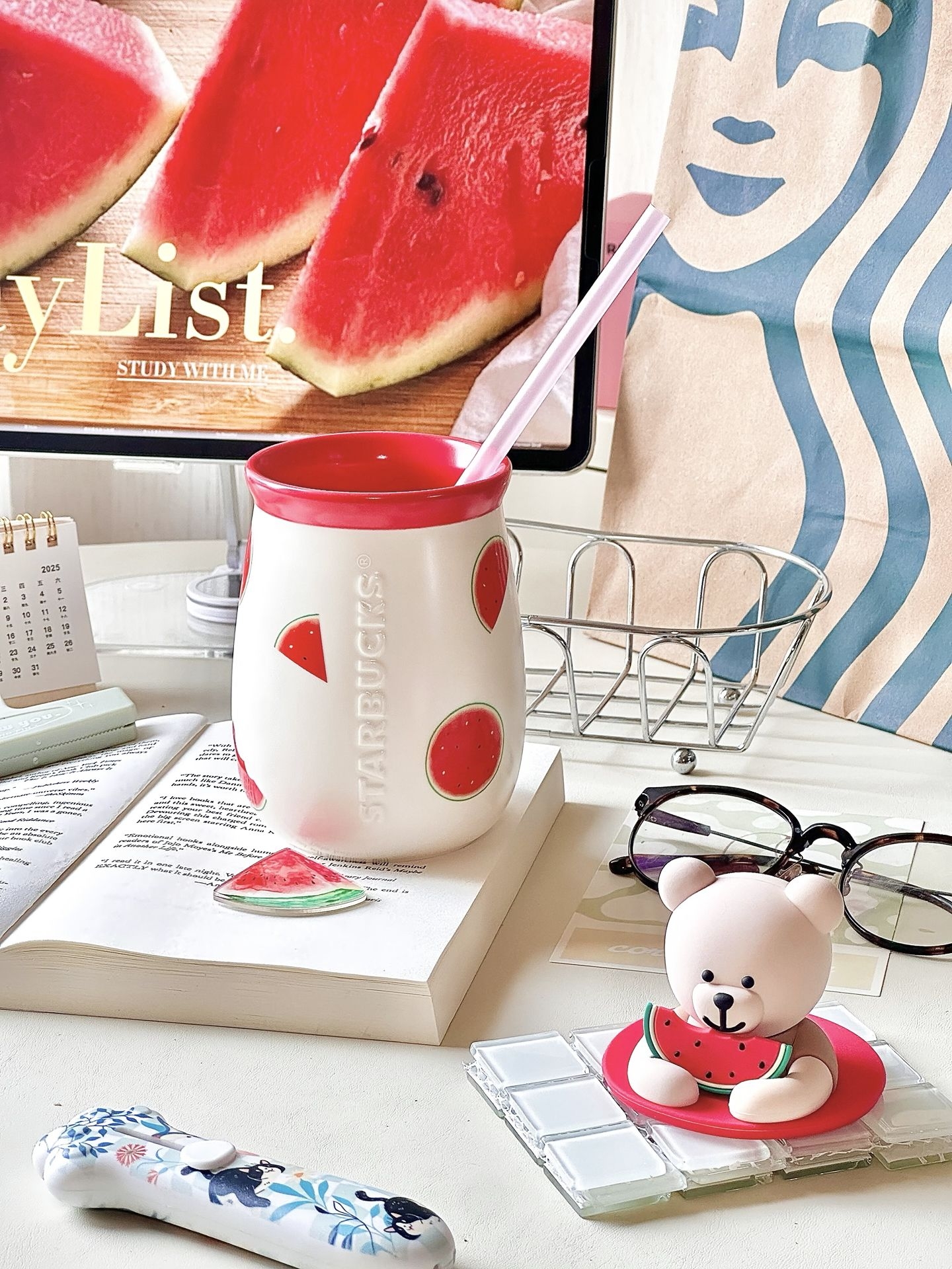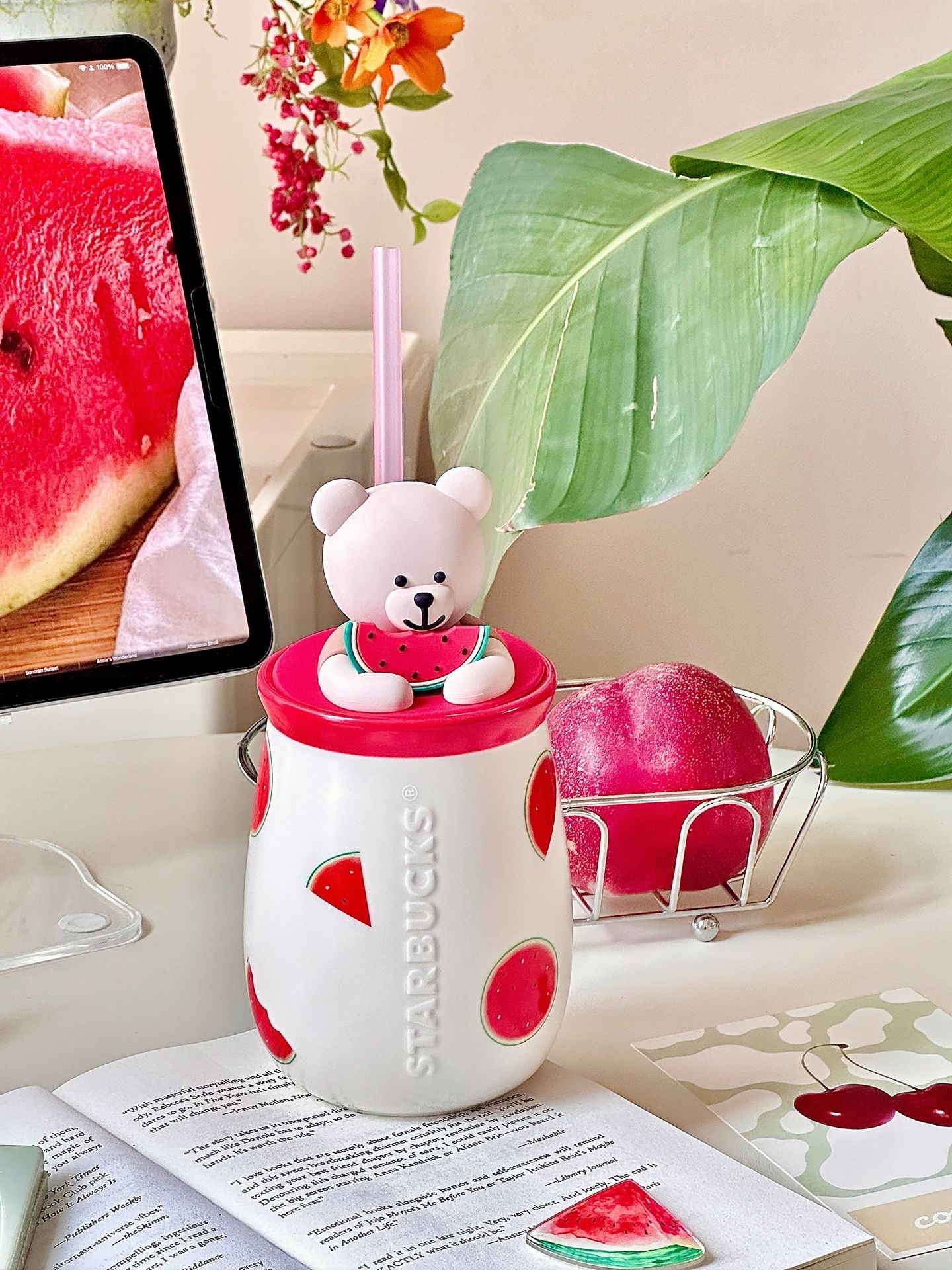 夏天和西瓜🍉真的是好搭子呀… 星巴克这个西瓜小熊马克杯真的戳我 陶瓷的,拿在手里不算很大~ 我喜欢往里面装果西瓜汁,插上吸管 哐哐倒入一些冰块🧊摆在桌面上 整个人都凉快了不少,还是甜滋滋的感觉 夏天用这个杯子,觉得自己又幸福啦 #杯子不彩我不喝 #杯子大王驾到 #这杯我的梦情色 #背面一般正面绝了 #搬家也要带走的水杯