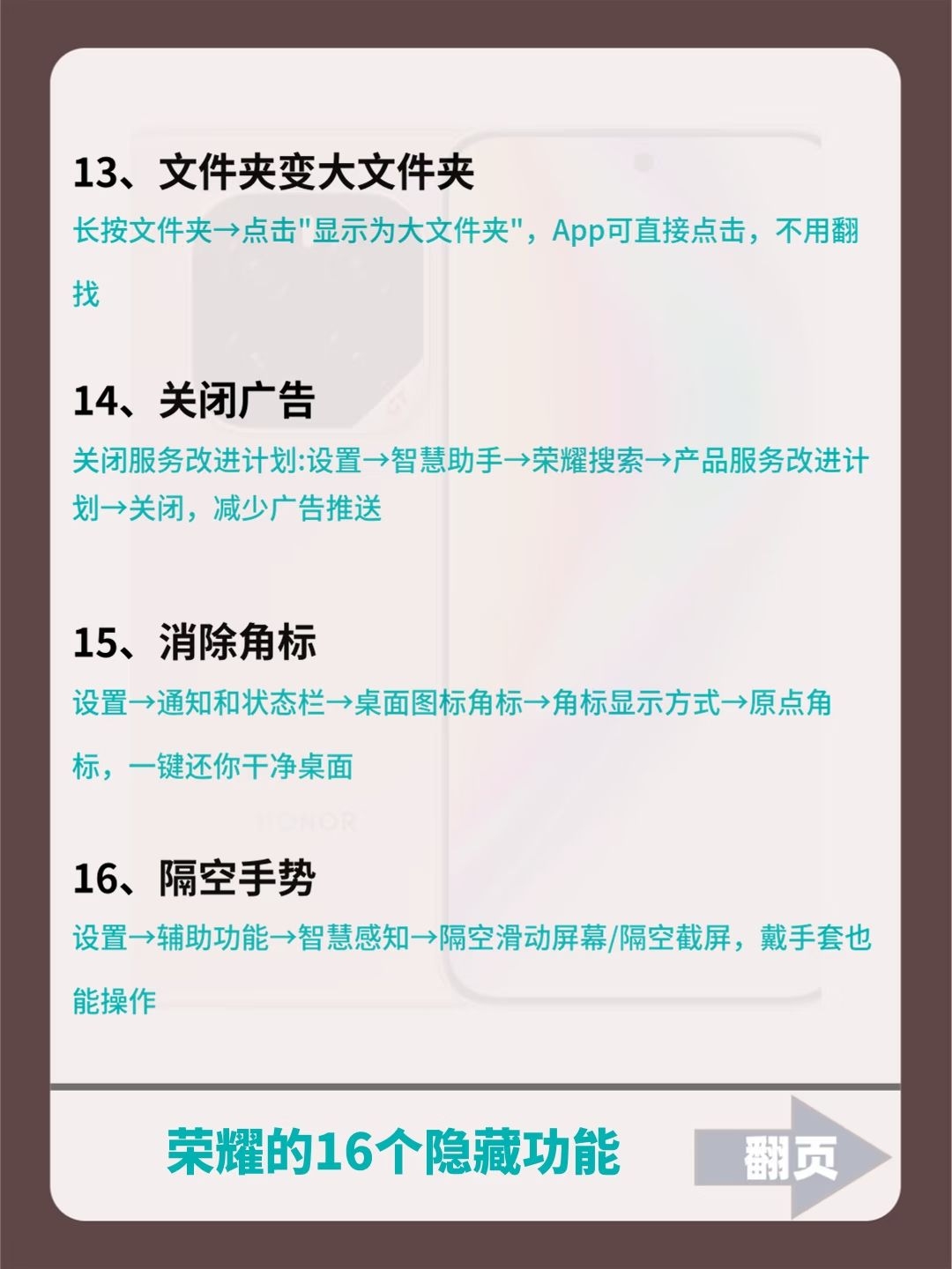 【荣耀手机的21个隐藏功能!不会=白买! 用荣耀手机的有福啦🙌 感觉换了个新手机!】,由用户 数码少帅 分享,来自浙江。这是一篇来自识货社区的真实用户分享笔记。