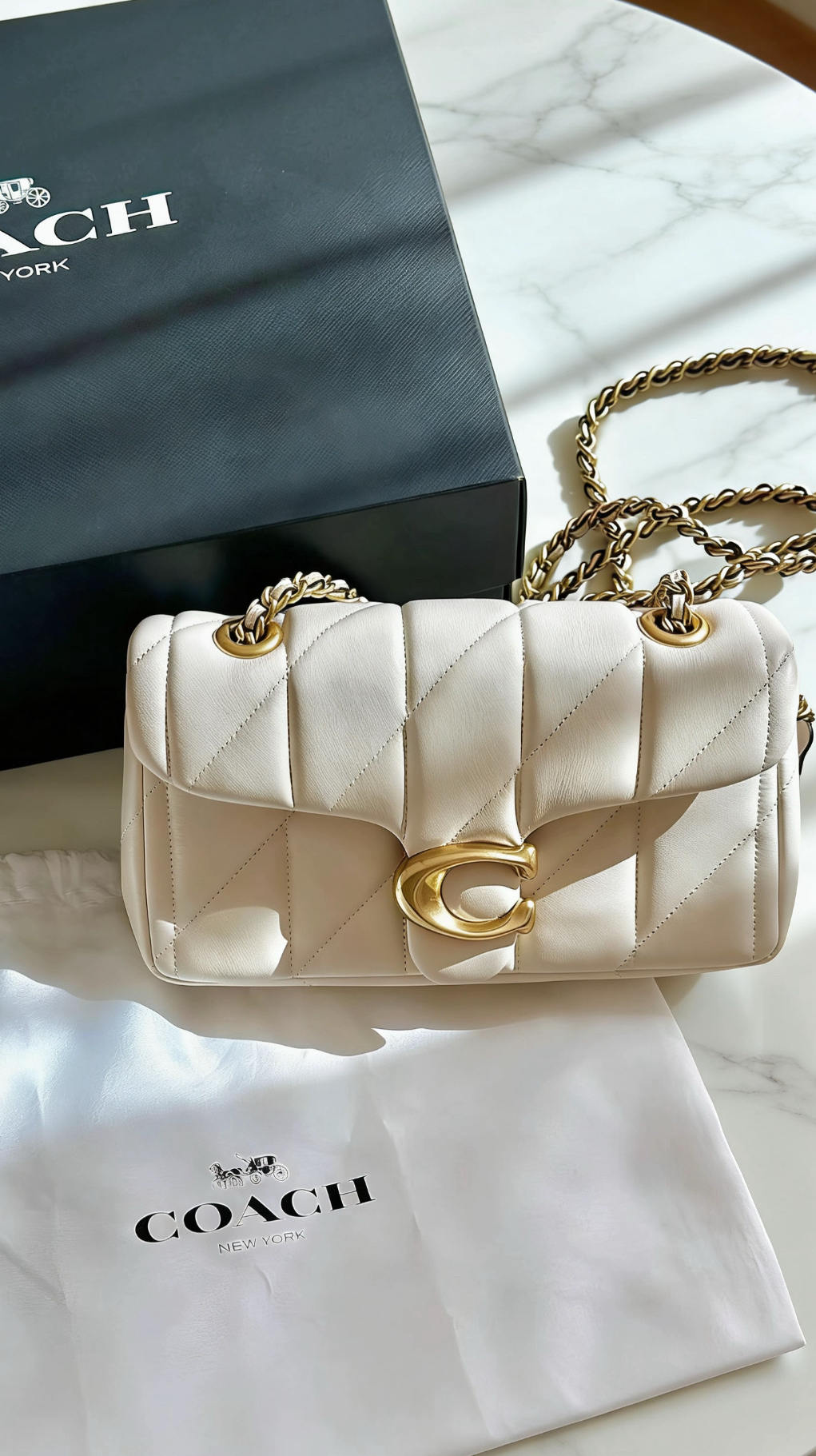 本篇笔记关联了Coach Tabby 20 小号 菱格纹条纹绗缝推锁闭合标识翻盖纳帕羊皮质链条枕头包手提包单肩包斜挎包 B4/粉笔白色、Coach Tabby 20 小号 菱格纹条纹绗缝推锁闭合标识翻盖纳帕羊皮质链条枕头包手提包单肩包斜挎包 珍珠白等商品,为用户提供真实的使用体验和购买参考。