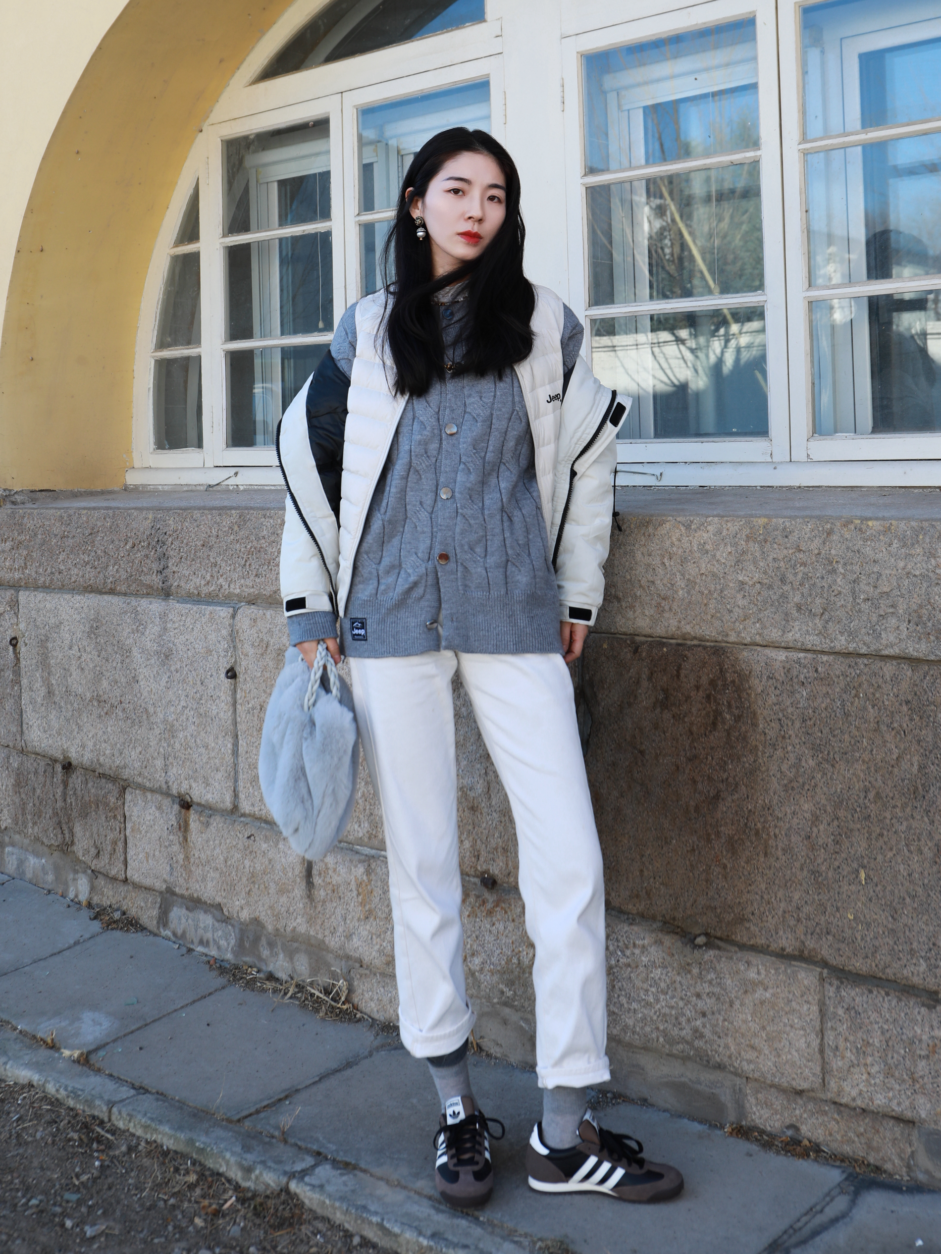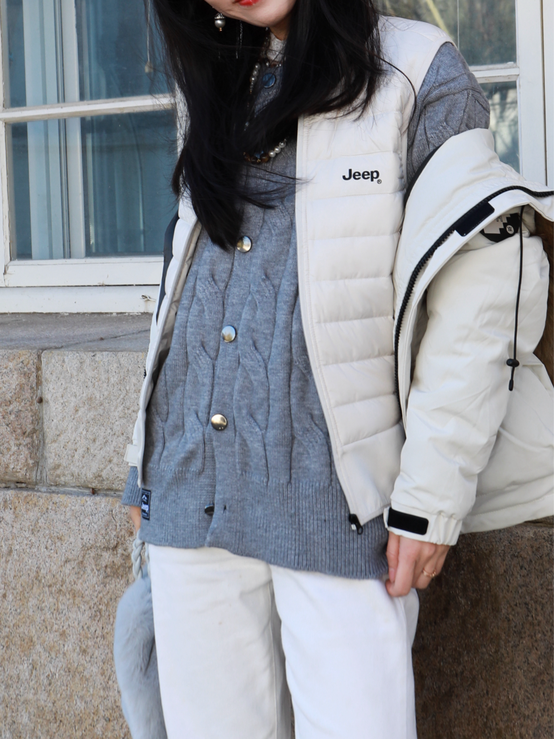 以前追求风格独特 现在反而觉得自己就是风格✌️ 不刻意追逐时尚 找到自己舒适的方式就是时尚 今天的look依然是最爱的 冷风一吹就缩起脖子 怕冷星人,真的在冬天❄️努力漂亮 我的冬日离不开米白浅棕与灰色 Jeep家的灰色的毛衣柔软舒服😌 怕冷人特意还穿了马甲 轻薄但保暖🥹🥹浅色温柔得刚刚好 再加一件带帽的羽绒服 暖和又时尚,搭配白裤子 拉长比例的同时还轻盈 自带的混搭撞色的风格 是今天最美丽的代...