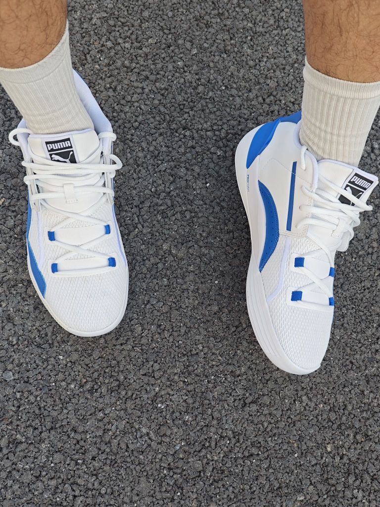 二开!!!高颜值球鞋,打球出街两不误。 💙这双PUMA确实很好看 😁初上脚脚感还是比较硬的, 鞋面质感很好,拼接鞋面,兼顾强度与舒适性。 鞋带处动态绑定。 中底pro foam,脚感是偏硬的。 🤗总体来说这双鞋是比较全面的,现在性价比很高,我觉得学生党很合适。 大家觉得它怎么样呢?