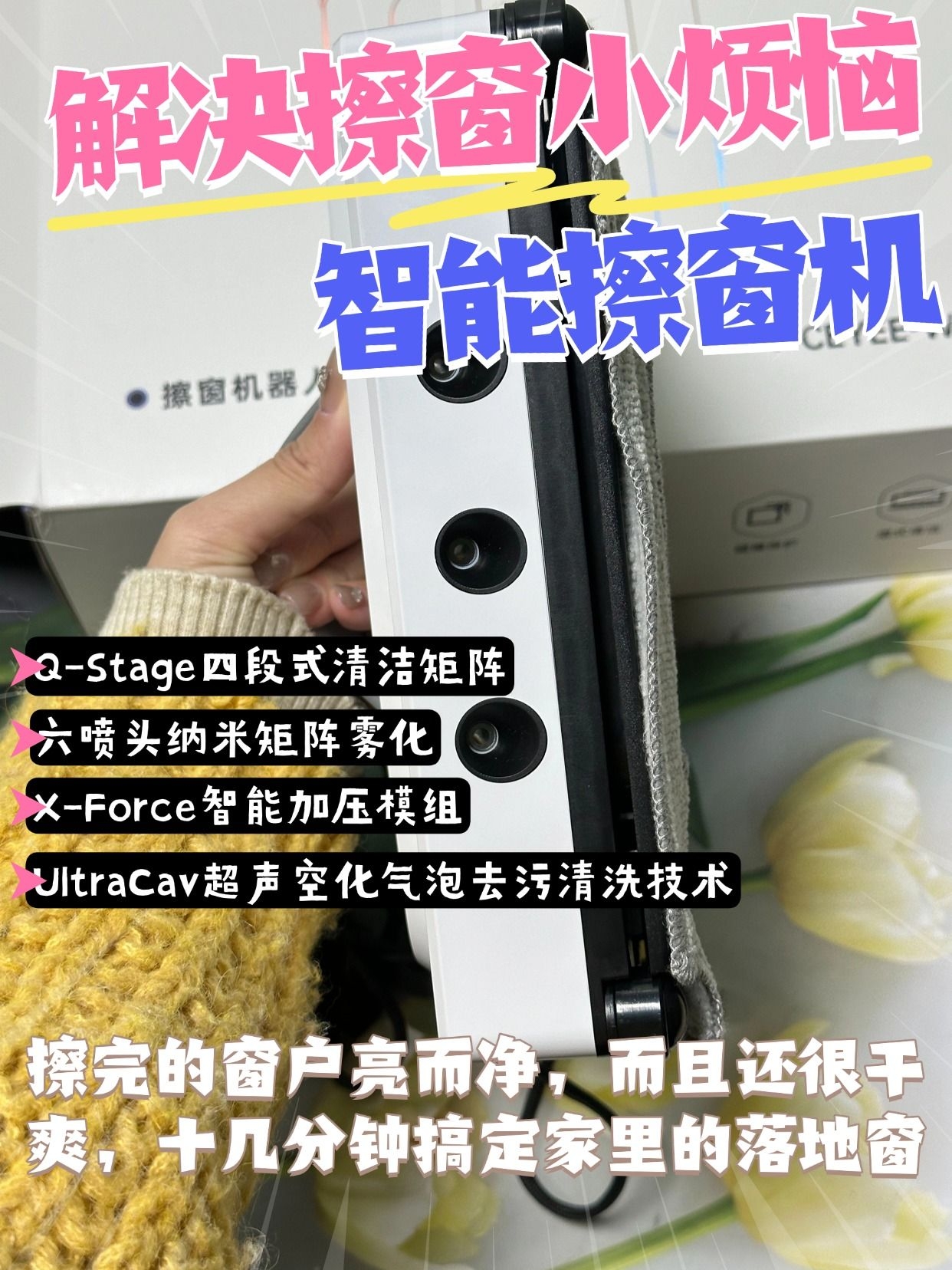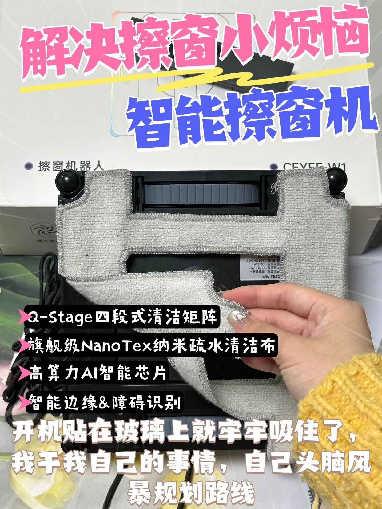 新房装修完最崩溃的就是擦窗!玻璃上全是水泥点、油漆飞溅渍,还有粘糊糊的玻璃胶残留,简直是“大花脸”现场。 自己用报纸、洗洁精擦半天,不仅越擦越花,还怕刮伤新玻璃,找专业开荒保洁又贵又要等,直到入手希亦W1擦窗机,瞬间解放双手! 这清洁力真的惊到我了!装修残留的顽固水泥点、油漆点,不用手动铲,它的强劲吸附力配合柔性清洁布,轻轻一擦就掉,完全不损伤玻璃表面。 六喷头雾化喷水超均匀,不会像传统工具...