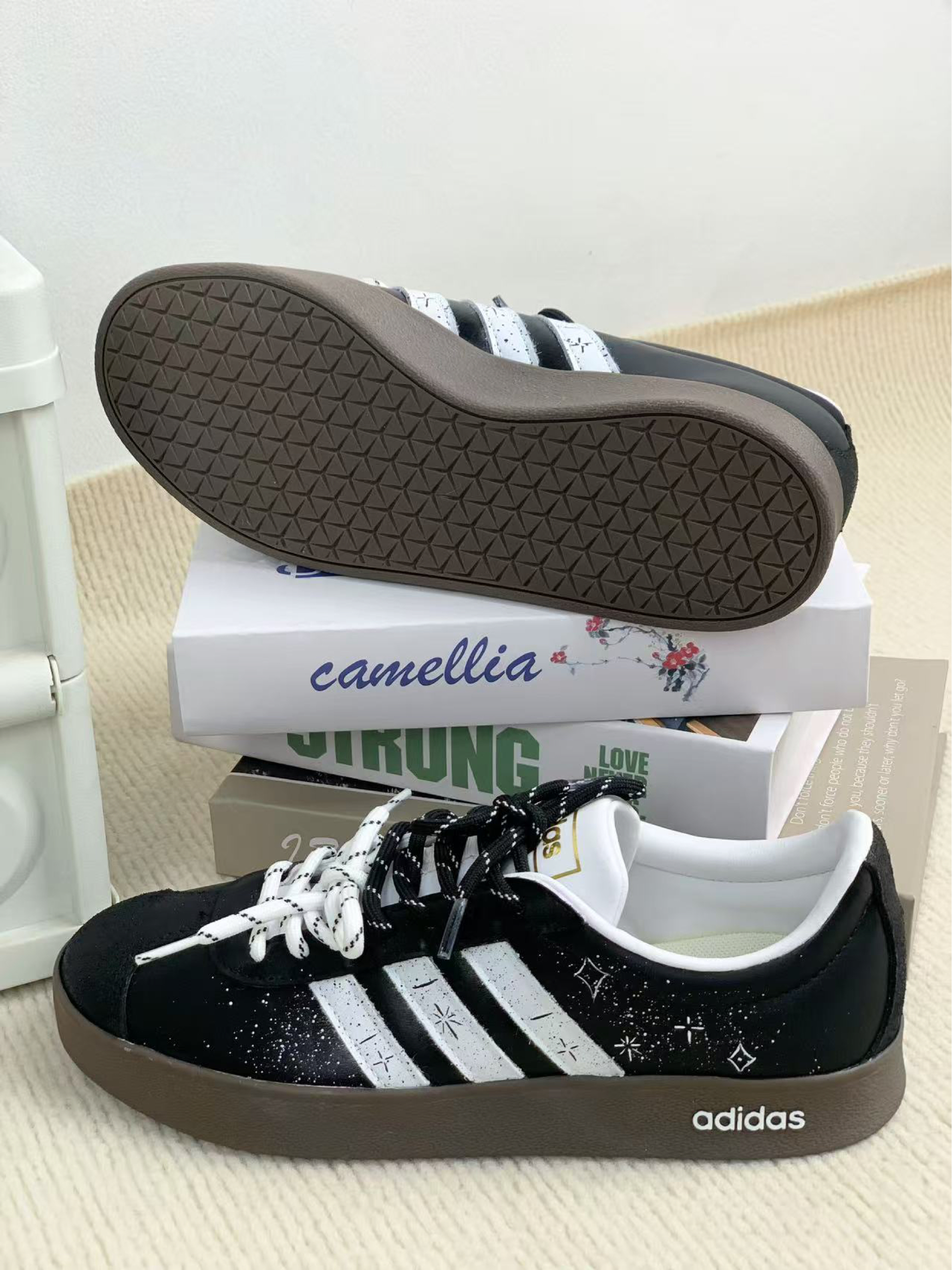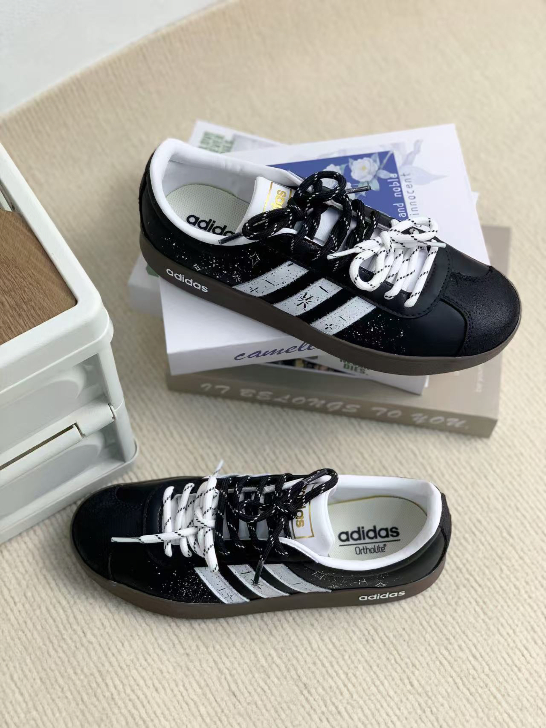 带复古感的黑棕配色,鞋面的泼墨星空设计也太酷辣😎,小众不撞款,上脚🦶🏻感软乎乎的不磨脚,穿了一周通勤、搭牛仔裤、运动裤都好看。