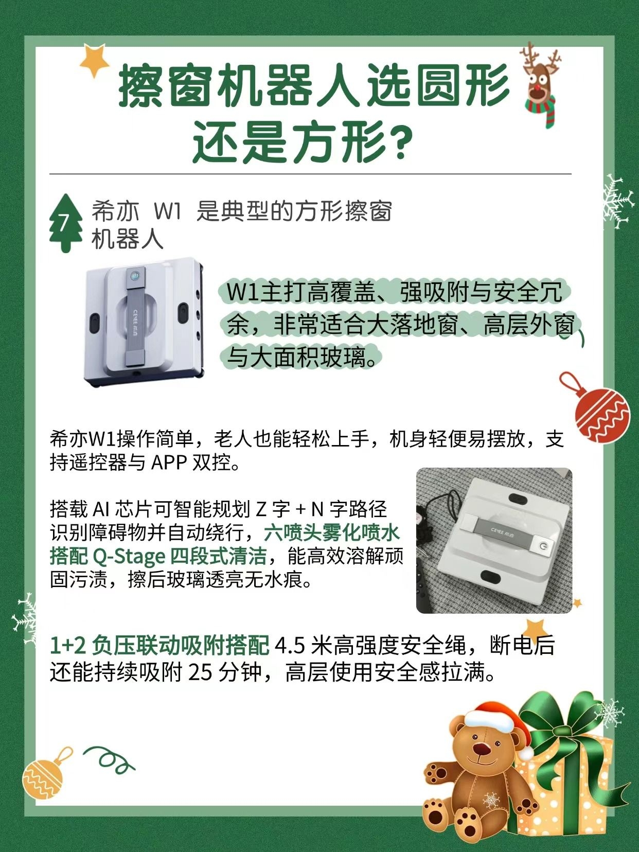 擦窗机选方还是圆,根本不是颜值问题,是专业度的差距!希亦W1作为百元价位的实力派,不仅有方形机身的天生优势,还堆料了满满的黑科技,清洁力、安全感、性价比全在线,央视推荐+欧盟CE认证,闭眼入不踩雷💥
