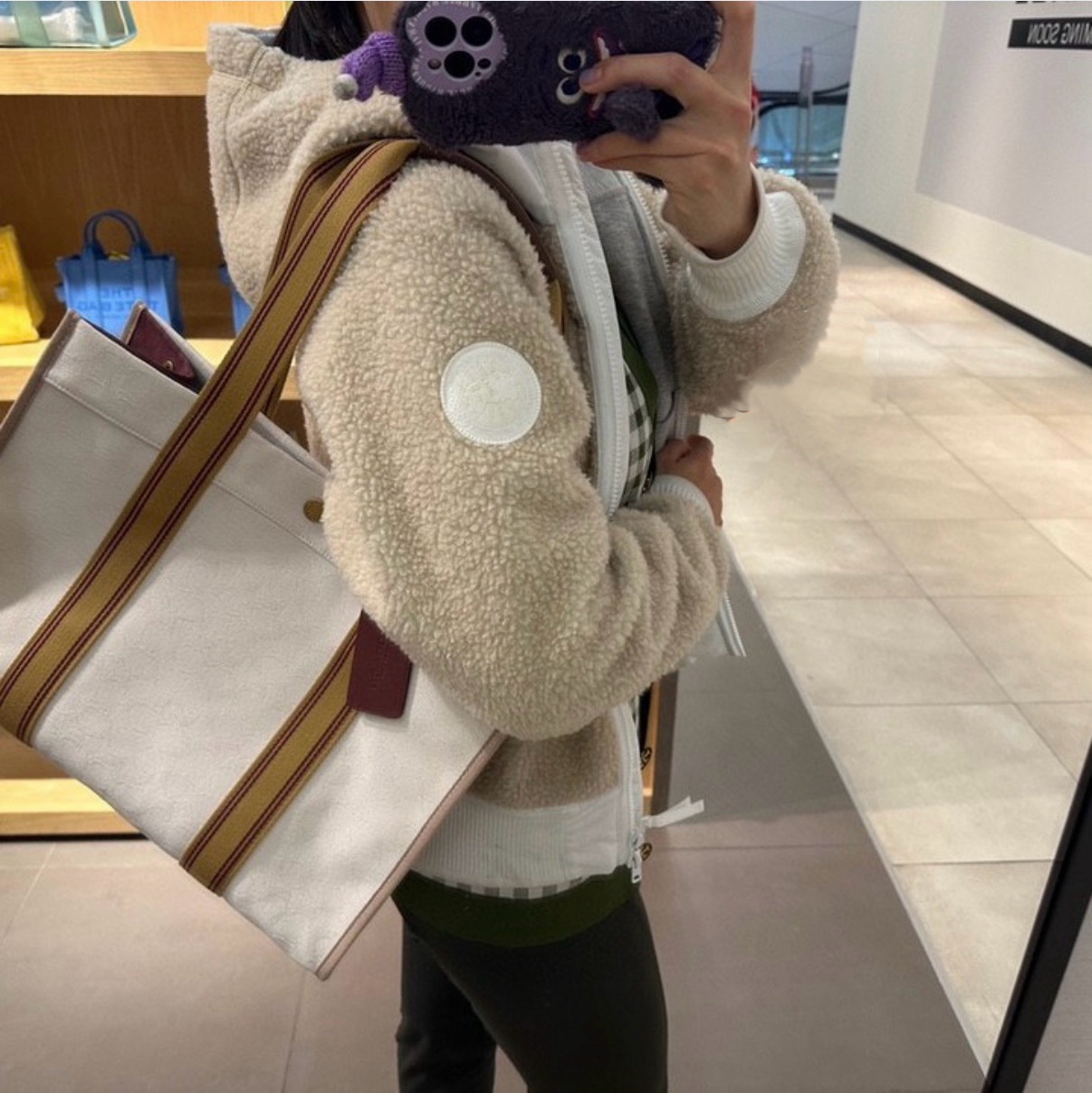 本篇笔记关联了Coach Spin Tote 42 大号 长手柄提花织物老花印花按扣单肩包手提包 白色等商品,为用户提供真实的使用体验和购买参考。