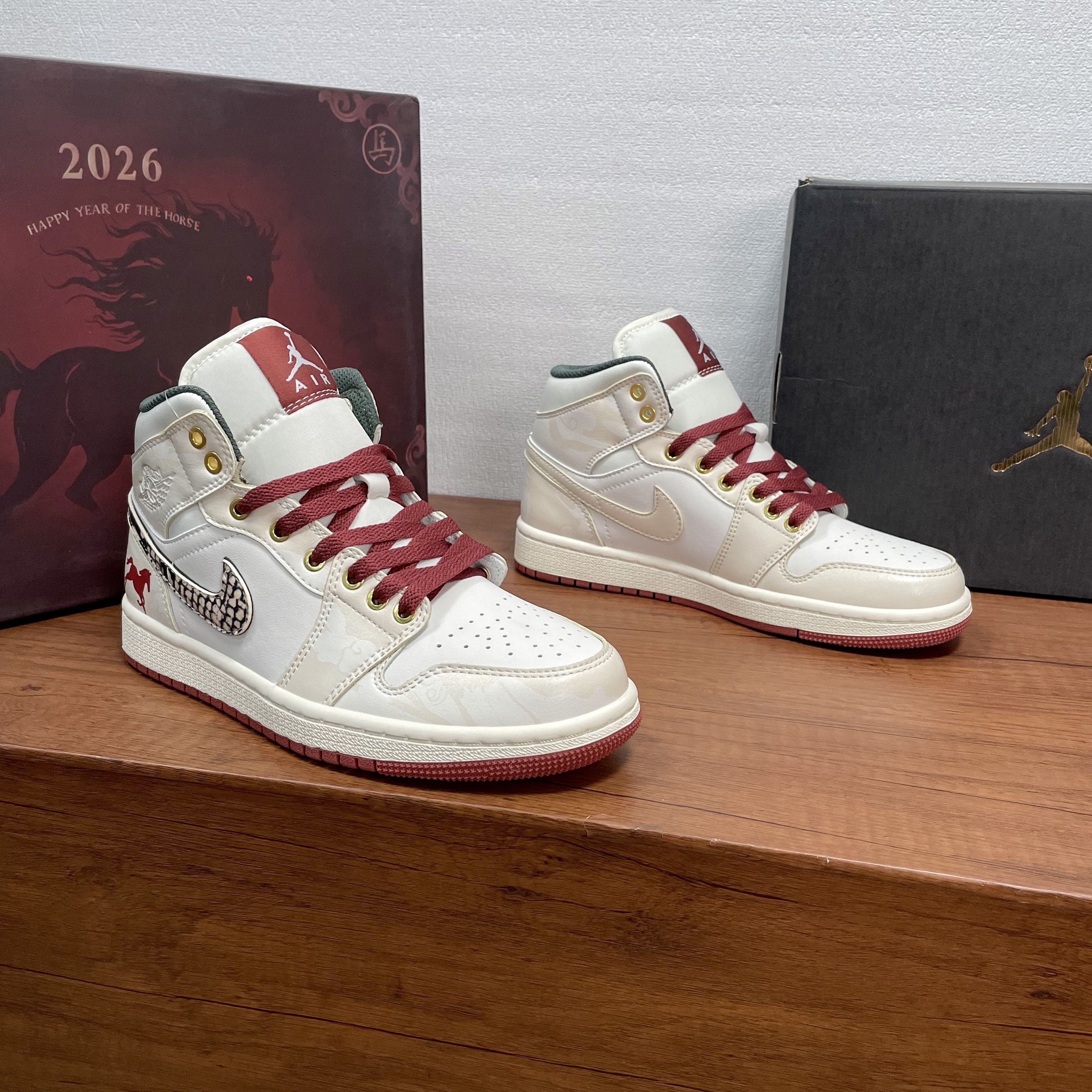 对许多和我一样的上班族来说,新年需要一个具体的仪式,而不只是日历的翻页。它可能是一顿认真的年夜饭,也可能,是一双有意义的鞋。 春节前,我在朋友的工作室看到了那个特别的鞋盒。紫红色的底,上面印着一匹奔腾的骏马剪影和“2026 HAPPY YEAR OF THE HORSE”的字样。旁边并排放着另一个黑色鞋盒,上面是烫金的飞人标志。他打开盒子,说:“今年的‘新年战靴’,我在识货APP淘到的,试试?”...
