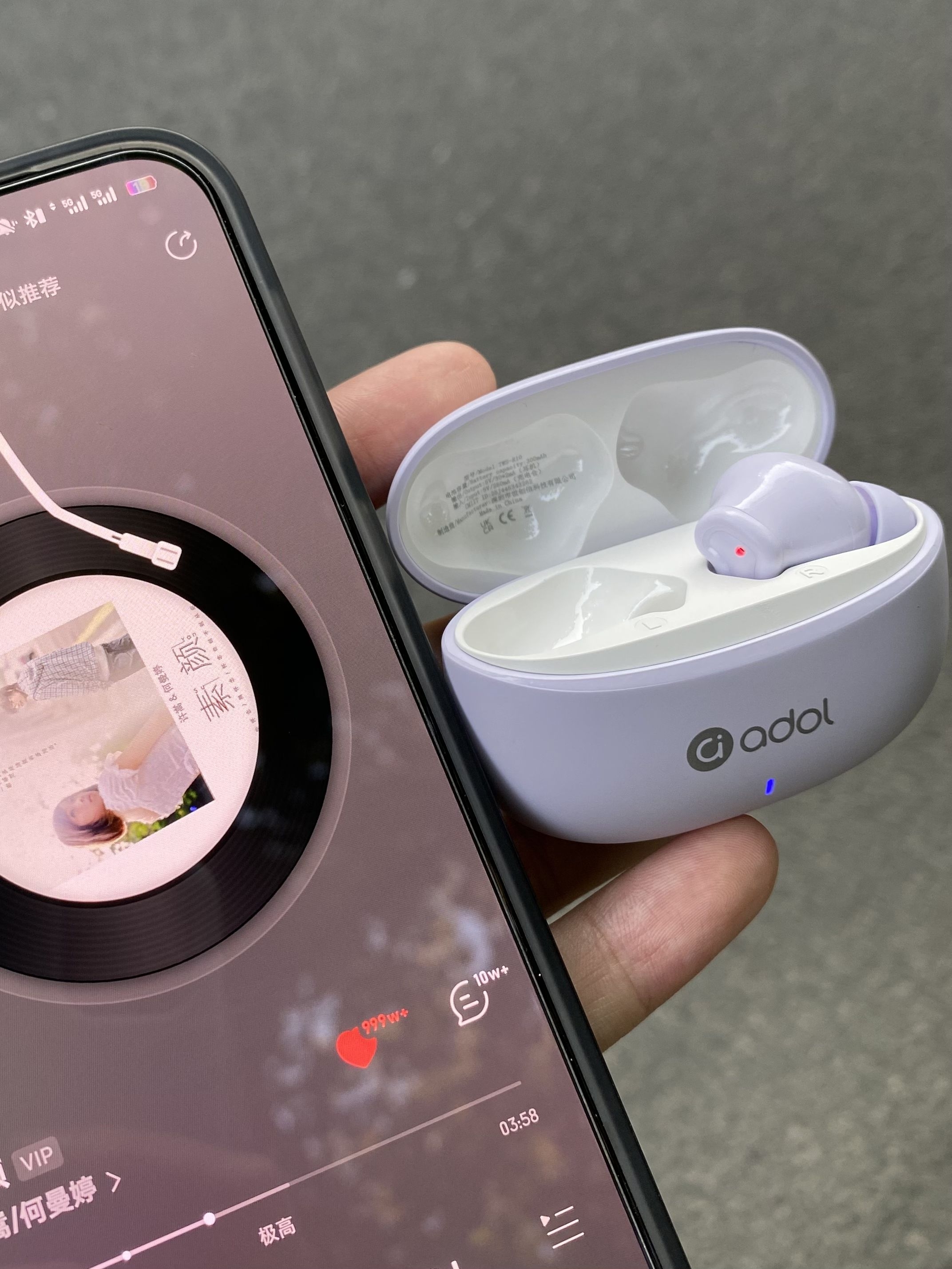 最近喜欢紫色👿的物件 淡紫色#华硕蓝牙耳机 看着很清新 耳机比较轻,长时间佩戴不容易累 连接设备速度挺快,开盖就能自动连 音质清晰,日常听歌、打电话都没问题 戴上耳朵降噪功能就自动开启 能相对削弱一部分外界噪音 续航不错,充满电能用好几天