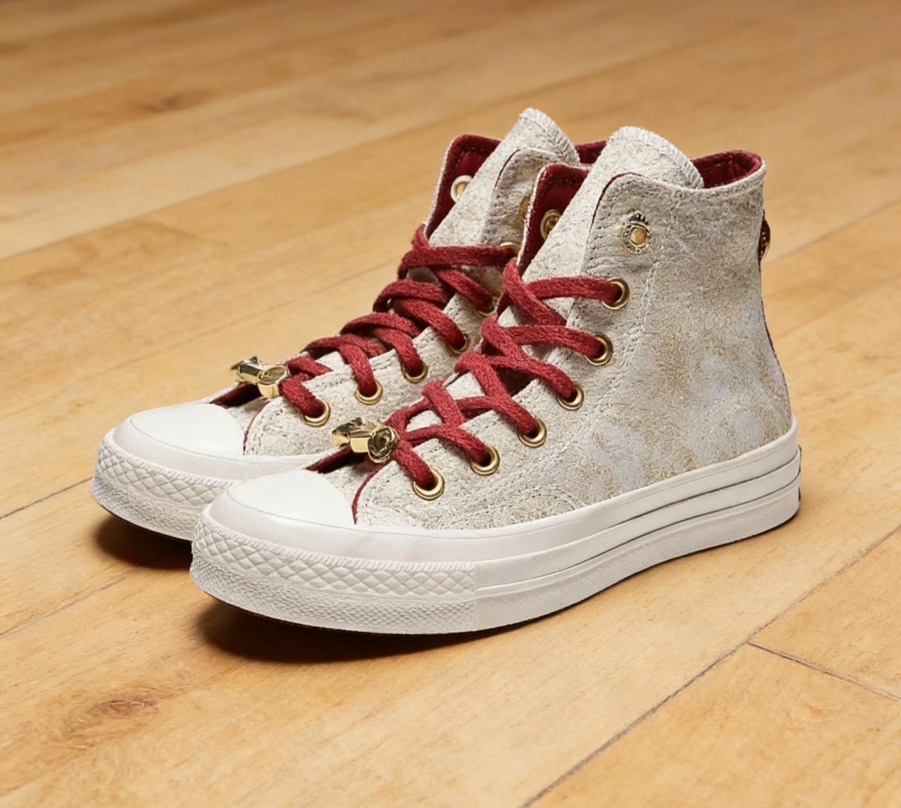 当经典的轮廓遇上新年的祥瑞,匡威1970s系列以全新的姿态,为您献上一份独特的“新年限定”惊喜。这不仅是一双鞋,更是一件承载着美好寓意的时尚艺术品,让您在踏金启运之际,每一步都充满自信与风采。 马年限定:踏金启运,细节之处见真章 马年限定 · 马上“起飞”🐎 🧶一鞋两穿 ✨香槟金面 中国红内衬 该系列以广受欢迎的Chuck 1970S高帮鞋型为蓝本,巧妙地融入了丰富的马年文化元素。鞋面采用淡淡...