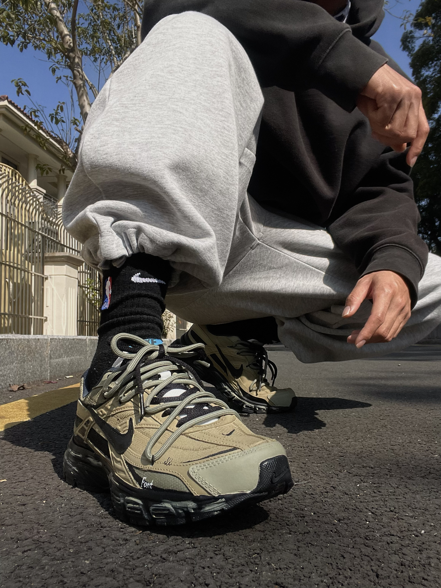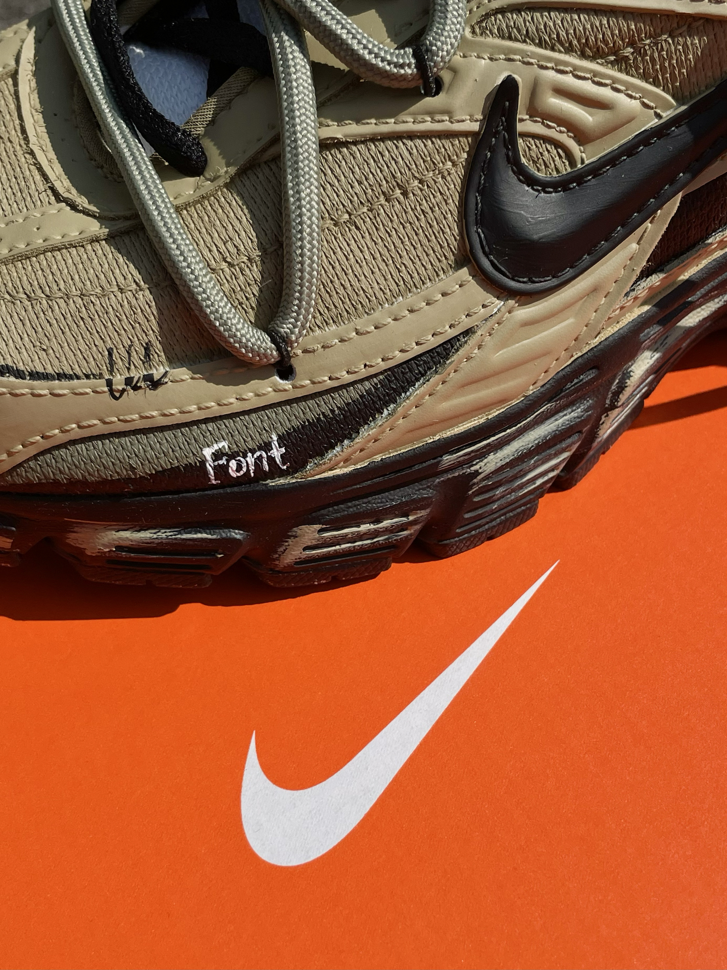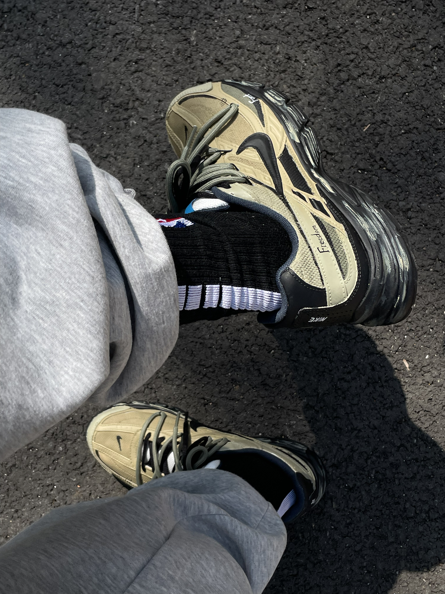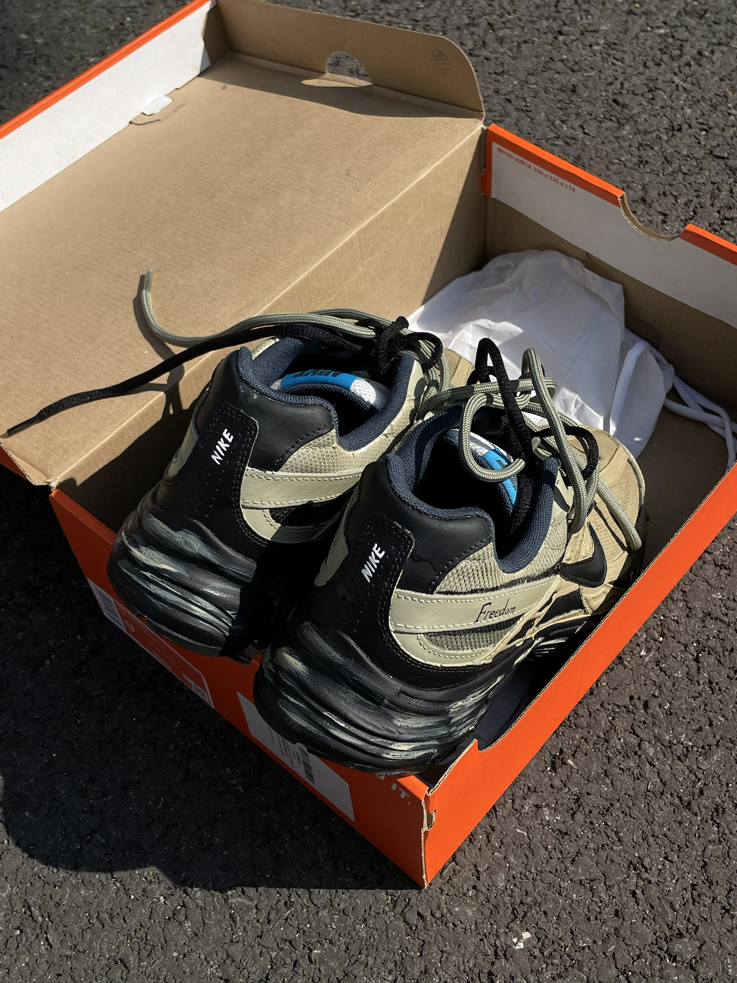 给大家简单分享一双我最近常穿的 Nike 定制老爹鞋(Initiator) 整体是军绿色工装风,搭配黑色鞋标和鞋带,再加一点擦色做旧和双鞋带设计。鞋身还有定制涂鸦和 “Freedom” 字样,上脚蛮个性的。 中底软硬适中,走路久了不容易累。前掌空间比较宽,对脚型包容度高,尺码正常选就行。中底大概有 3cm 左右的增高,站着走着都挺舒服。 搭配上我一般拿它配宽松卫裤、牛仔裤or工装裤,很容易融...