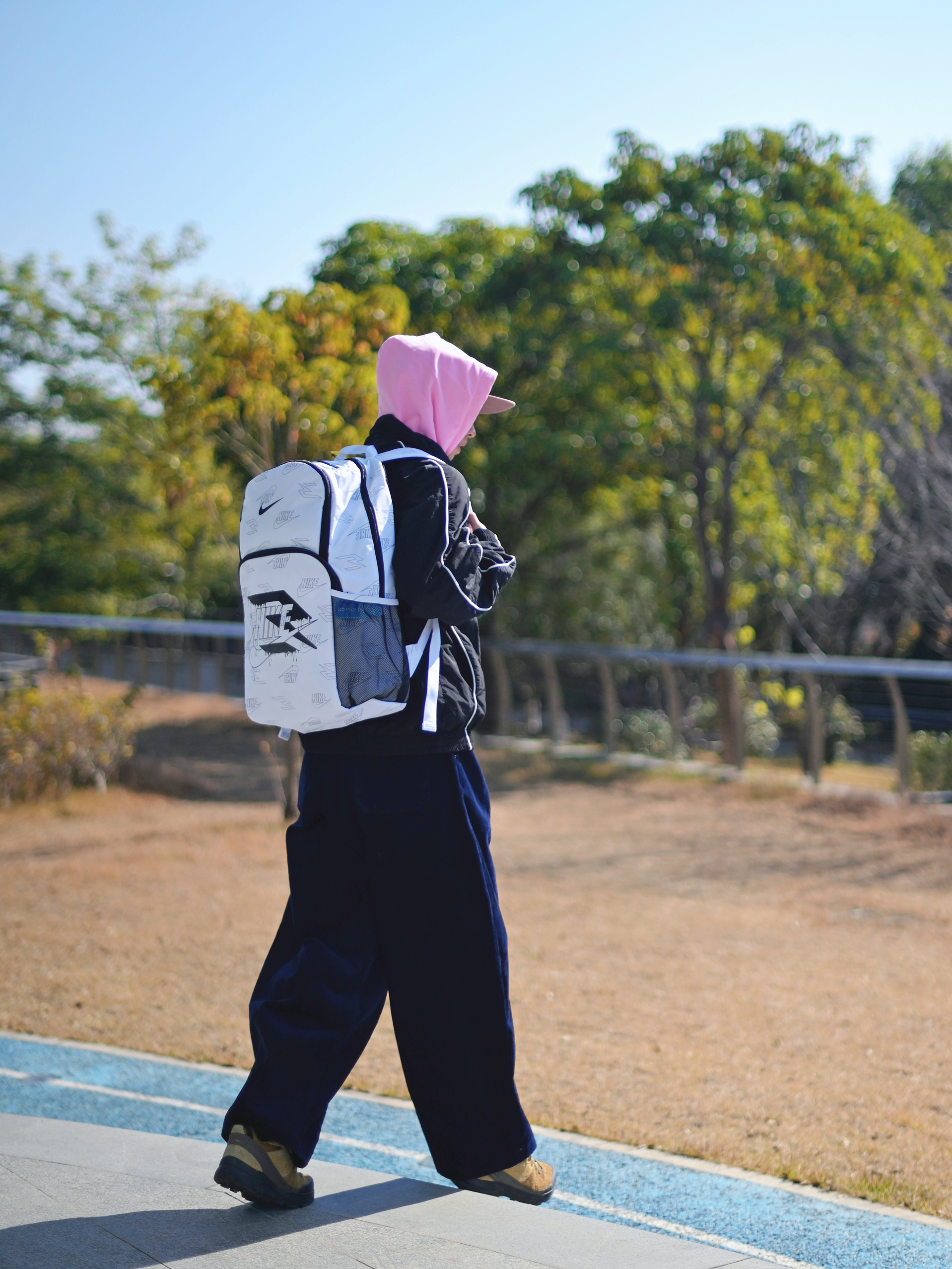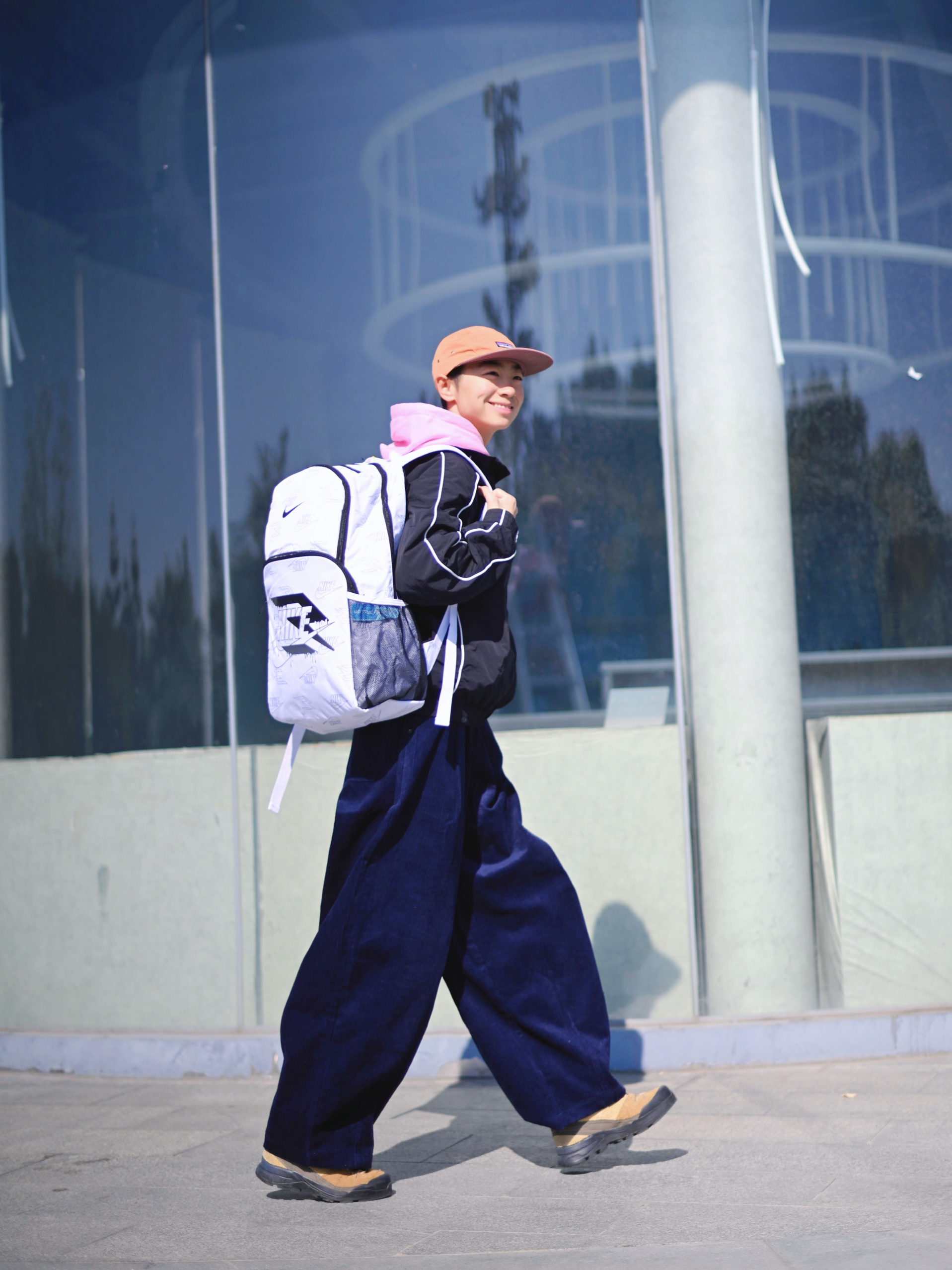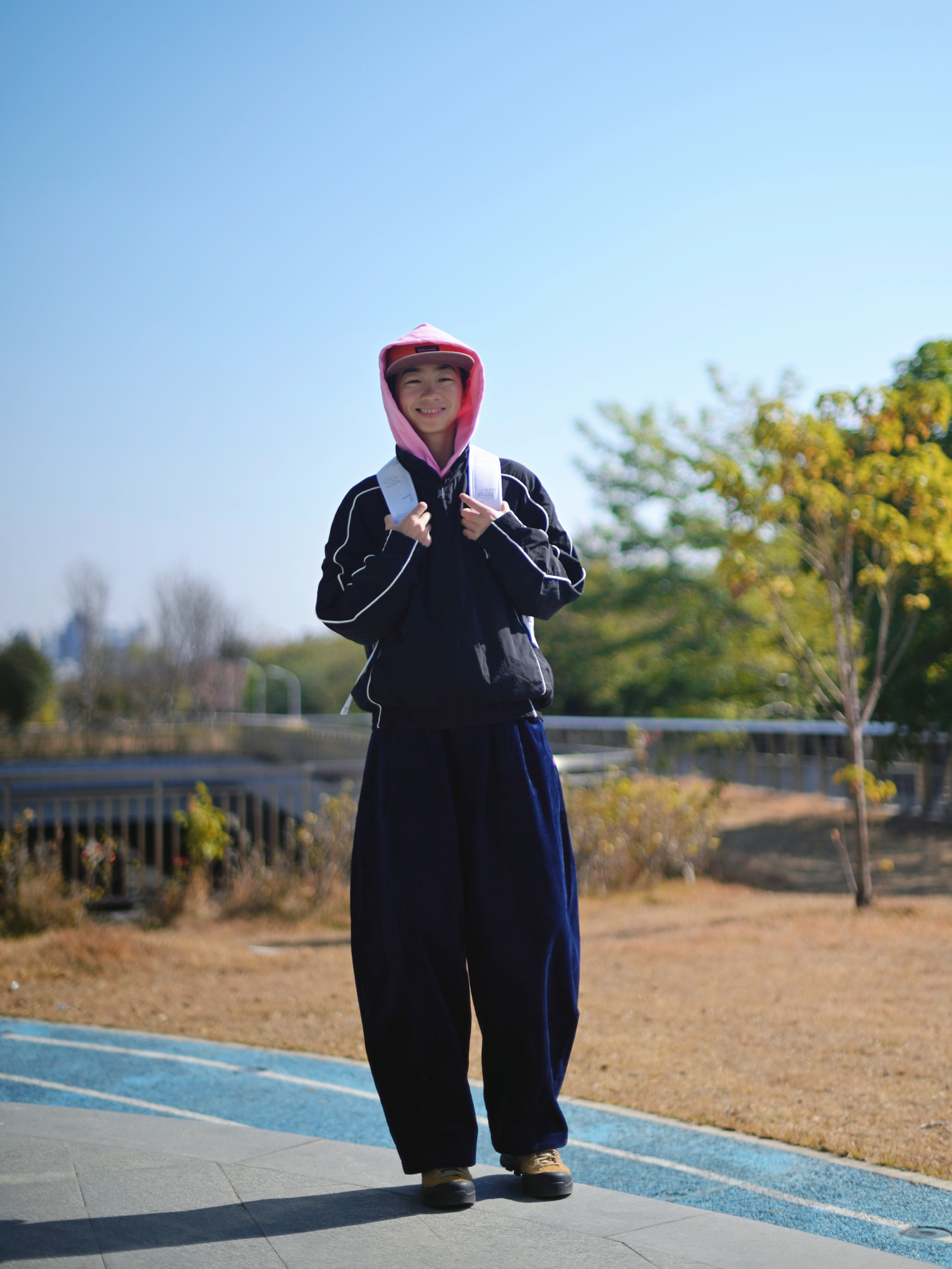 172CM|55KG 👔:m👖:m|👟:39码 今天的穿搭以经典的黑白蓝配色为主耶✌️ 黑色线条装饰外套内搭粉色连帽衫,下身搭配深蓝色阔腿裤和棕色系鞋子 背上俺的🤍Nike 3brand纯白色双肩包 多口袋兼顾实用和造型感 大容量轻松收纳日常所需 Gogogo 出街了~
