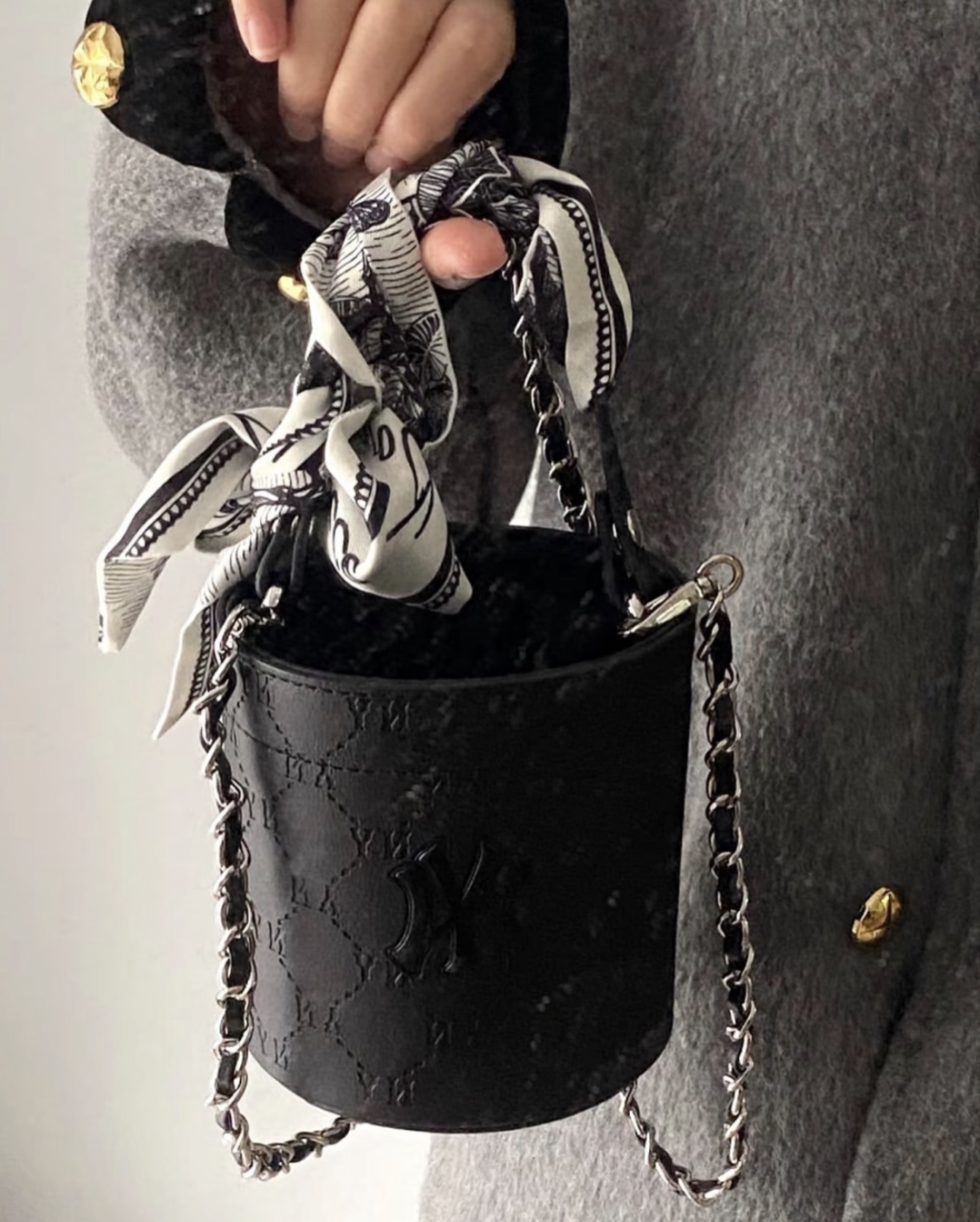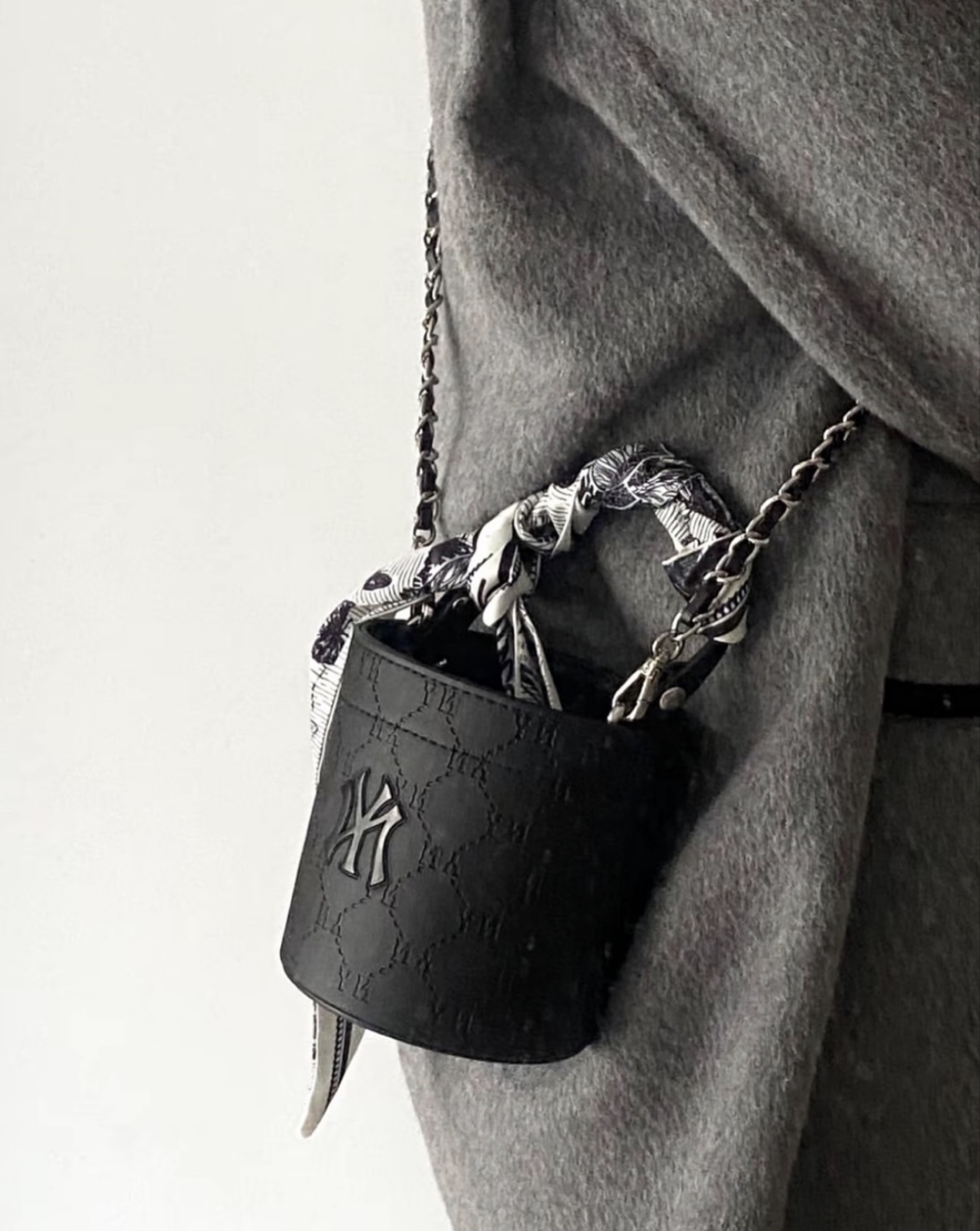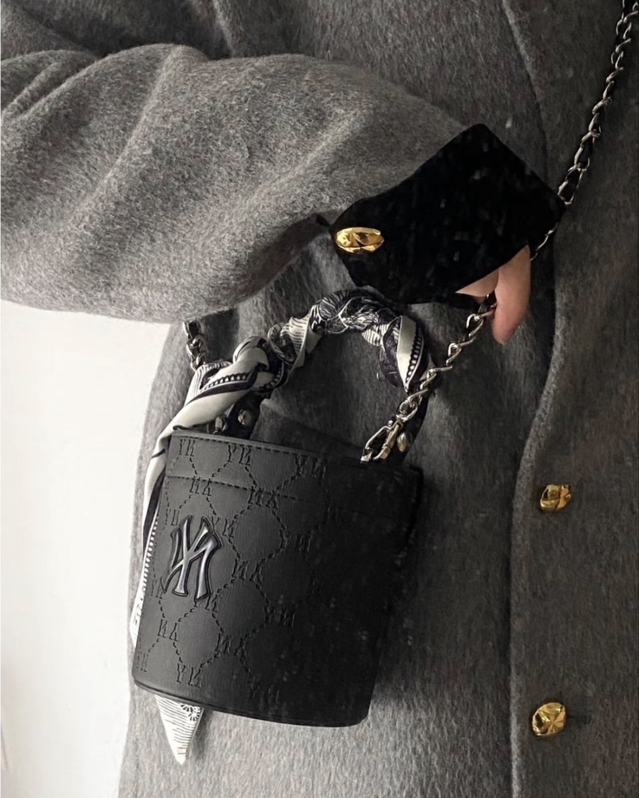 真的不敢信这个MLB水桶包才百元价位,造型却精致到离谱!经典的黑色压纹搭配NY标,低调又有设计感,丝巾绑在提手上还能自己DIY造型,甜酷风随意切换。桶状包身超立体,手提或斜挎都超有范儿,不管搭休闲装还是小裙子都很出彩,百元能拿下这种颜值和质感的包,真的血赚!
