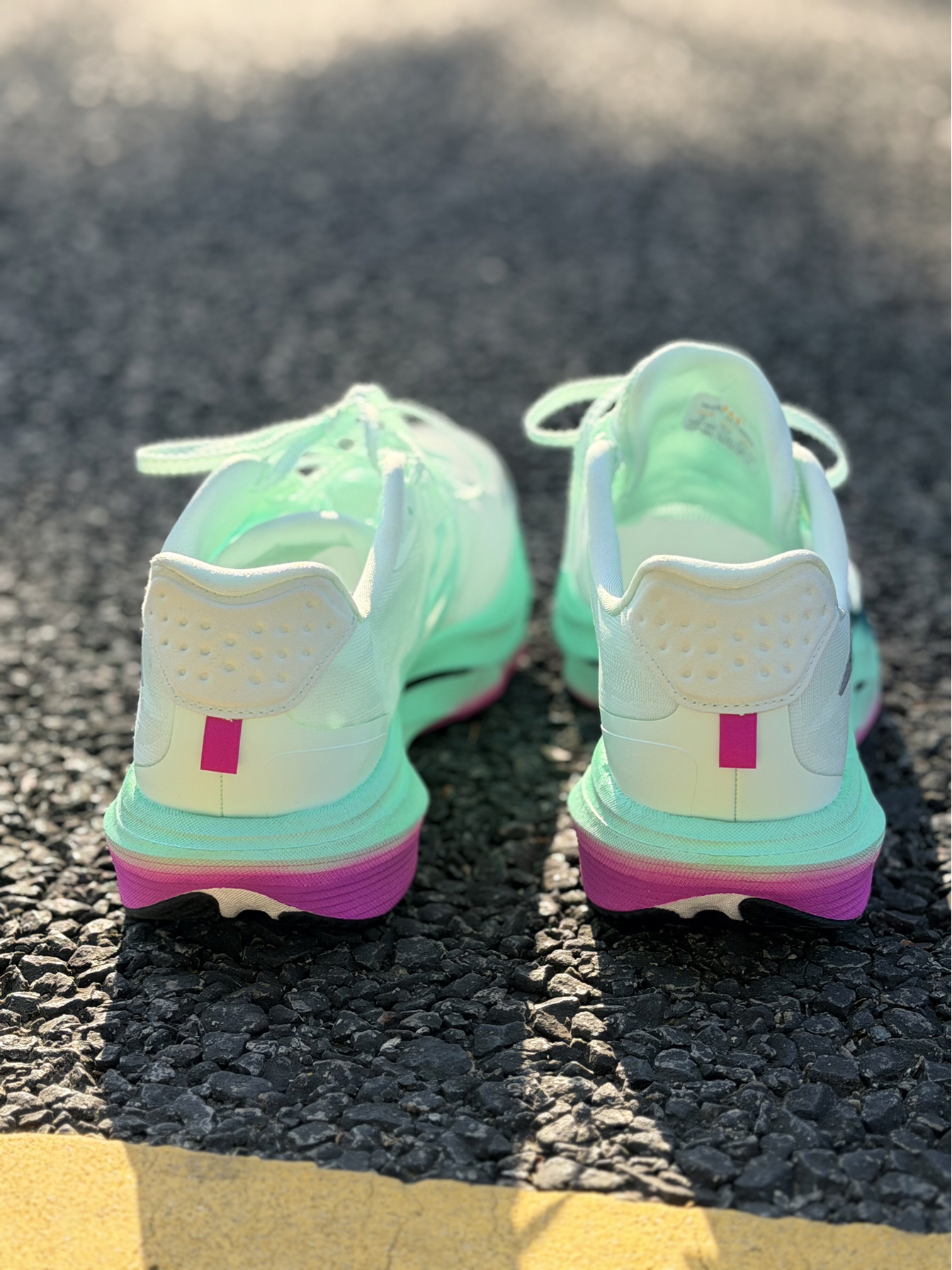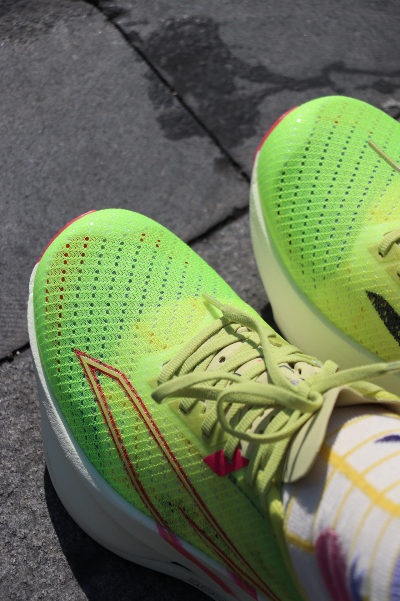 2026年赛道限定跑步鞋怎么选? 361°赛道小强全新系列上脚体验来啦~比较显著的体验全掌的尼龙发泡,脚感是比较软弹的体验,鞋面增加了3m的反光元素夜跑也比较安全的。 整体的透气性比较显著,更是透到可以看见袜子的配色啦!全掌的深纵防护横纹,在运动过程的抓地防滑效果较为突出的体验感!