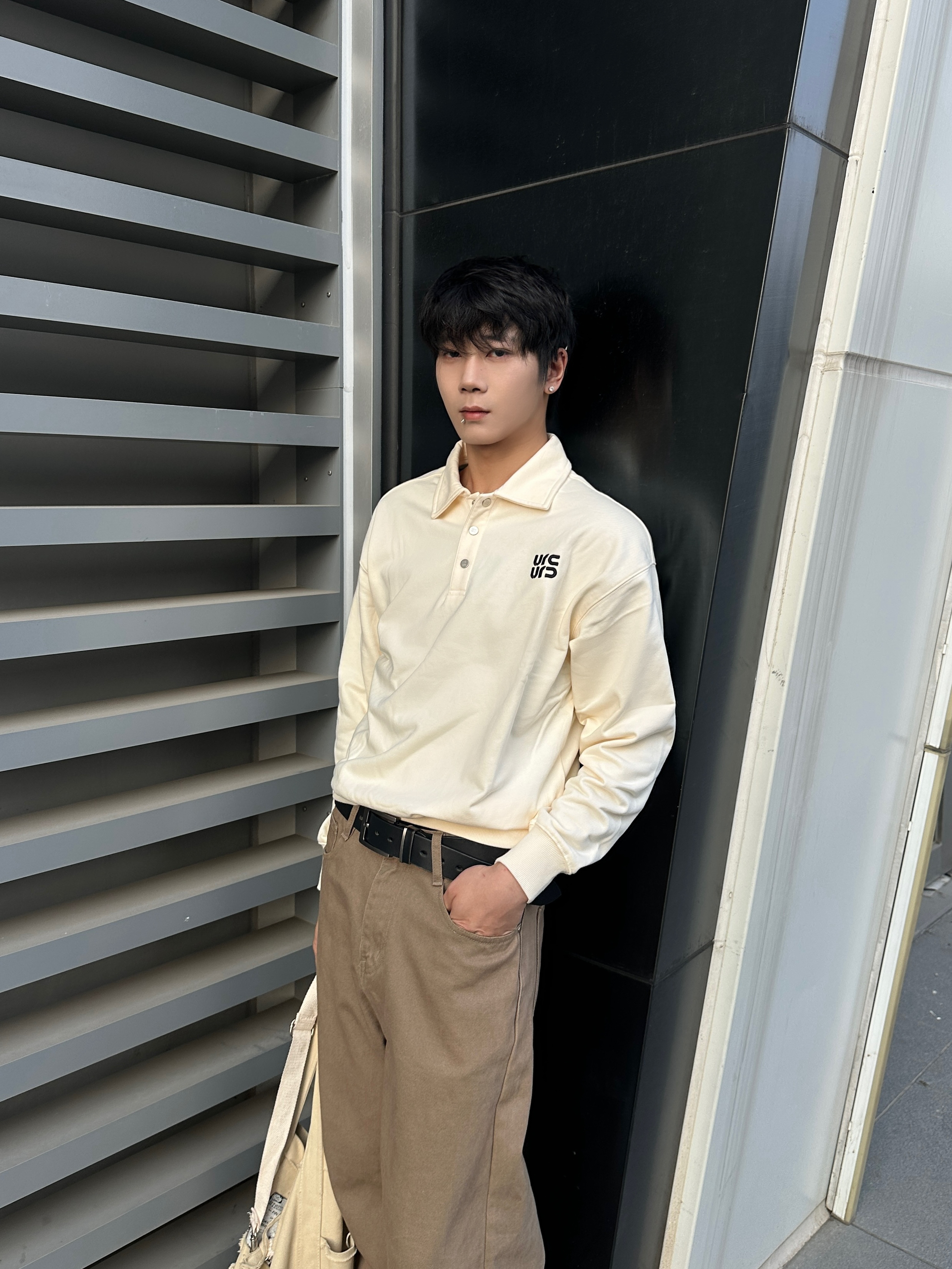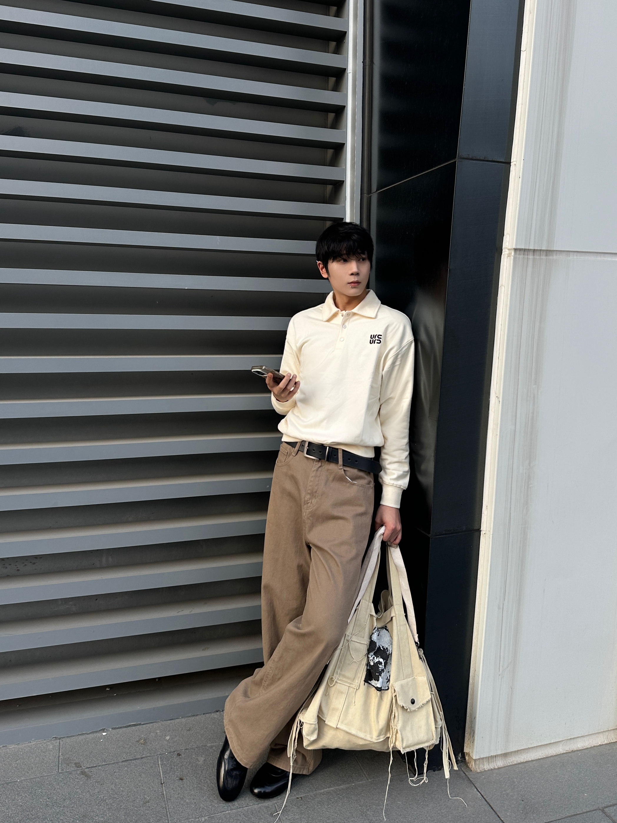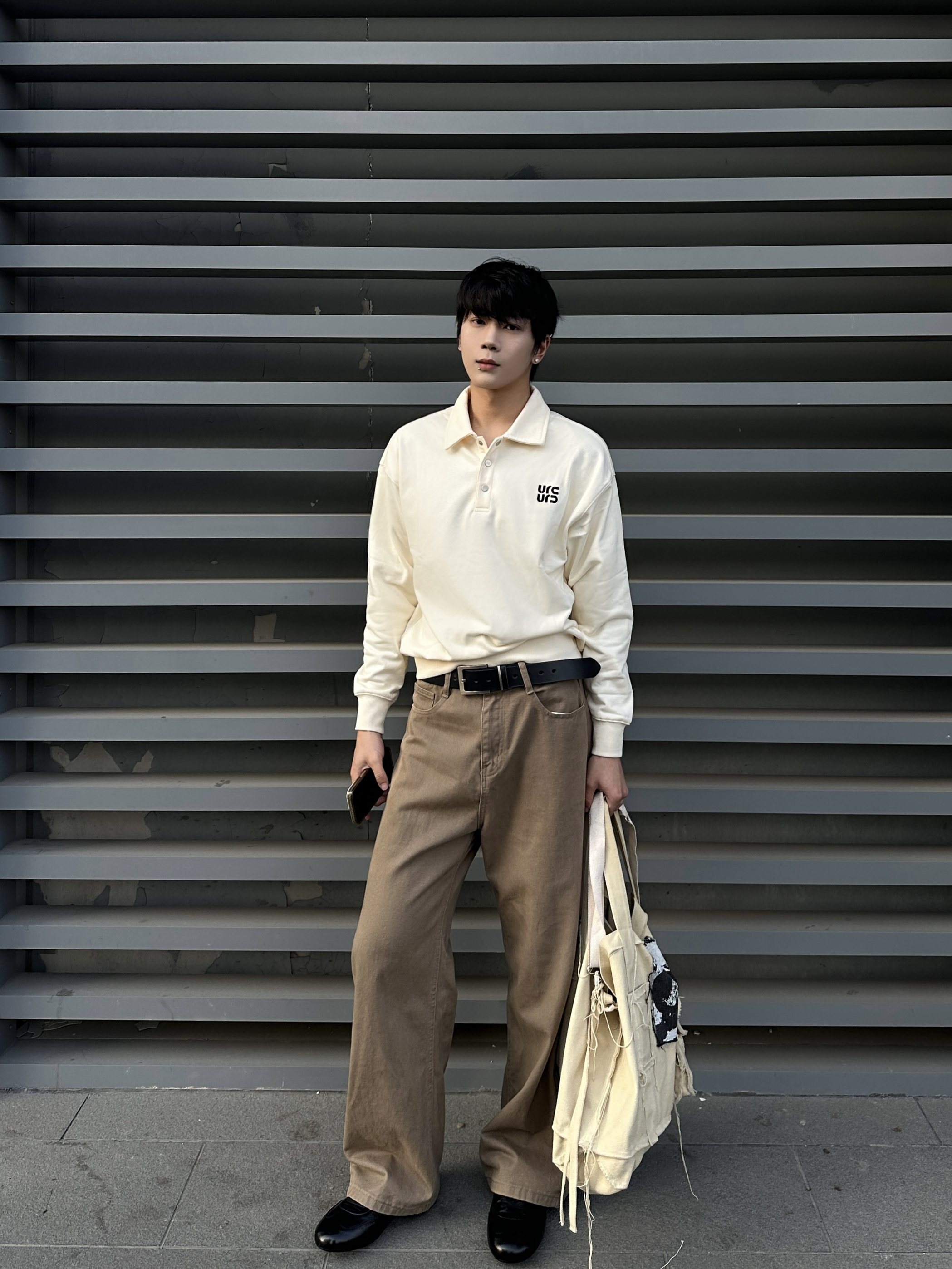 杏色polo领卫衣真的太戳我了 短宽的版型好有老钱那味儿 领口的刺绣标很低调 棉混纺的软乎乎还不挑身材 搭咖色直筒牛仔裤贼有层次感 宽松裤腿藏肉又显腿长 脚上这双黑皮德训鞋是点睛之笔 头层牛皮的油蜡质感超高级 薄底设计还能悄悄增高 整套穿出门日常又有腔调
