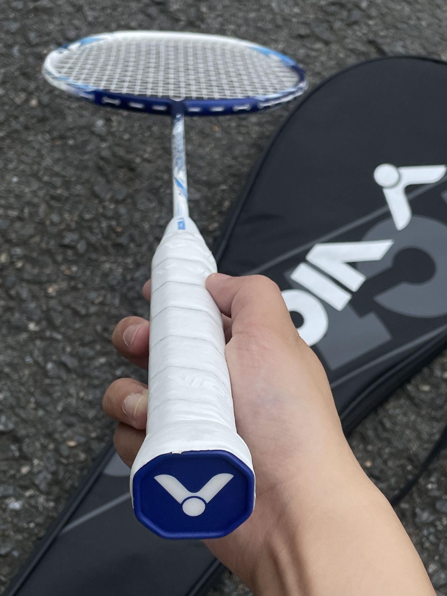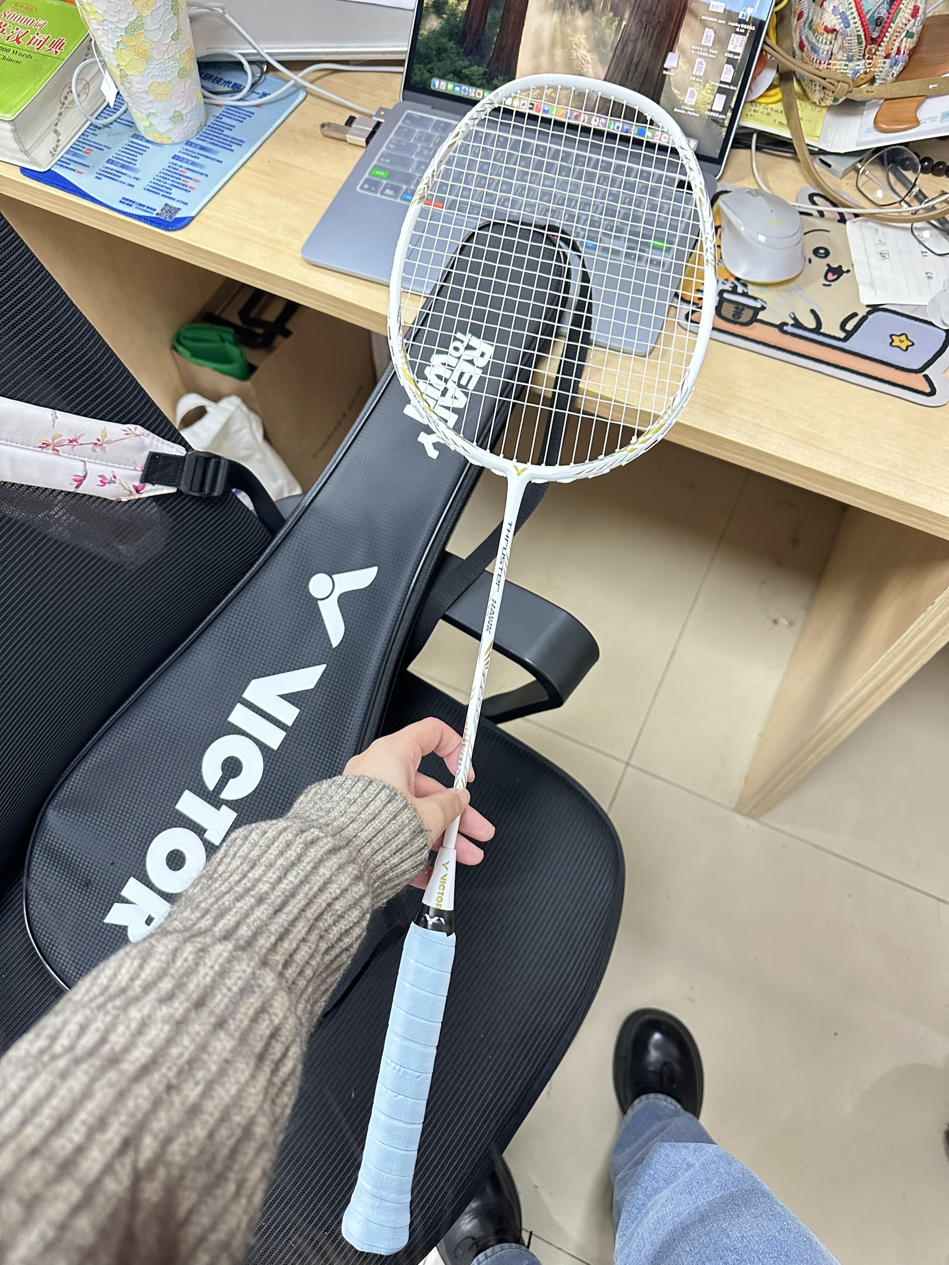 我心心念念的梦中情拍~ 威克多这把羽毛球拍好看又实用! 而且蓝白配色颜值好高 好有少年感 这个球拍是进可攻退可守!杀球起来杠杠的 我觉得这种材质很轻对新手来说超友好的