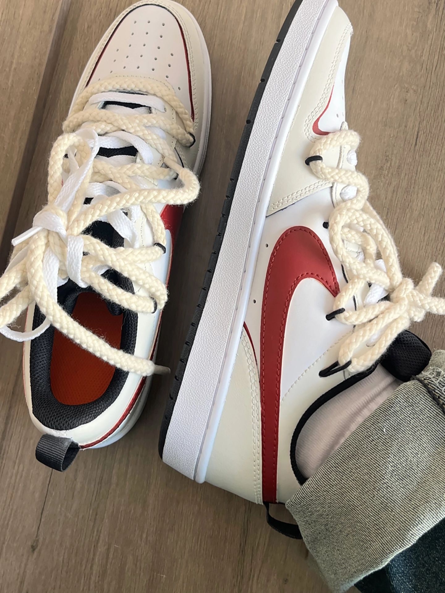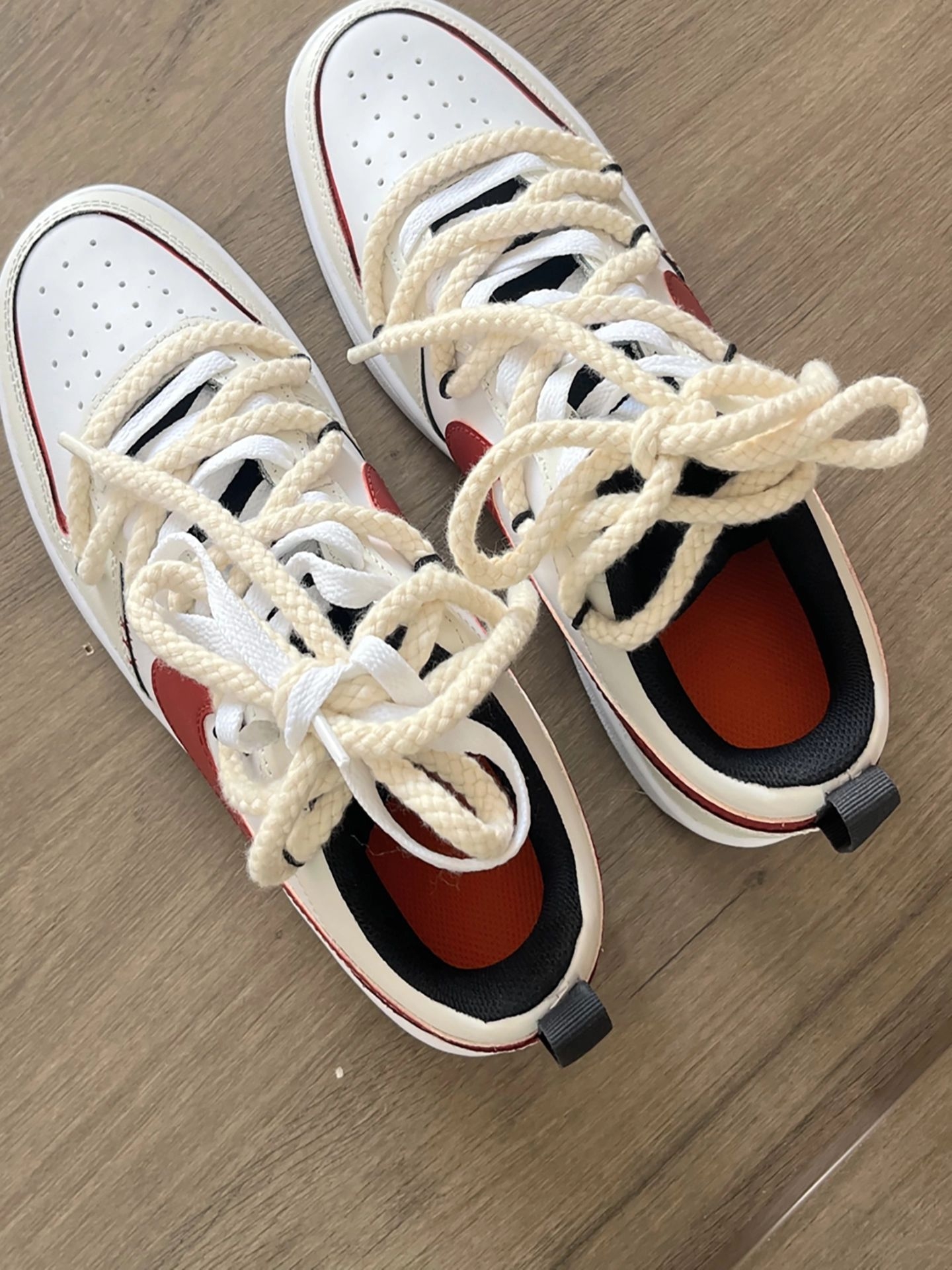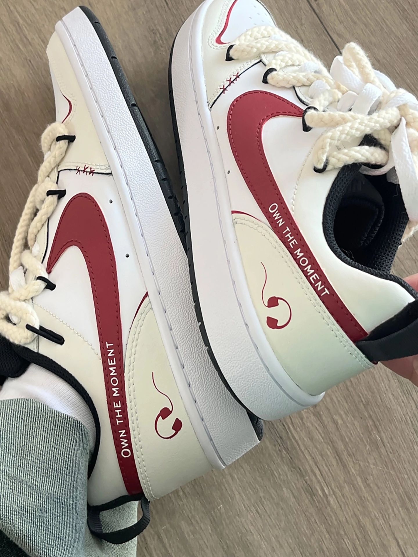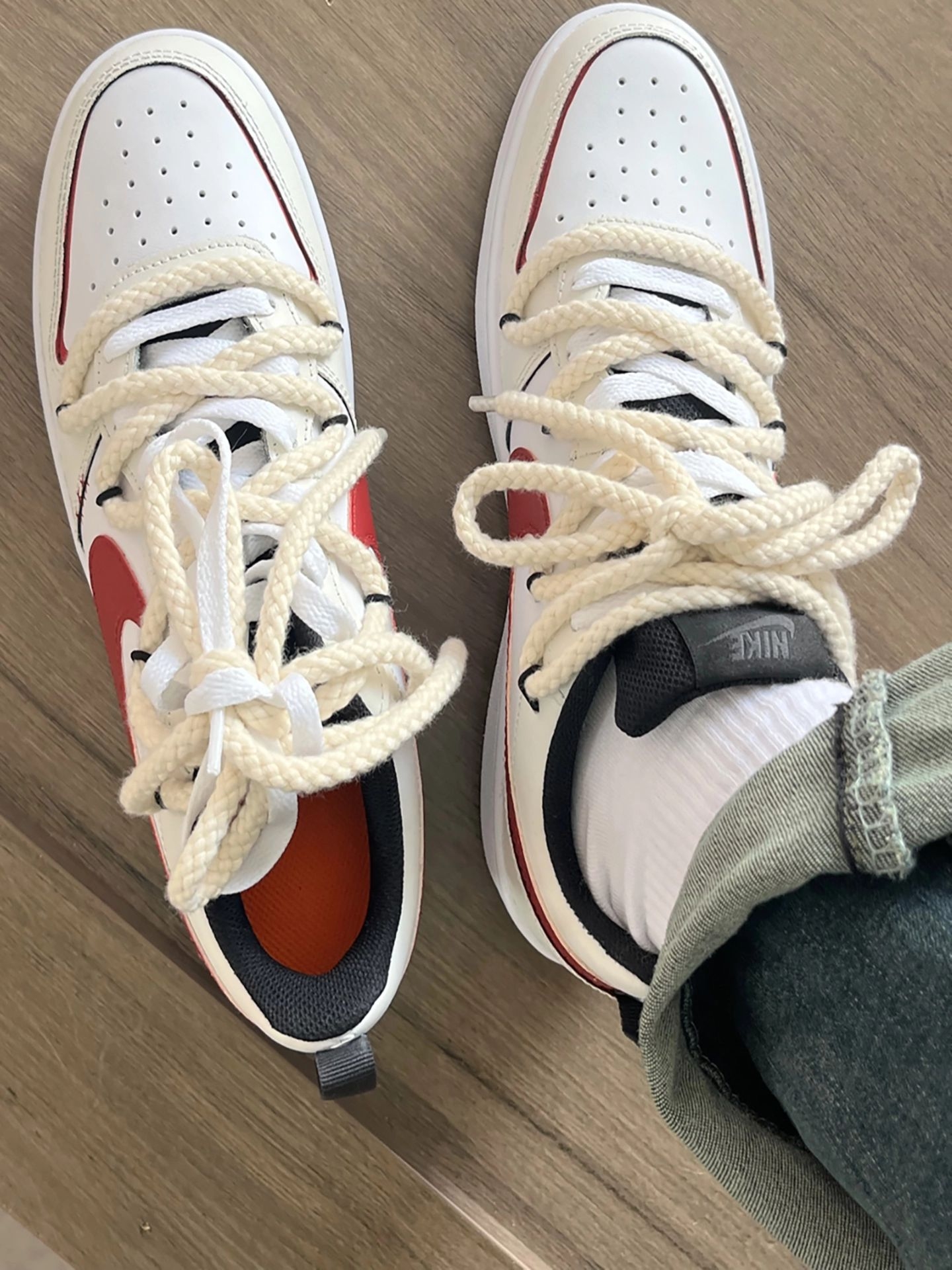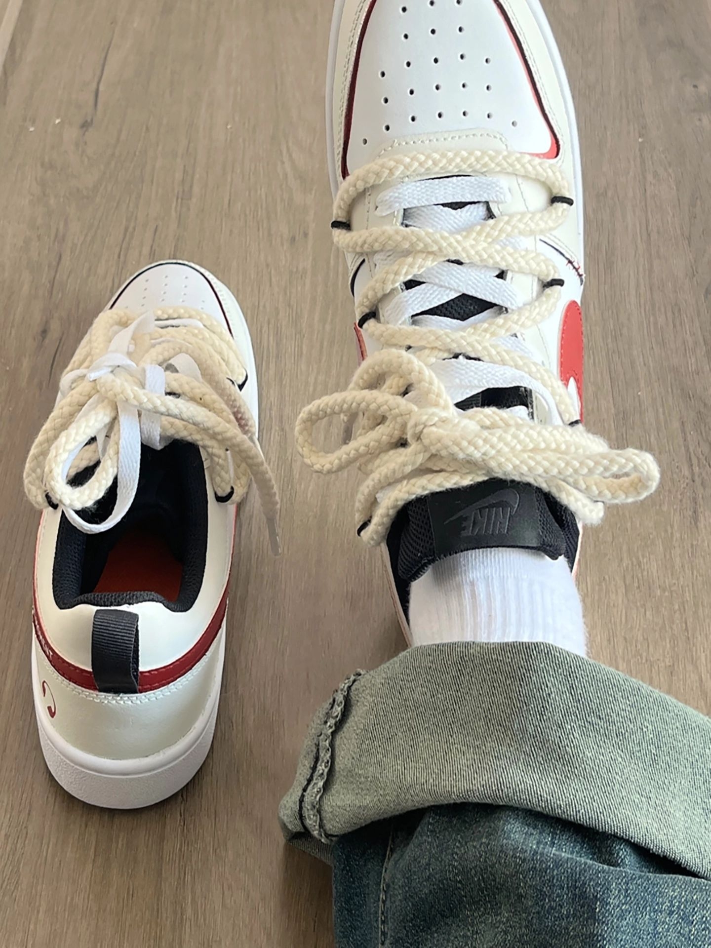 学生党冲!NIKE复古红勾鞋好搭到哭😭|||救命‼️上周逛NIKE挖到宝啦✨这双复古红勾鞋我直接锁死! 昨天穿它去图书馆,搭配白色卫衣+灰色运动裤,加了双白袜子😚。旁边小姐姐凑过来问链接,说红勾配色亮眼又不夸张~皮革材质摸起来有质感,上脚贴合脚型,走路稳当。 尺码建议:我37码选正码刚好✅。搭配小技巧:配短裙显腿长,配长裤休闲感拉满,秋冬穿也不冷💗。学生党姐妹闭眼入,日常穿搭选它准没错...