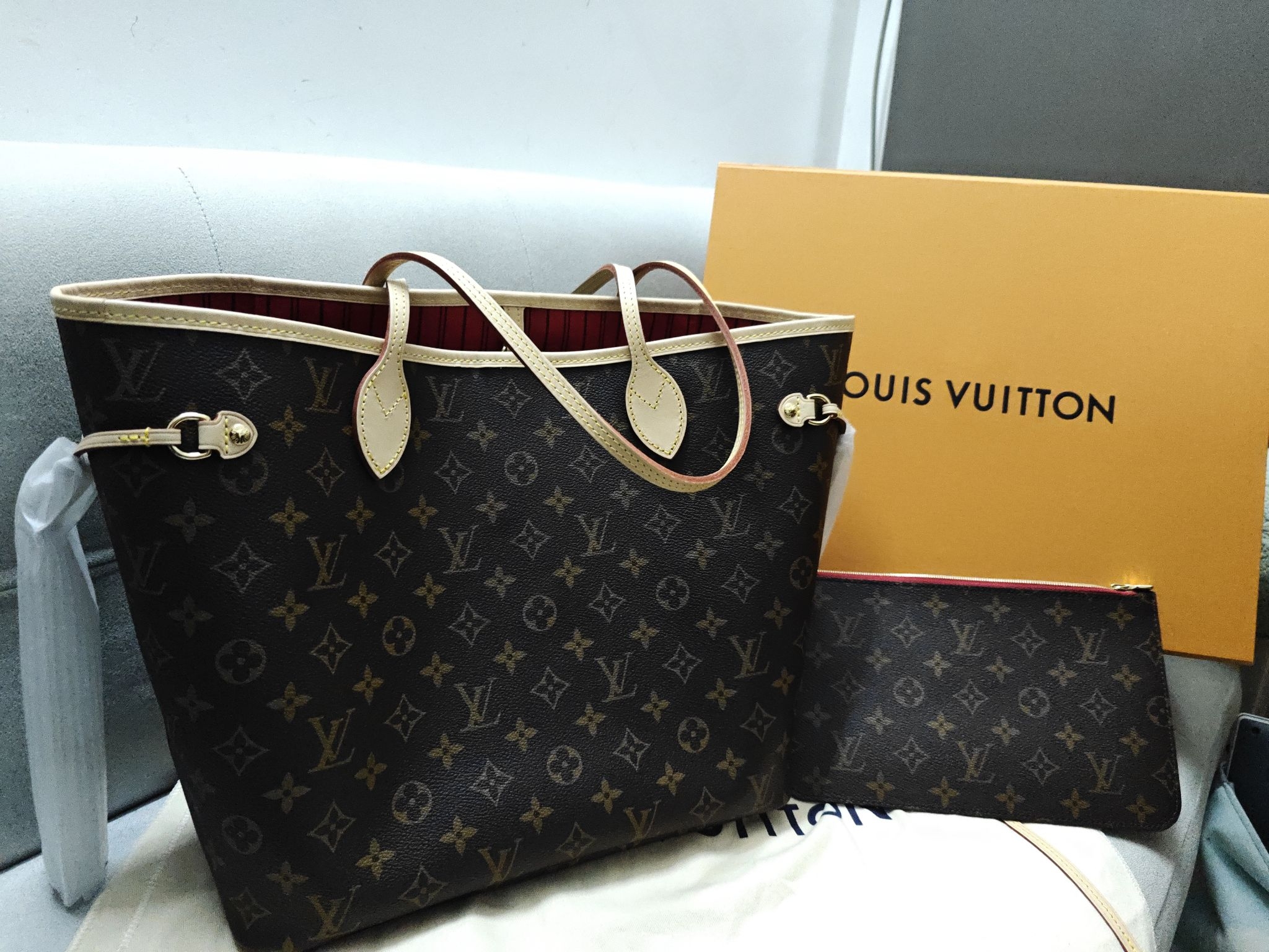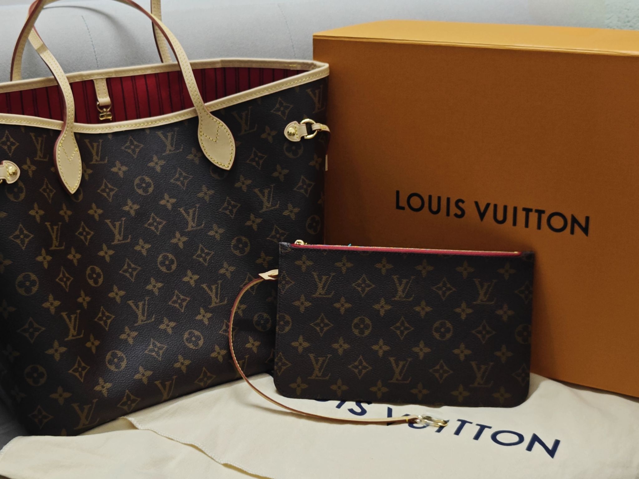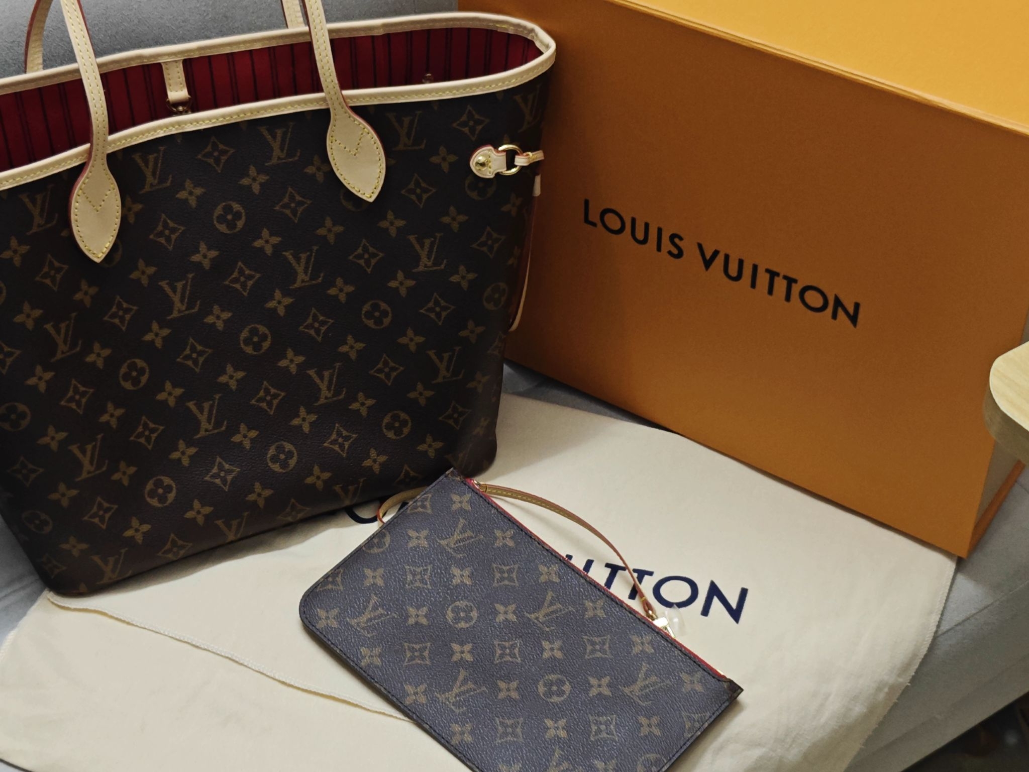 本篇笔记关联了Louis Vuitton/路易威登 Neverfull 中号 经典老花满印内里涂层帆布拼牛皮饰边购物袋单肩托特子母包手提包 米色内衬等商品,为用户提供真实的使用体验和购买参考。