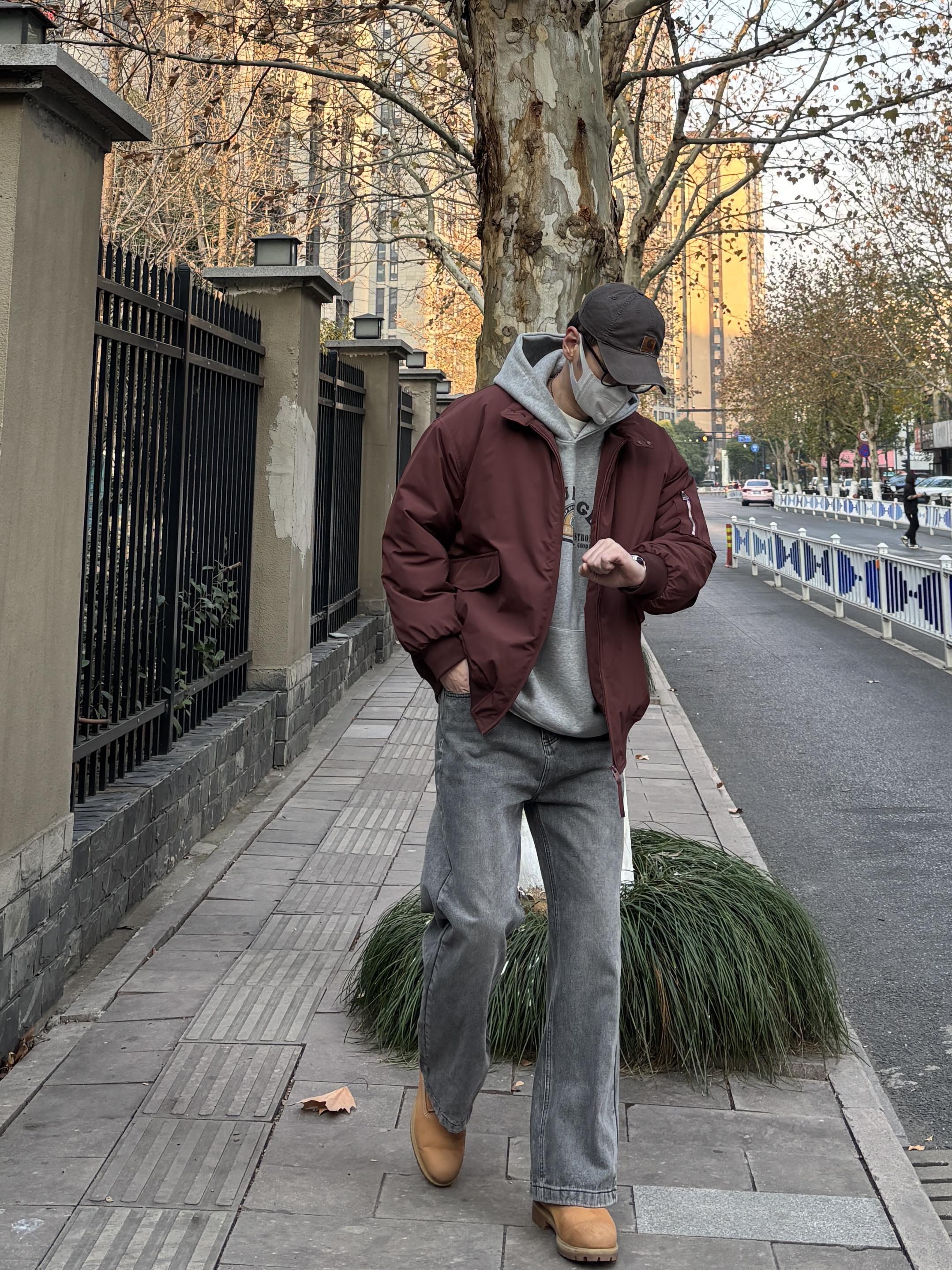 谁说男生过年穿红色会很俗,今天分享一套适合新年的红色系工装风搭配✌️ 上身选择酒红立领工装棉服+浅灰色字母连帽卫衣,下半身搭配水洗灰直筒工装裤和高帮大黄靴,呼应棉服的复古感,整套look色调统一不杂乱。 春节想穿的亮眼一些就来试试这样搭配吧🙋♂️ - 今日搭配 衣服裤子:NICE LILI 鞋子:timberland