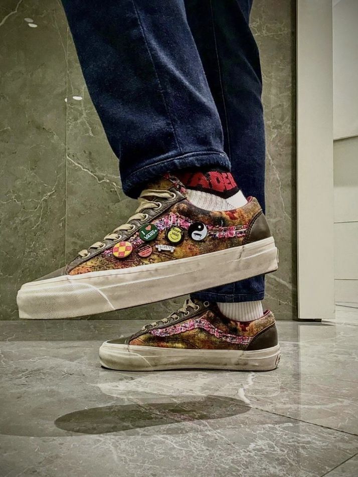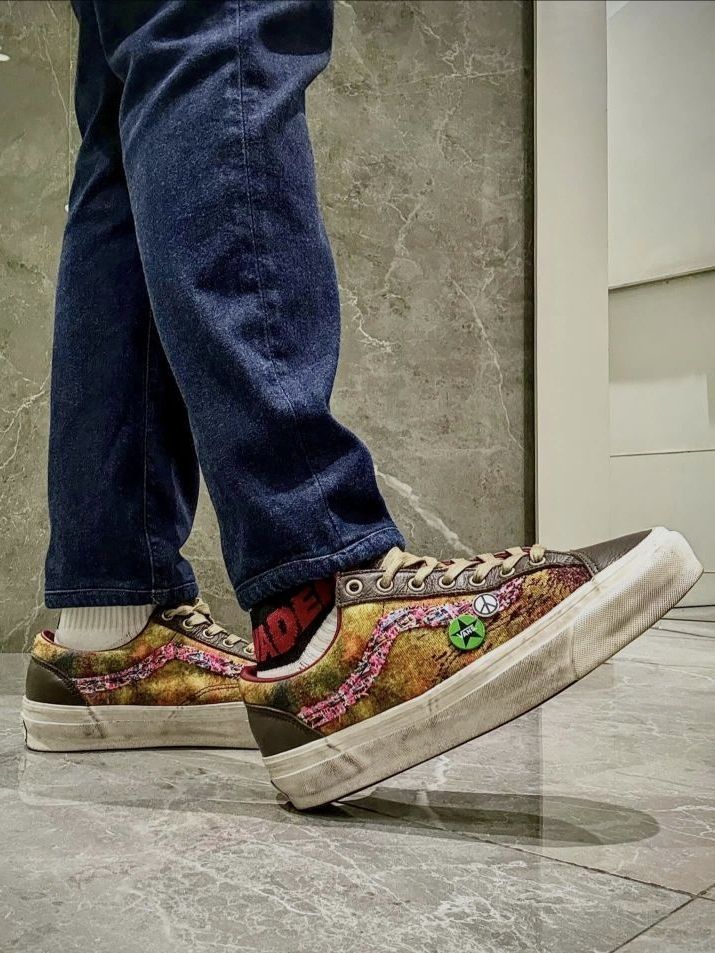 我直呼惊艳,这双Vans Premium Old Skool 36棕色款我上脚整三周,日常逛潮店、踩滑板都靠它,真心是板鞋里的艺术感宝藏款。鞋身的棕调扎染面料摸起来带着做旧的肌理感,搭配彩色徽章装饰,复古又有个性,低帮设计让脚踝活动超灵活,踩滑板做 Ollie 动作完全不拖沓。鞋床的缓震鞋垫踩下去软乎乎的,走一下午街脚底也不酸,橡胶大底的华夫纹抓地超稳,滑滑板时板感超清晰。 我越看越爱,辨真假...