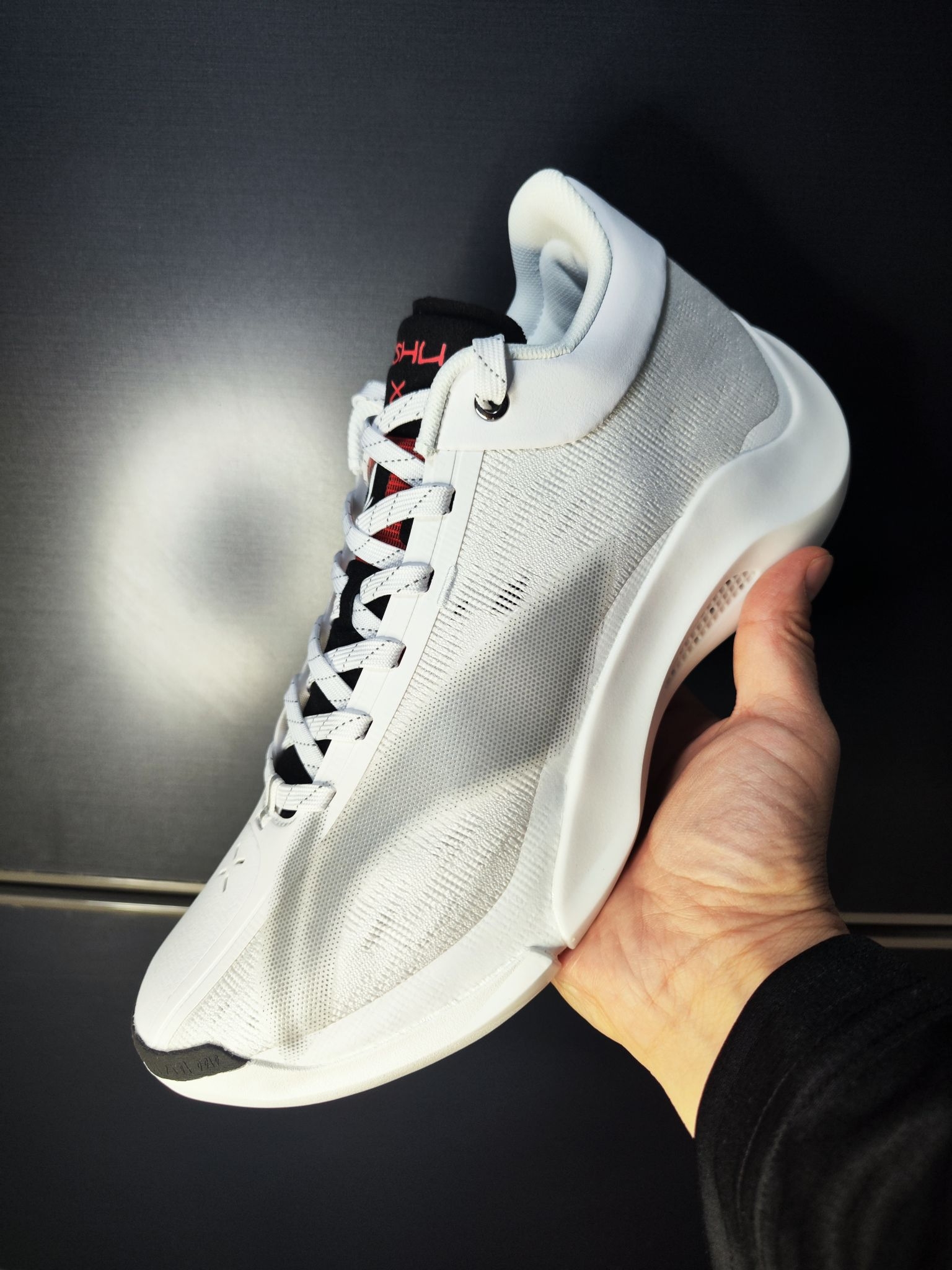 我是妥妥颜值党,打球不咋样,主打一个耍帅,所以选鞋的第一顺位就是颜值! 新年的第一双战靴就是李宁的闪击10,配色是这个黑白金的配色! 鞋身比较瘦,一眼看下去属于是细长的类型,所以脚宽或者脚丫子胖的要注意⚠️ 鞋子的技术不过多描述,我只说脚感,还没有实战只是简单试穿,整体比较轻盈,蹦跳前掌推动力挺足的,我160斤体重,脚力不大,能明显感觉到抗扭,适合快速突破的选手! 水晶的防滑鞋底,防滑效果ok~...