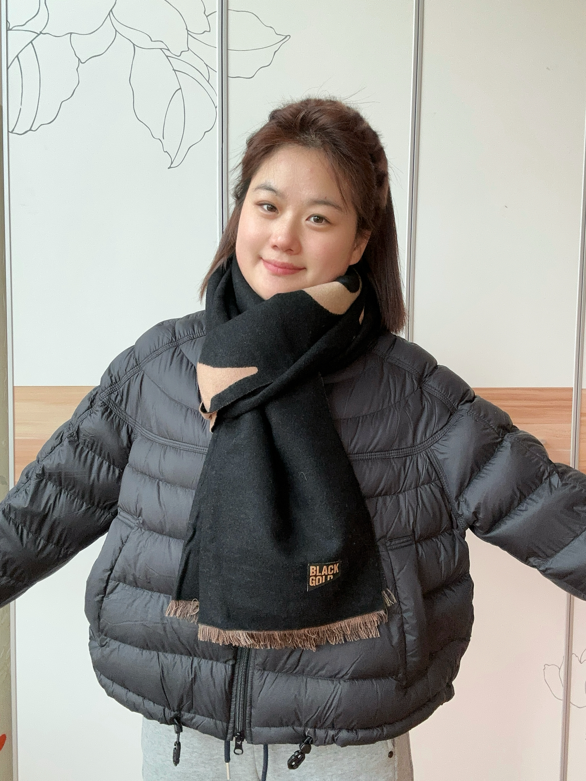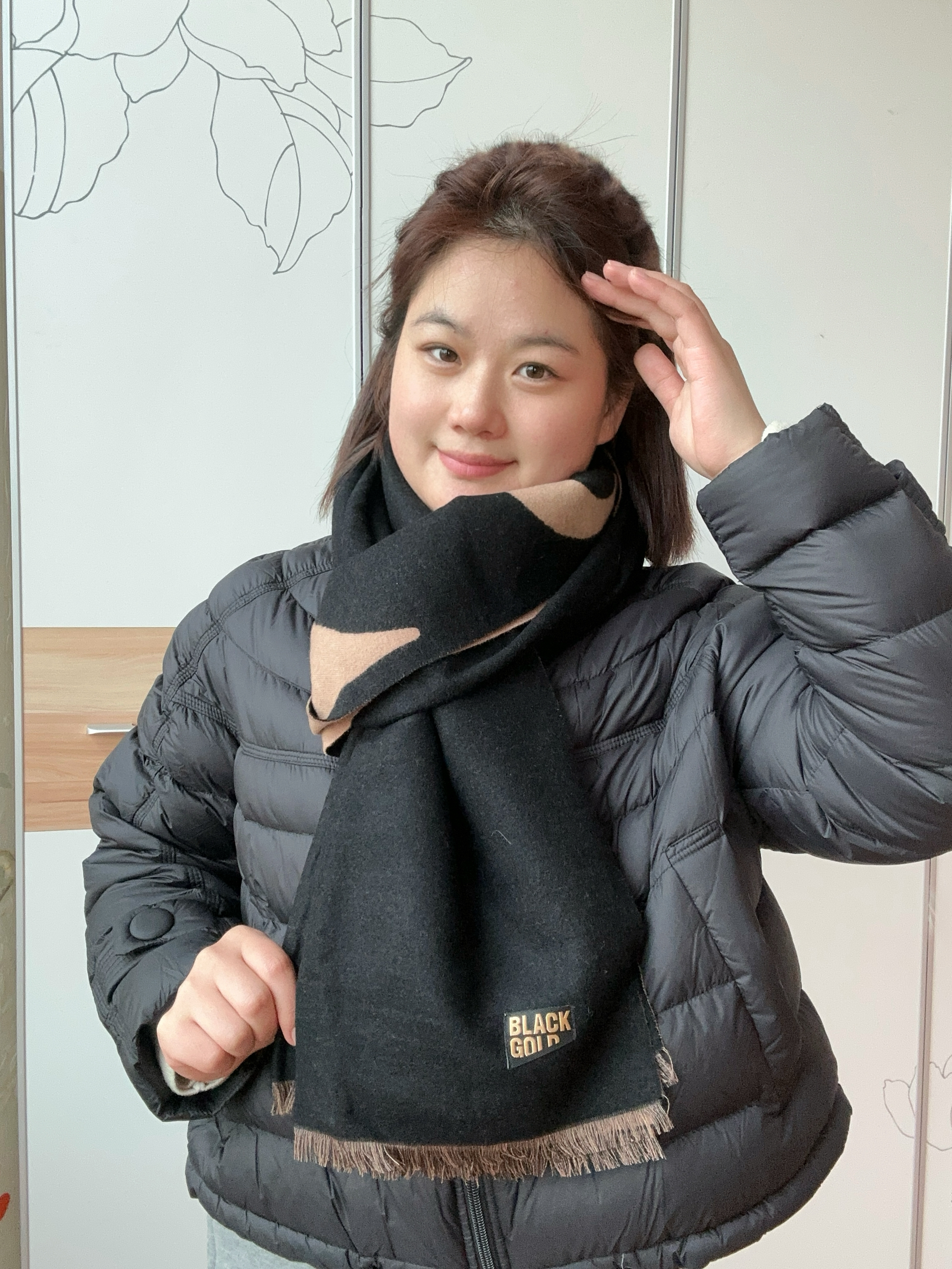 果然贵有贵的道理! 高梵这款黑金围巾?高级又保暖时尚百搭,非常的耐看。 上身简单大气 男女都可以 永不过时的那种一面黑色 一面棕色花纹 好看又服帖 面料非常柔软舒服 很厚实 防风防寒! 可以当作围巾 还可以当披风 怎么围都好看! 氛围感拉满。 冬天怎么能少得了围巾「呢!