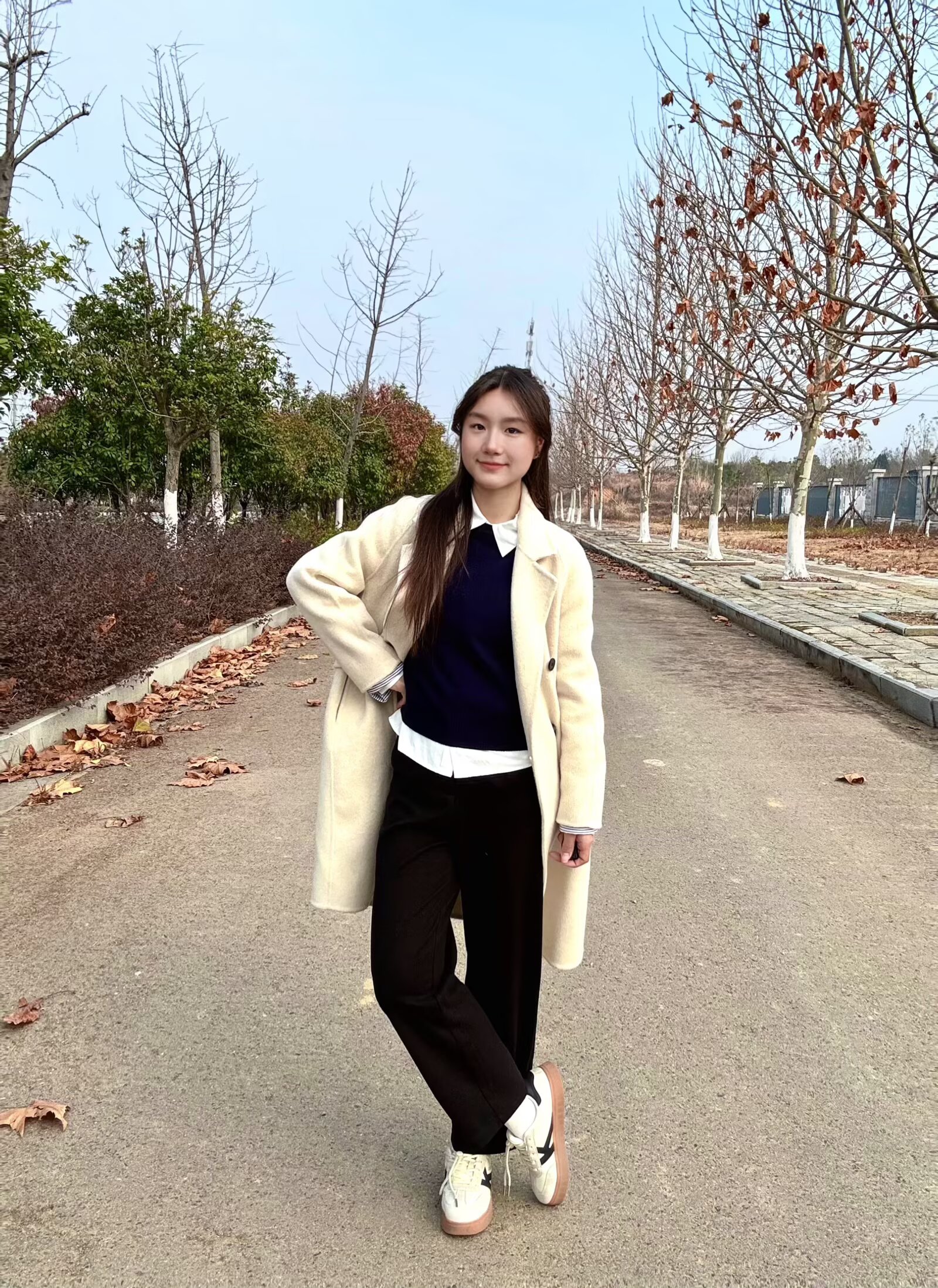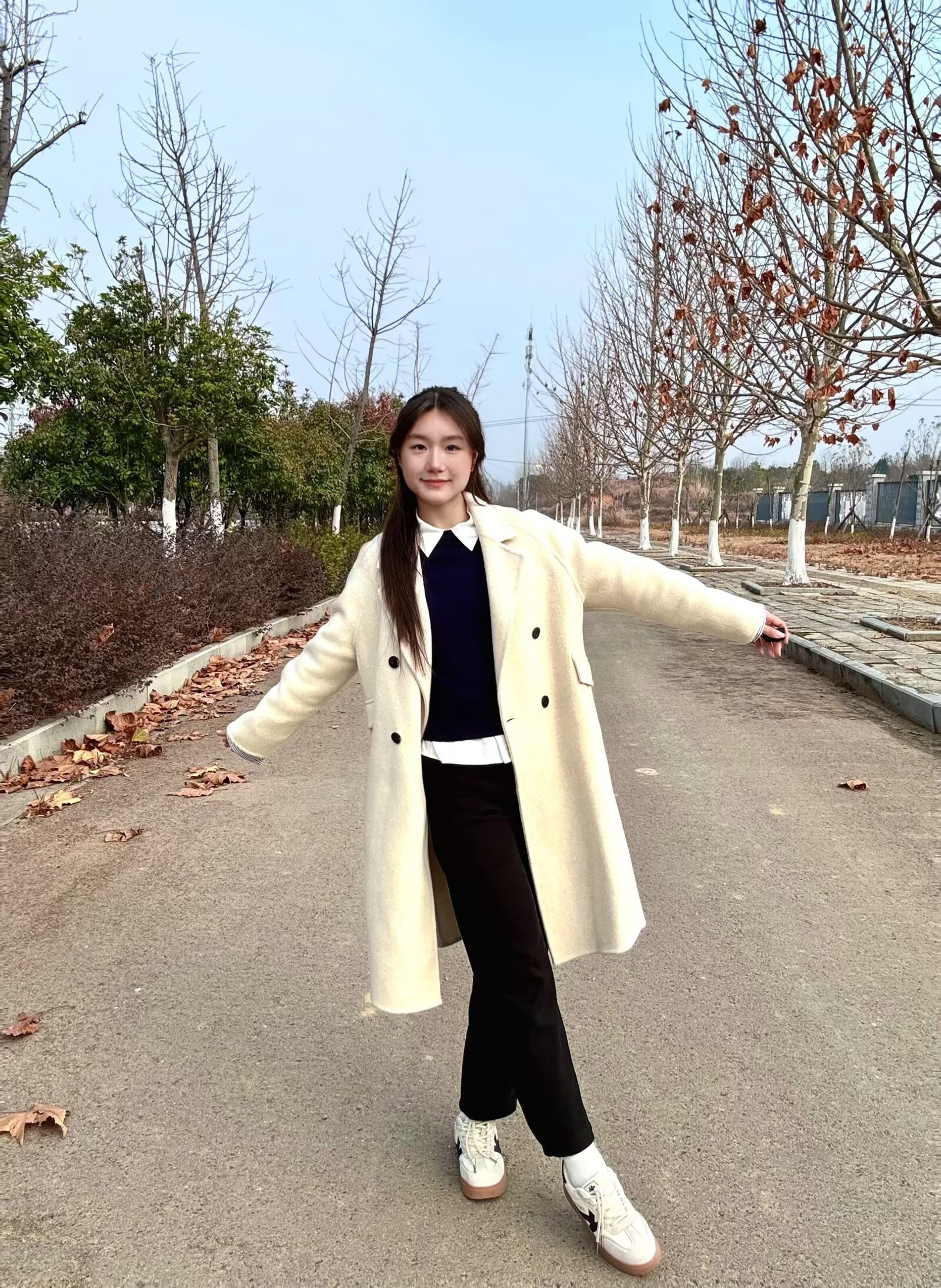 这条裤子我简直太爱啦~它的高腰剪裁稳稳拉高腰线😉配合九分的裤长刚好露出脚踝,视觉上瞬间拉长腿部比例,哪怕搭配休闲板鞋,也可以显得腿超长🤩裤型是微阔的直筒设计,巧妙修饰腿型,把胯宽、腿粗的小缺点统统藏住,显瘦效果拉满喽💕 而且加绒的内里兼顾了保暖性,秋冬搭配米白色大衣+藏青针织衫的叠穿,温柔又利落,不管是日常出街还是通勤都适配。黑色的基础款属性还能和各种上衣、外套混搭,一裤多穿太实用啦!🥳