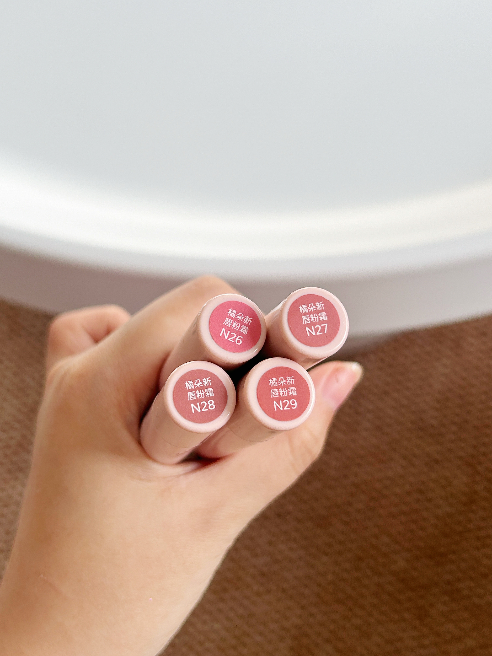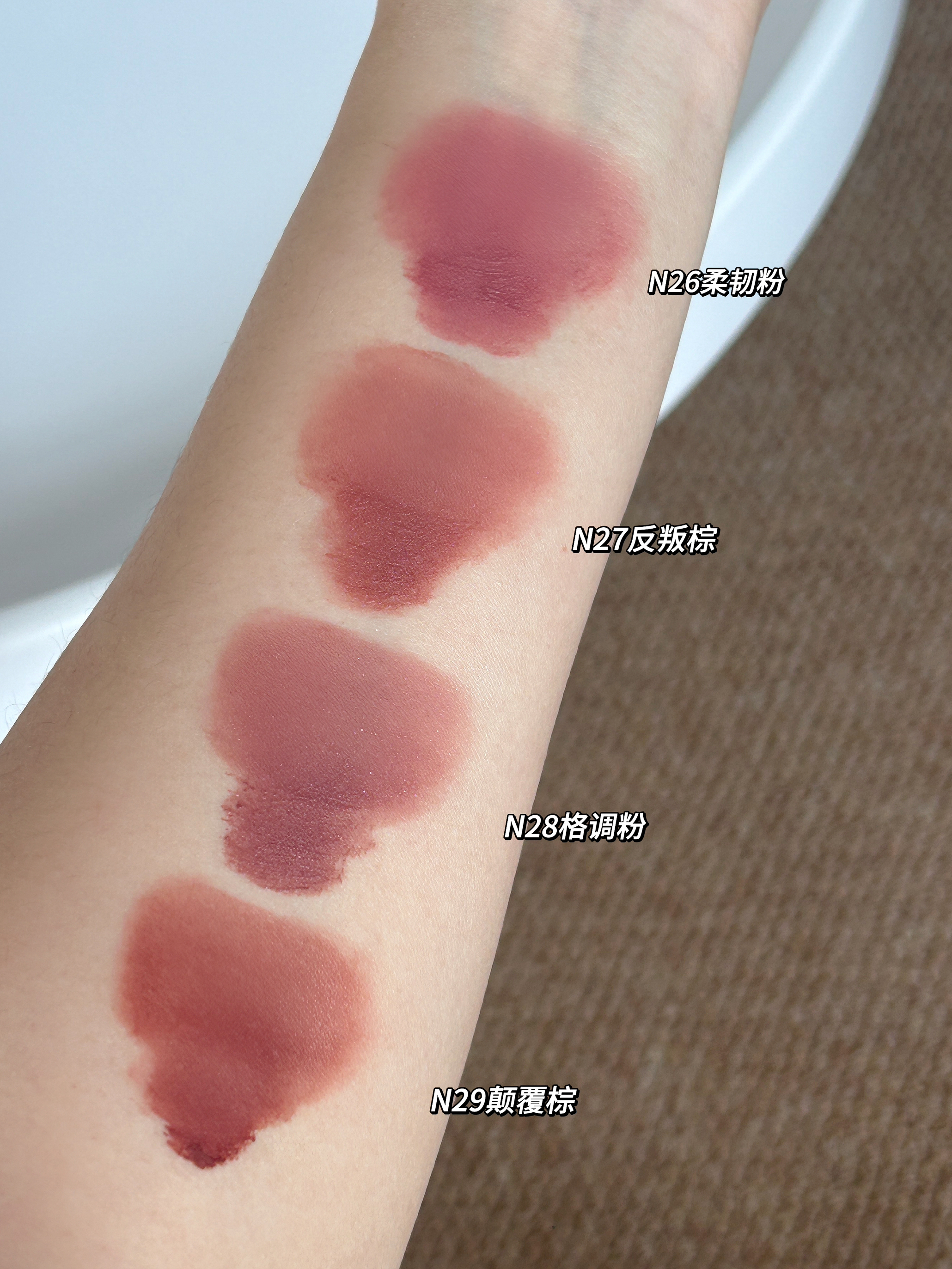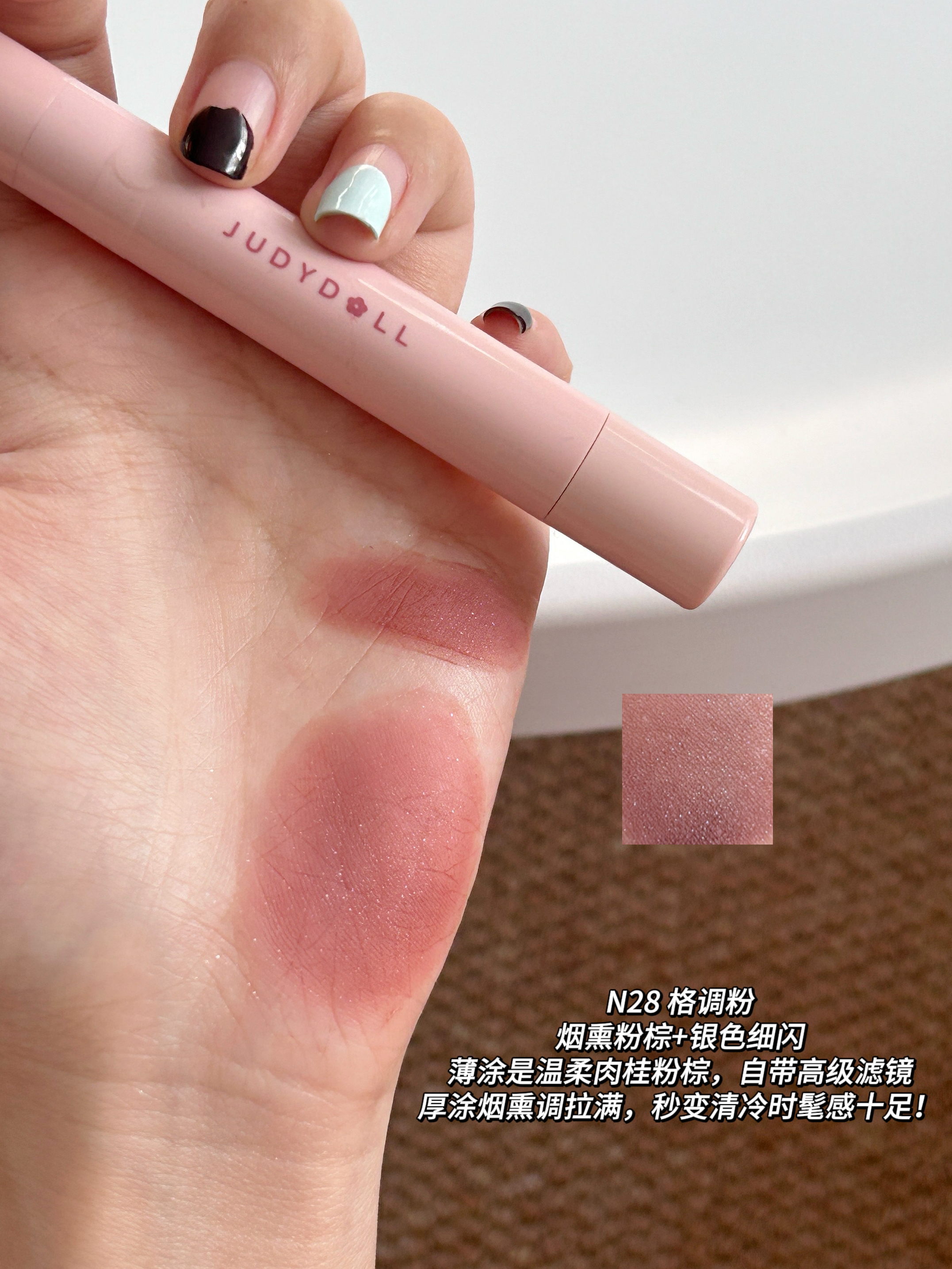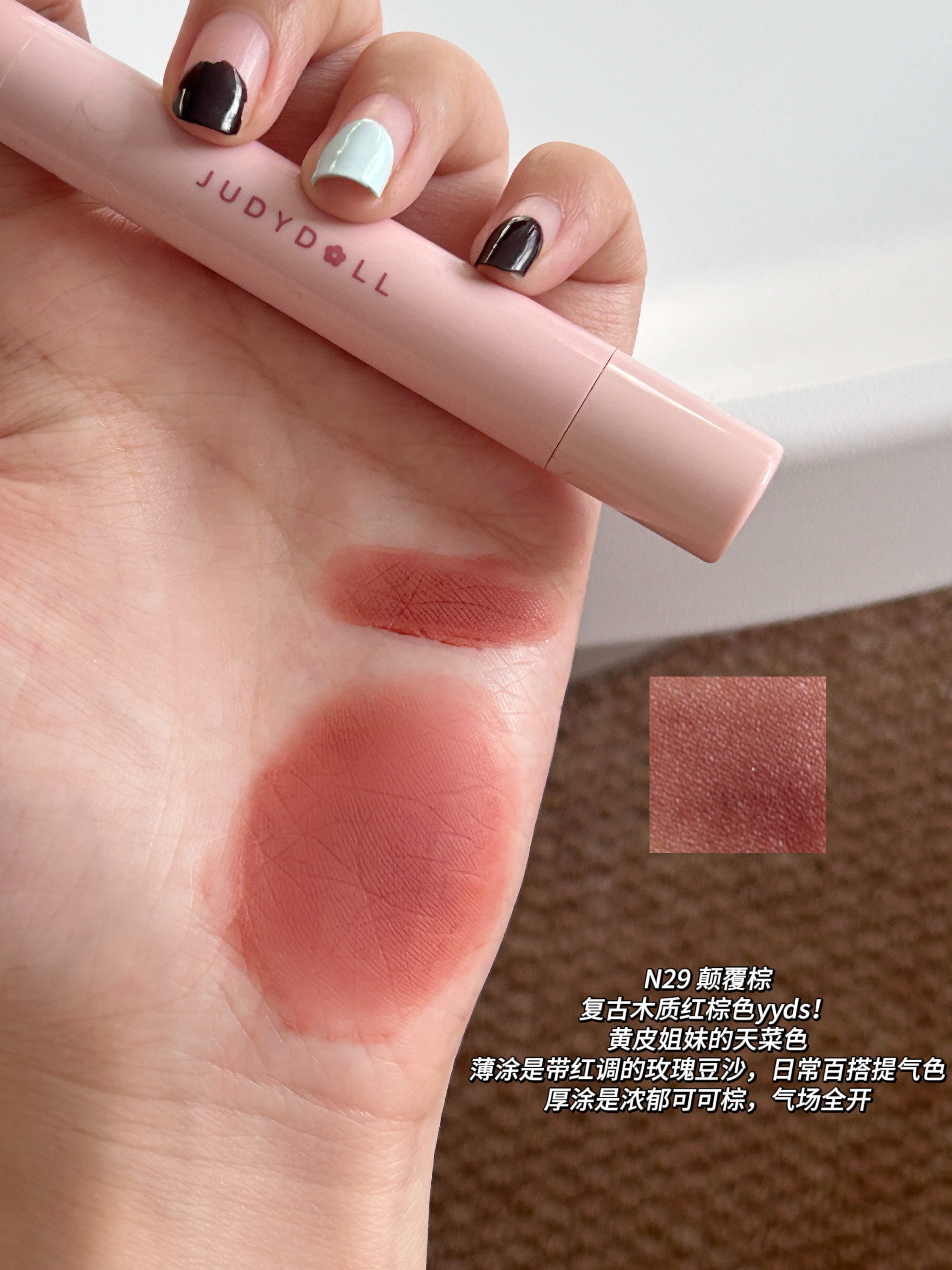 谁懂啊!橘朵这支粉棕系列唇粉霜直接把秋冬氛围感焊在嘴上了! 毛绒小毛球刷头软乎乎的~ 霜转粉质地,添加了植萃精油,滋润不拔干,久涂也不紧绷 💗#N26 柔韧粉 低饱和中性裸调灰粉太会了!薄涂是通勤必备的伪素颜好气色,厚涂温柔到骨子里。 🍫#N27 反叛棕 乌木奶咖棕里藏着细腻粉紫细闪,薄涂是温柔日杂感,厚涂棕调更浓郁,搭配毛衣简直绝配!黄皮涂也超显气质~ ✨#N28 格调粉 烟熏感粉棕+细碎银闪,...