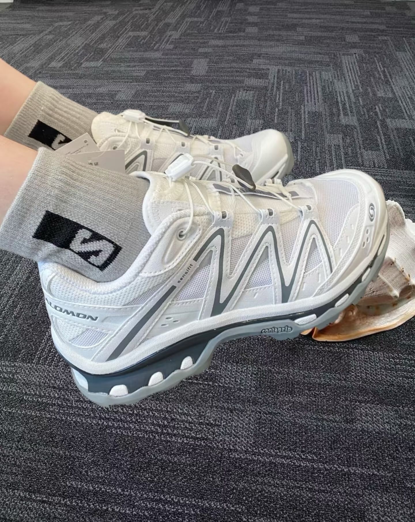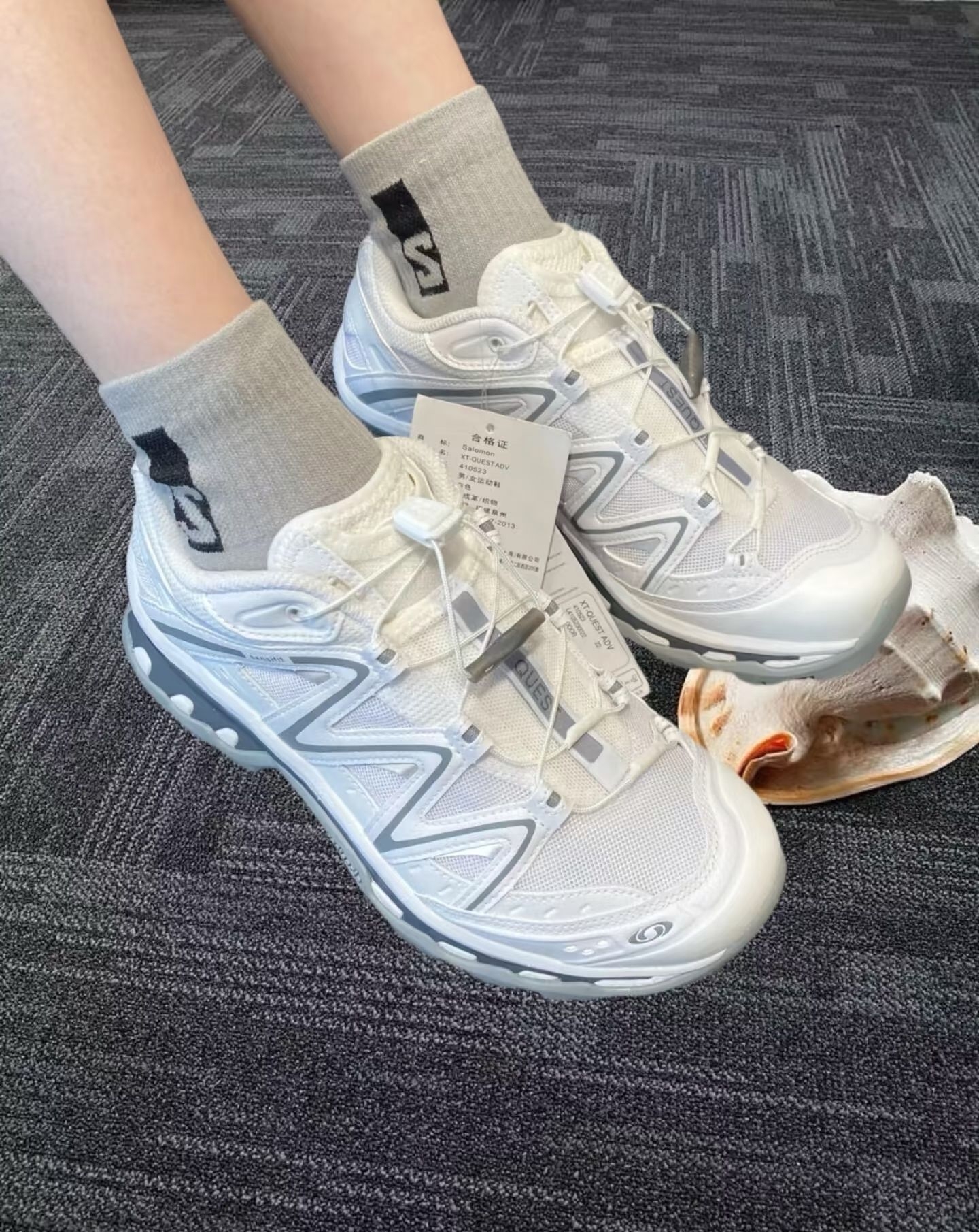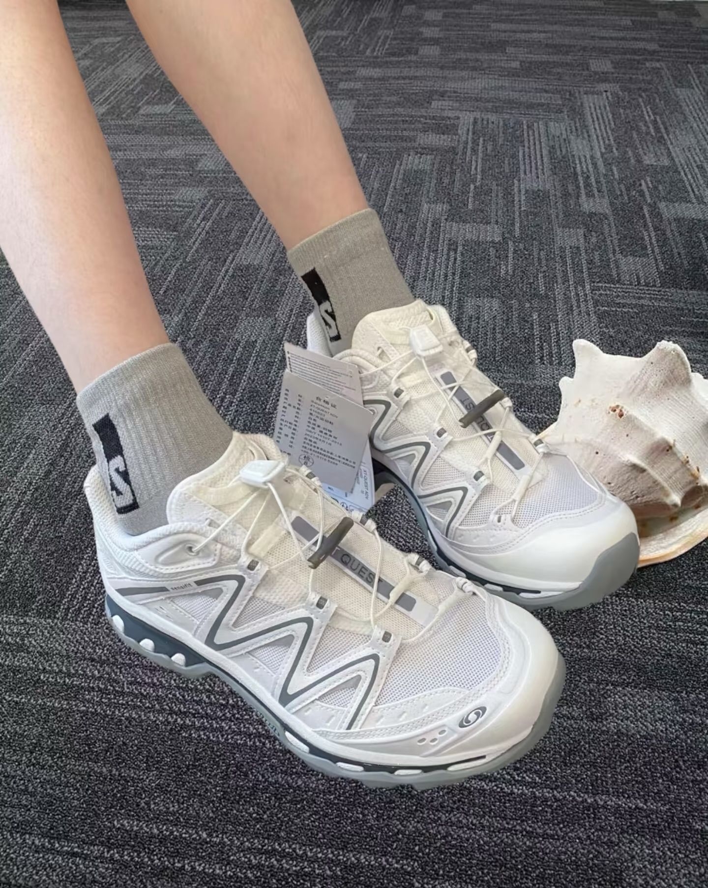 这双鞋在我心里颜值堪称天花板级别,白灰配色简约又干净,清冷氛围感直接拉满。哪怕知道白色不耐脏,可我还是没忍住剁手了,实在是太爱! 对比萨洛蒙其他系列,它的设计更具分量感 ,脚感堪称一绝,上脚能明显感受到抓地力,走路很稳。而且还有悄悄增高的小心机,对小个子超友好~就是码数稍微偏小,建议大家买大半码,穿着会更舒适。 颜值超高,实用性也强,不管是日常出街还是户外徒步,都完全hold住。