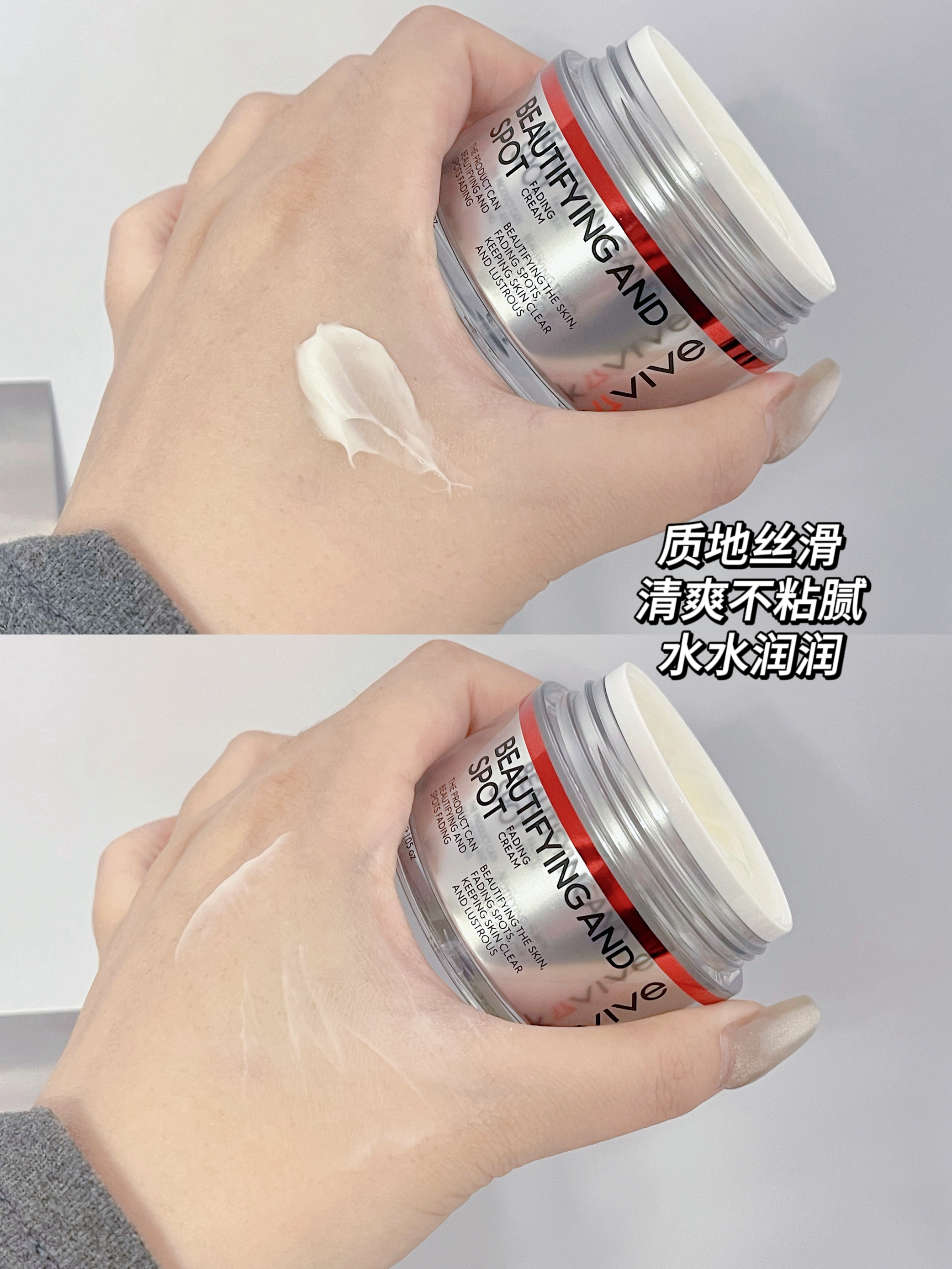 一到冬天我的脸就很容易干燥起皮 加上经常熬夜脸变得又黄又暗沉 于是就试了这款Kuvive美白祛斑霜 淡黄色的膏体 跟奶糕一样的质感 软糯丝滑 好推开 水水润润的 轻薄好吸收一点也不粘腻 成分也温和 敏敏肌也可以放心使用 坚持用了一段时间 皮肤透亮了许多 面部也变得滑溜溜的 素颜气色🆙🆙🆙~