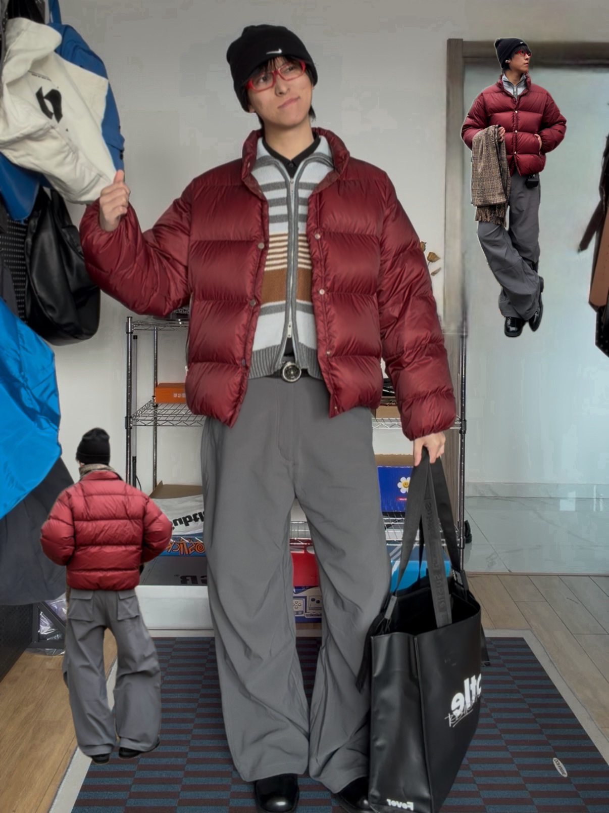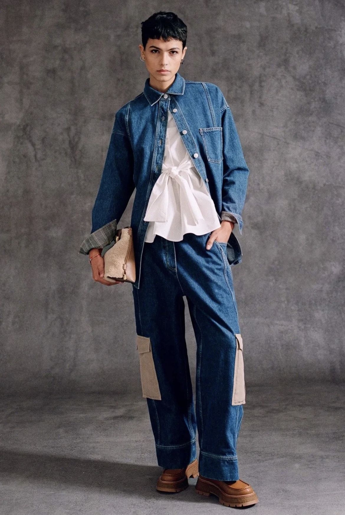 我喜欢在识货APP里找货,最终我买下了它,选择了最经典的棕色。它很快成了我这个秋冬的“万能插件”。它的魔力在于,不挑剔场合。工作日,我穿它搭配直筒西装裤和衬衫,它能化解正装的板正,增添一份时髦的智力感。周末,我穿它搭配牛仔裤和 oversized 卫衣,它立刻让休闲装扮有了精致的落脚点。甚至有一次,我临时需要参加一个晚间的沙龙,用它搭配了一条黑色的羊毛连衣裙,竟然也毫不违和
