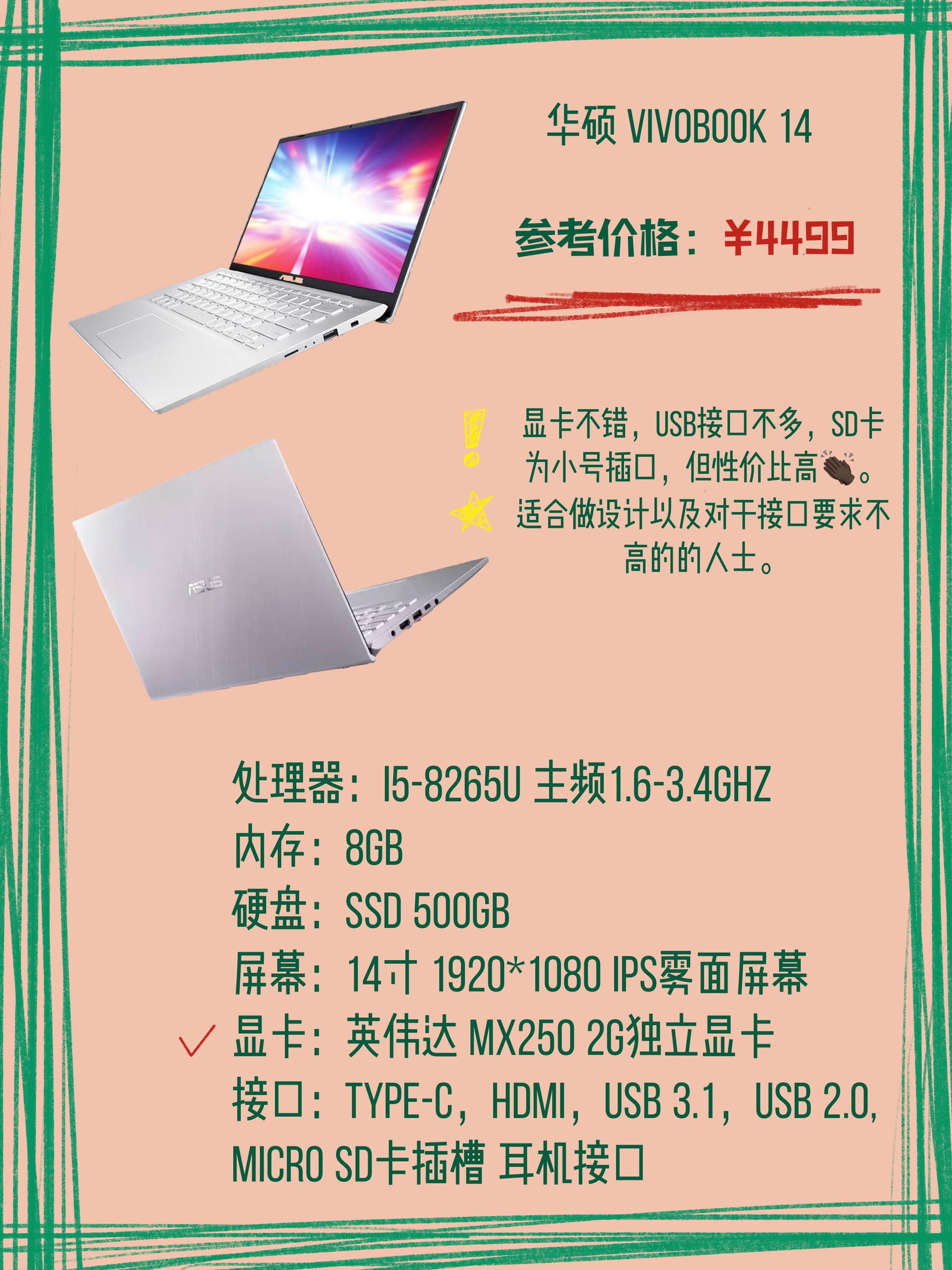 ▫️这篇是现在比较热门的几款4000价位的笔记本电脑机型可以看看哦👆🏻👆🏻👆🏻 ▫️ ▫️惠普星14 这款维持了惠普学生机型一贯的高性价比,处理器也是最新的英特尔10代,比8代性能更强劲。很适合需要性价比高的产品的人,USB接口比戴尔灵越和惠普战66少了一个USB2.0。 ⭐️⭐️基本上学生、喜欢玩游戏的人都是可以考虑的。👏🏻👏🏻 ▫️ ▫️华硕VivoBook 这款性价比不错,采用的显卡也蛮好的...