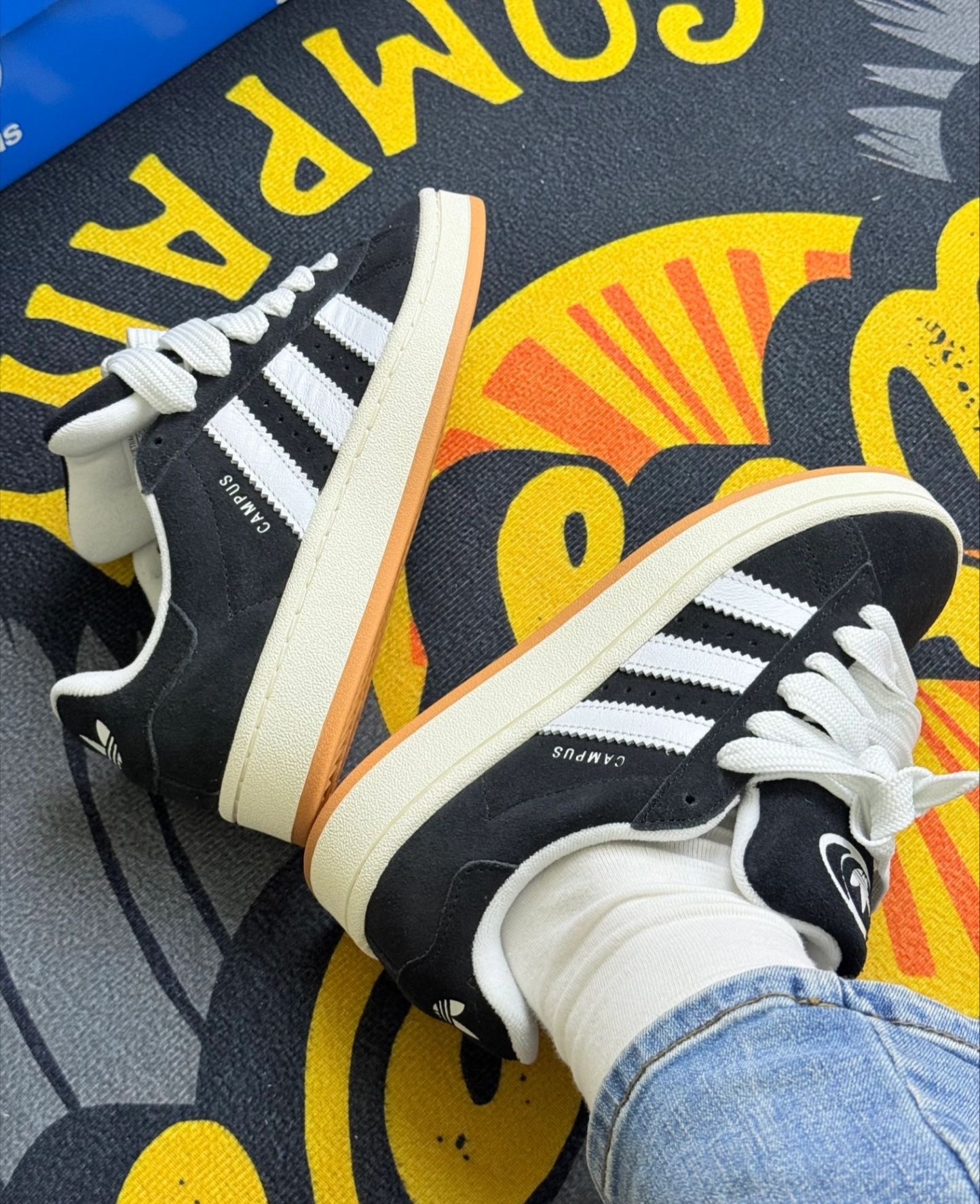 这双Campus上脚一周,说点实在的: 麂皮摸着手感是真软乎☁️,配白袜牛仔裤随便搭都不突兀,日常穿出门不用费脑子想搭配。脚感比想象中舒服,走一下午逛超市,鞋底软度刚好,不硌脚也不闷脚[赞_blue]。我觉得会偏大一些,鞋底偏硬🚶♀️。