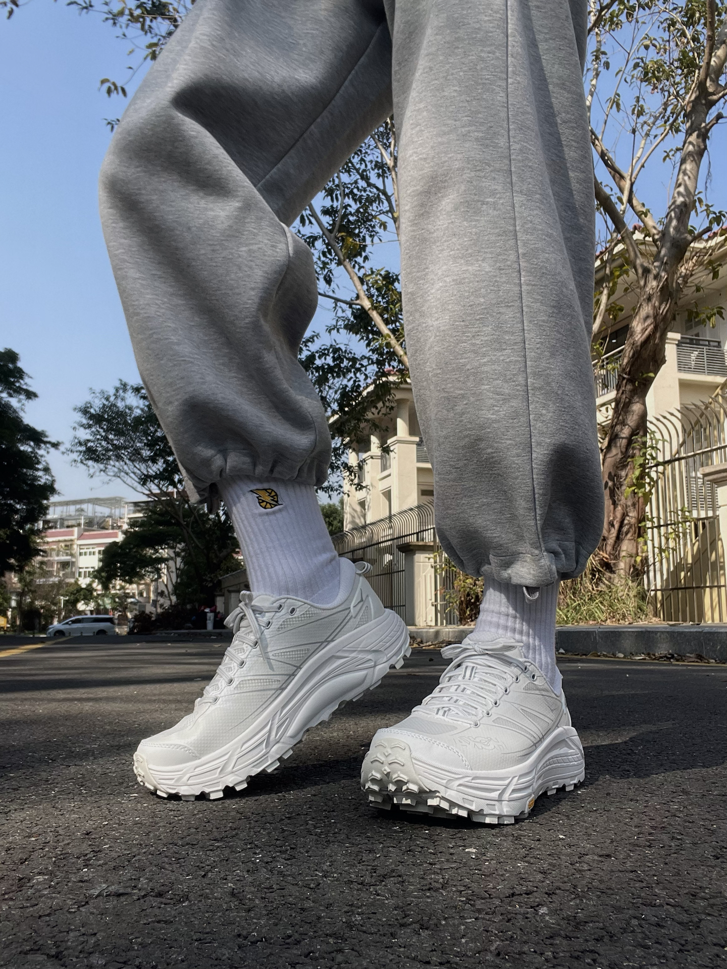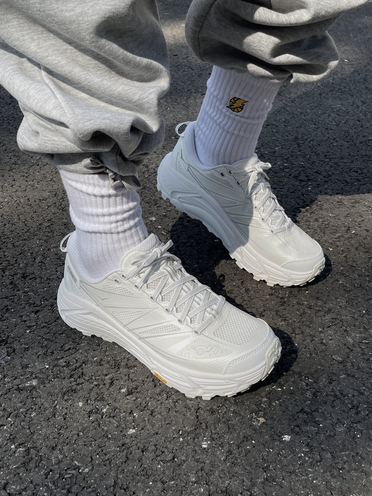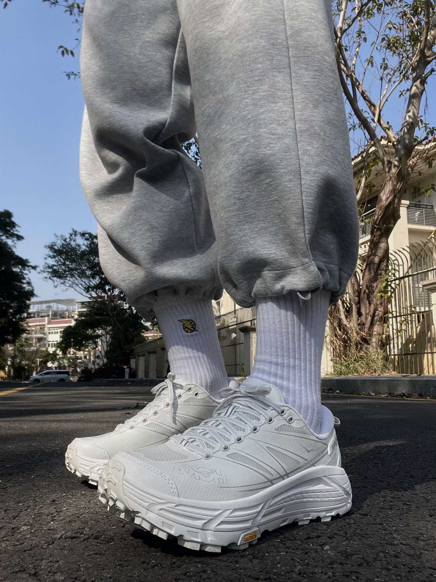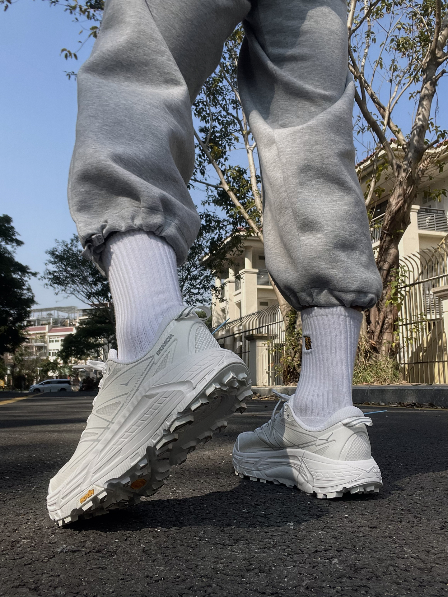 之前一直听说hoka的脚感很不错 一直很想试试,也终于买到了自己喜欢的配色了 这双mafate speed 2看着很大很厚 拿在手上却真的很轻太多了 选的白色清爽又干净 而且超厚的鞋底直接让你增高5cm 大底来自Vibram,防滑耐磨不用说啦! 今天拿到阳光下拍几组照片! #2025年度鞋王