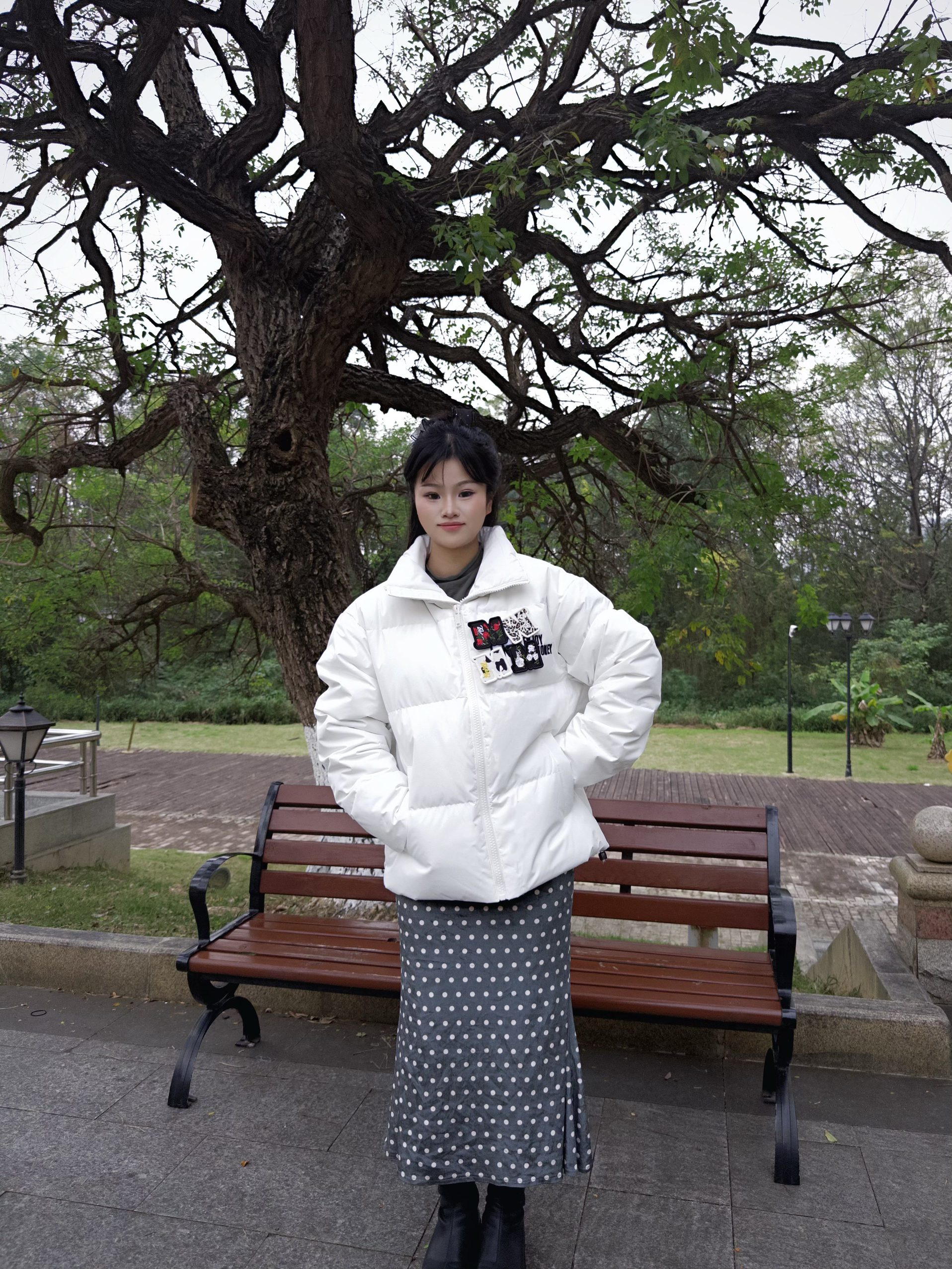 这款羽绒服的设计太绝了,立领设计,不仅超级保暖,还能修饰脸型,穿起来更加精致😉😉而且,它还有魔术贴,穿脱超方便,再也不用担心拉链拉不上啦!😎😎街头刺绣的元素,让整件衣服都充满了时尚感🫶🫶