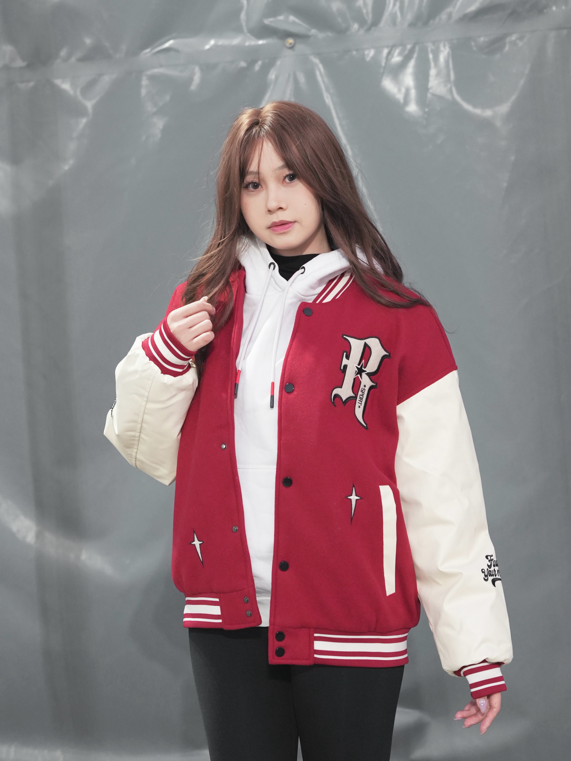 这款棒球服的撞色拼接很有质感,pu皮袖搭配重工刺绣字母,复古学院风拉满。 我喜欢它的双层设计,秋冬穿刚好适配温度。 我认为宽松剪裁包容度高,正常码购入就适配大多数身形,日常穿也百搭不突兀~