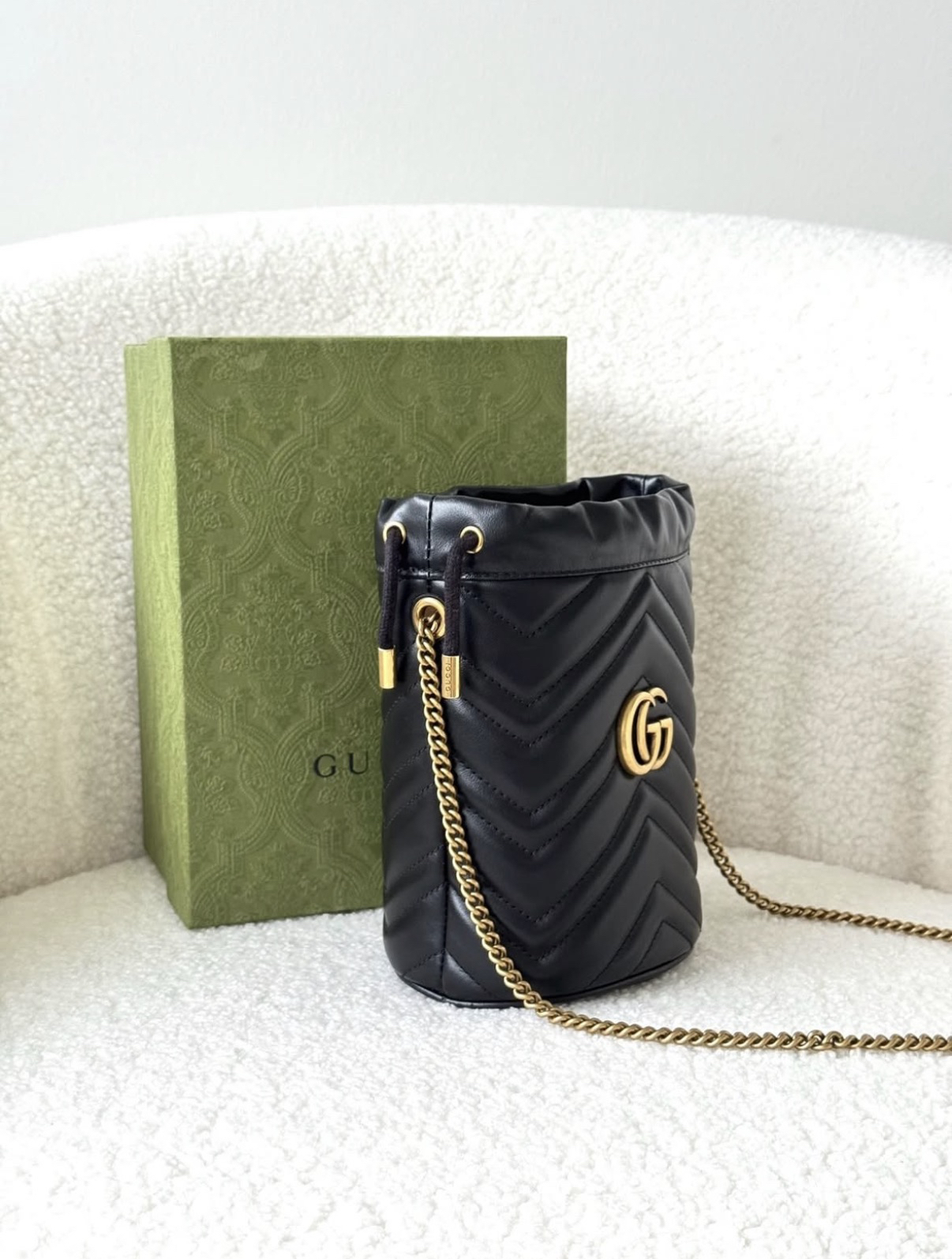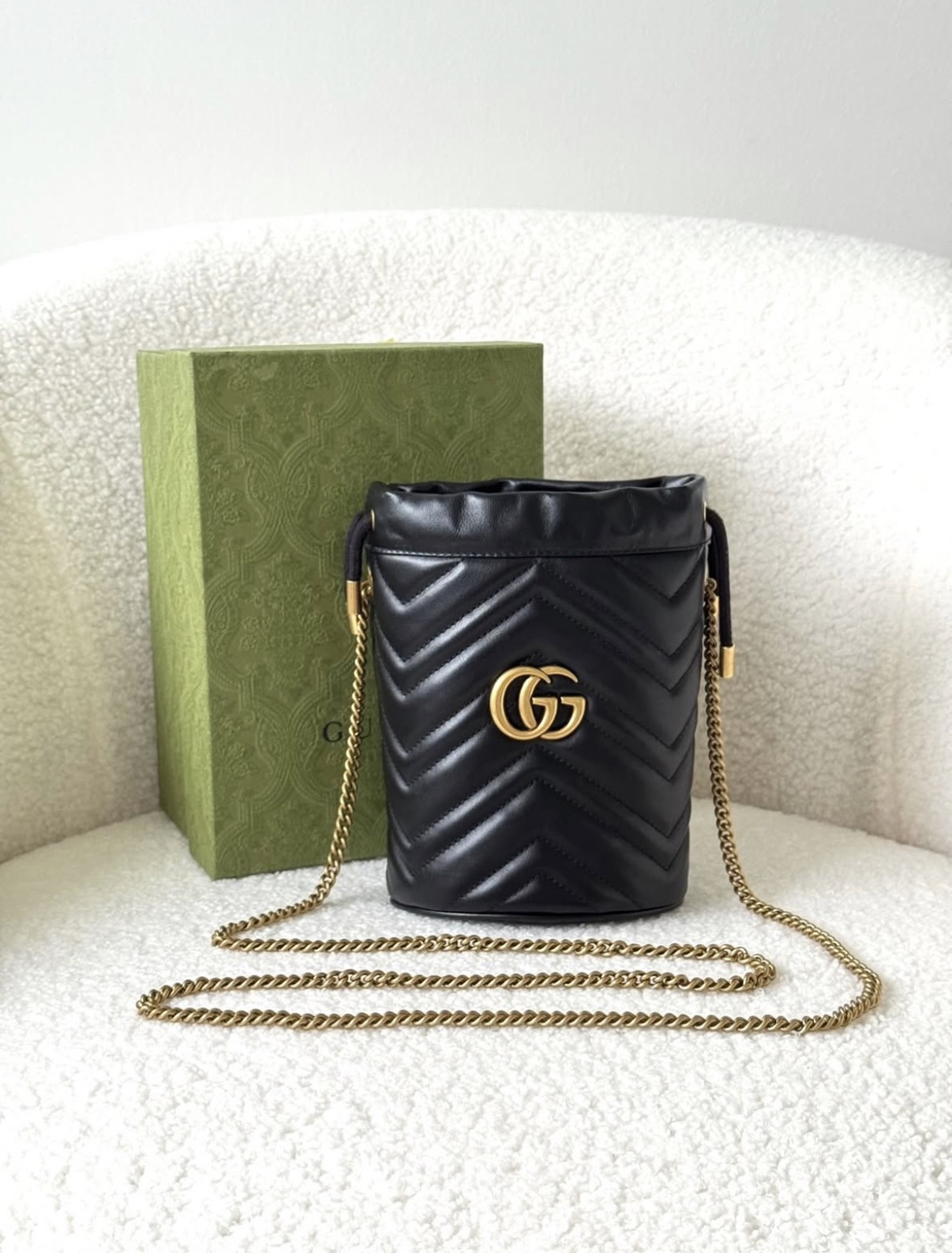 本篇笔记关联了Gucci GG Marmont 迷你 马蒙金标Logo绗缝亮片皮革抽绳开合水桶包链条单肩斜挎包 黑色金标等商品,为用户提供真实的使用体验和购买参考。
