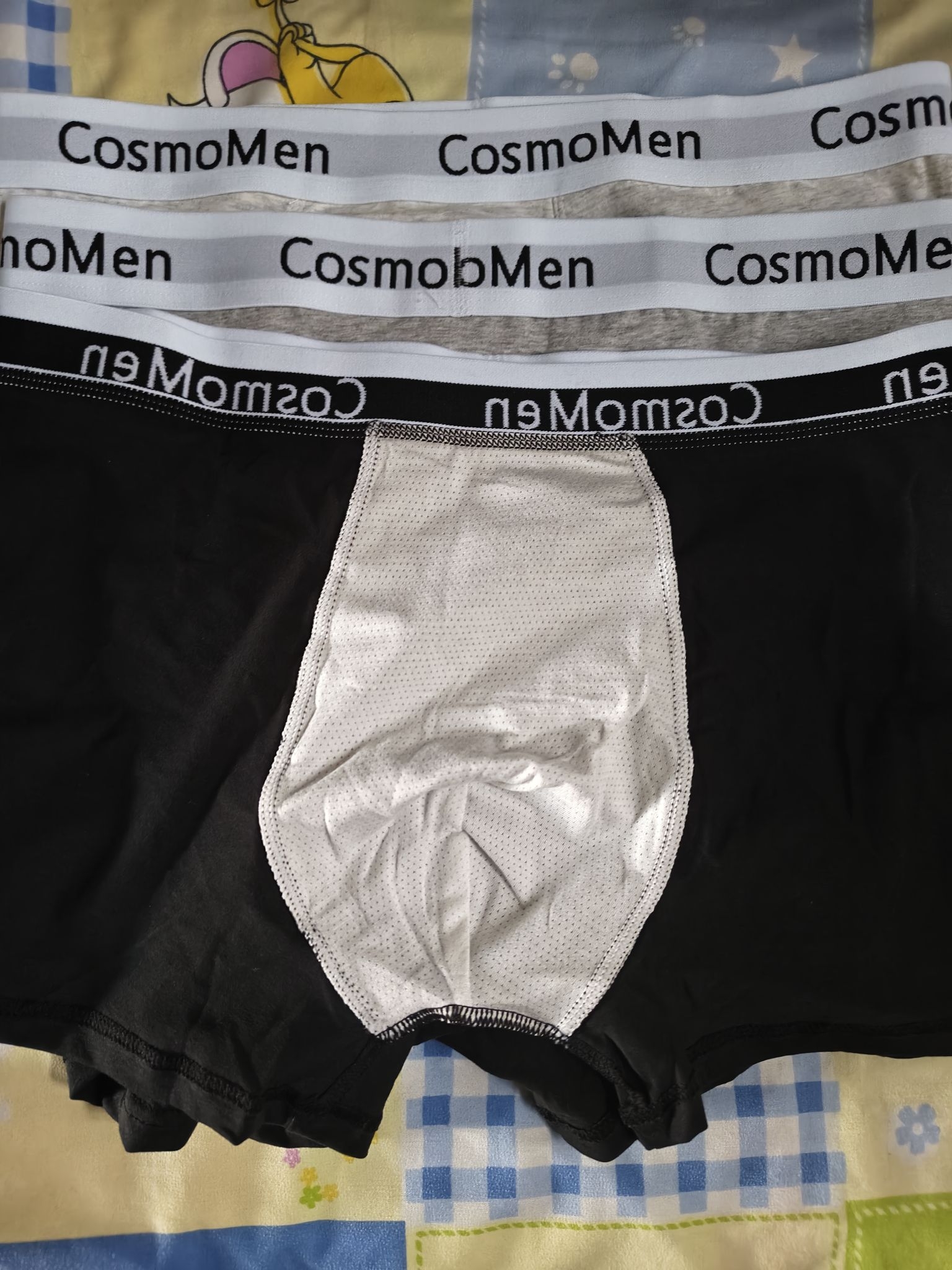 1.材质方面,采用60支兰精莫代尔面料,触感细腻柔软,吸湿排汗性能优异,夏季穿着也无闷热感;宽边弹力腰头采用高弹氨纶材质,回弹性好且不勒腰,久穿无压痕。裤身的立体剪裁贴合人体工学,囊袋承托性适中,运动或久坐都不会有束缚感;裤脚的无痕包边设计,避免了卷边尴尬,搭配紧身裤也无痕迹。基础灰黑配色耐脏易打理,是日常穿着的高性价比之选。 2. 作为男士贴身衣物,CosmoMen这款内裤在舒适性上表现亮眼。莫...