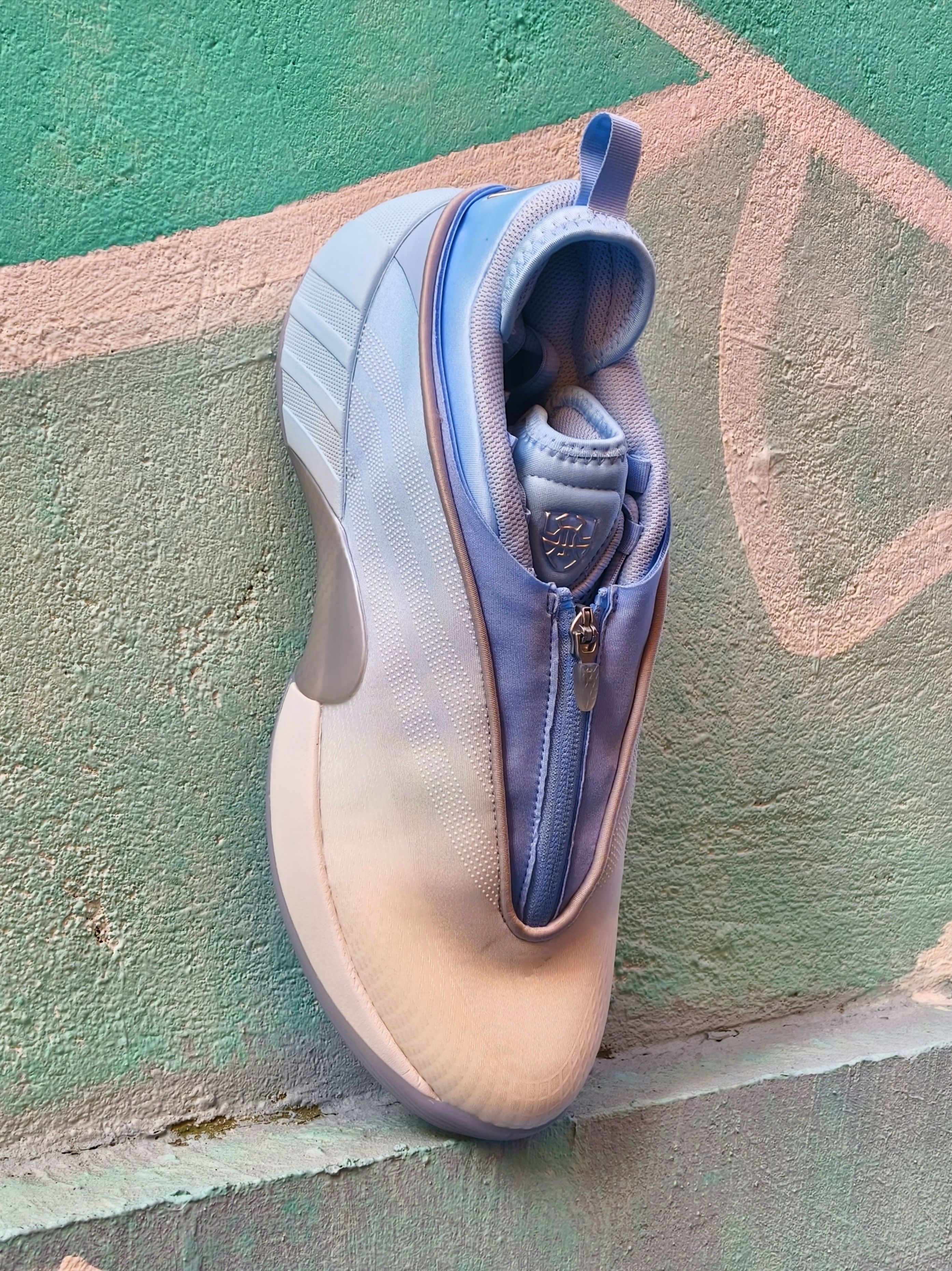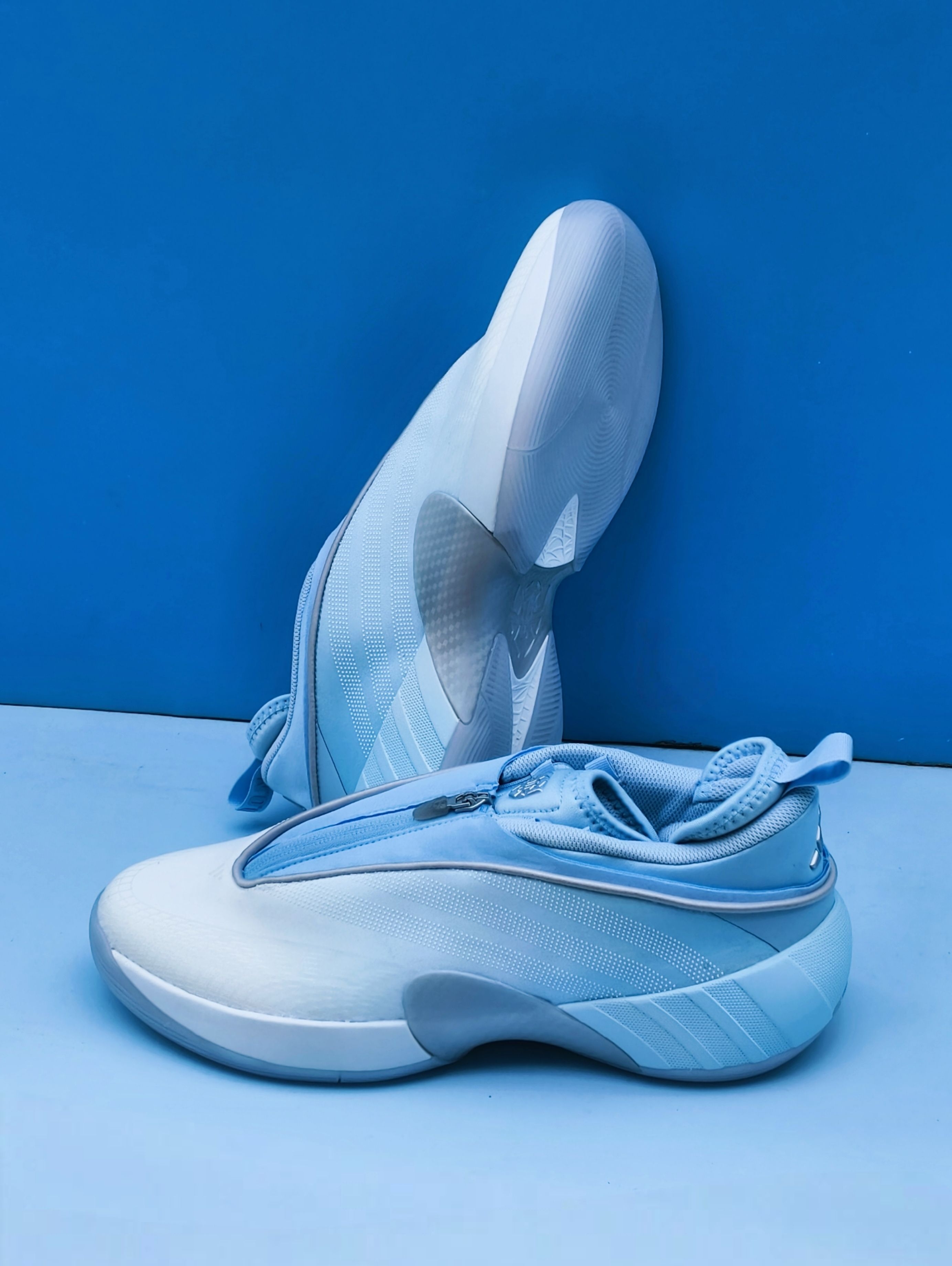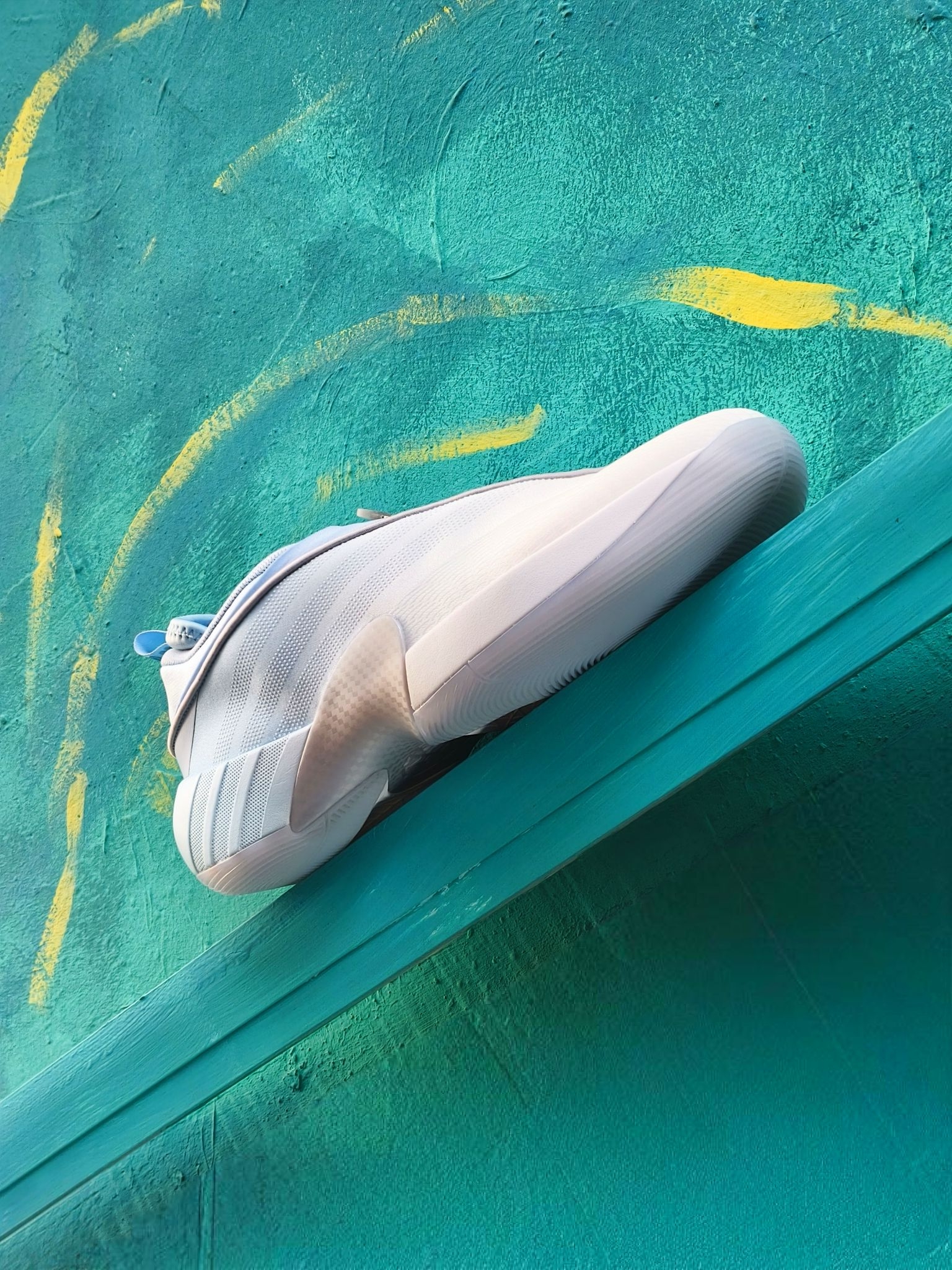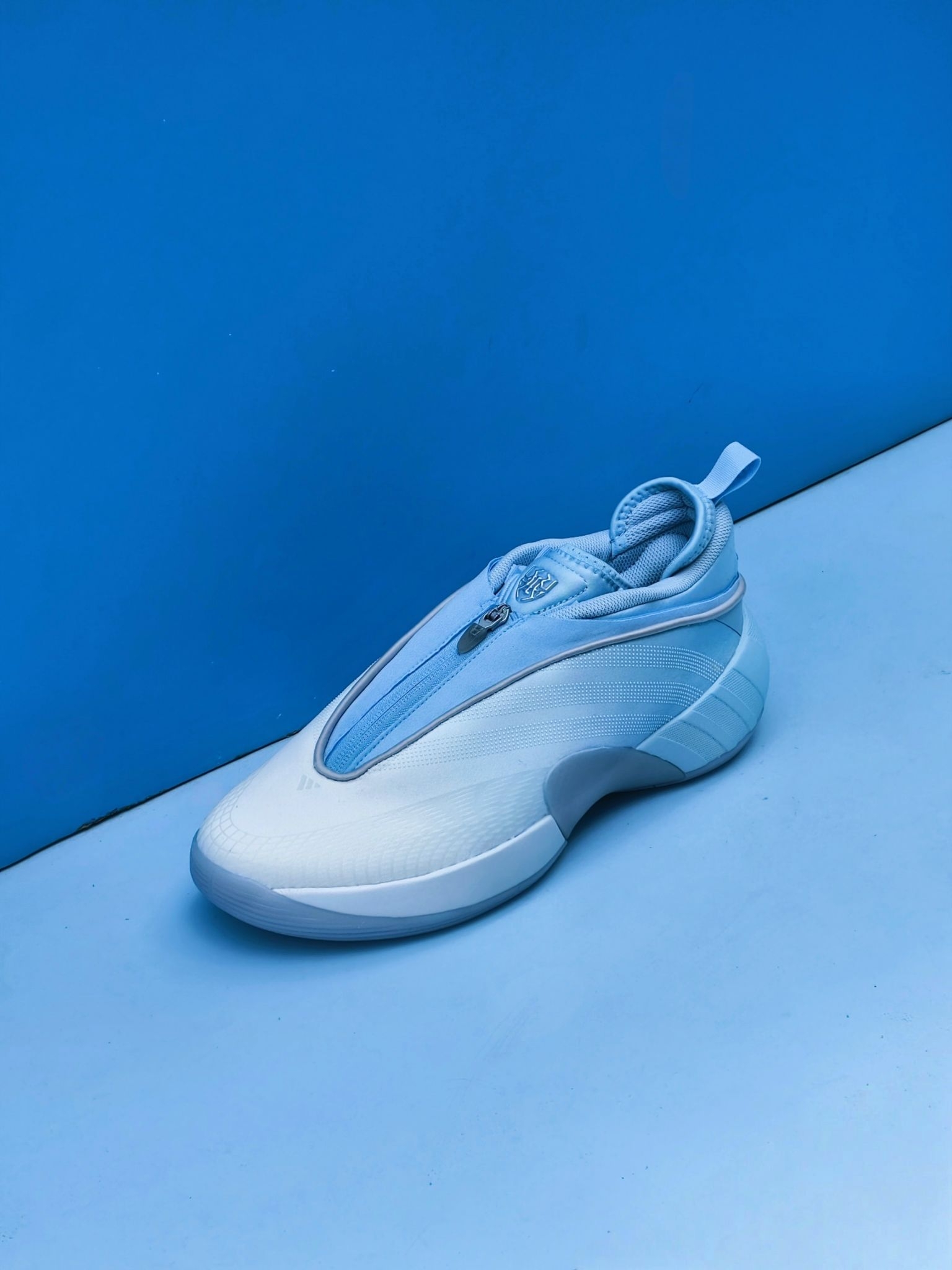 最近厦门也是一键入冬了,实战需要穿一些相对保暖的球鞋,米切尔7代是我最近的新选择。 清爽蓝白色深得我心,浅蓝和类似北卡蓝的配色没法拒绝💙 鞋面内靴式设计,包裹感绝对是到位的,拉链式的鞋带罩面能很好的锁定,不过高宽脚建议试穿,建议大半码。