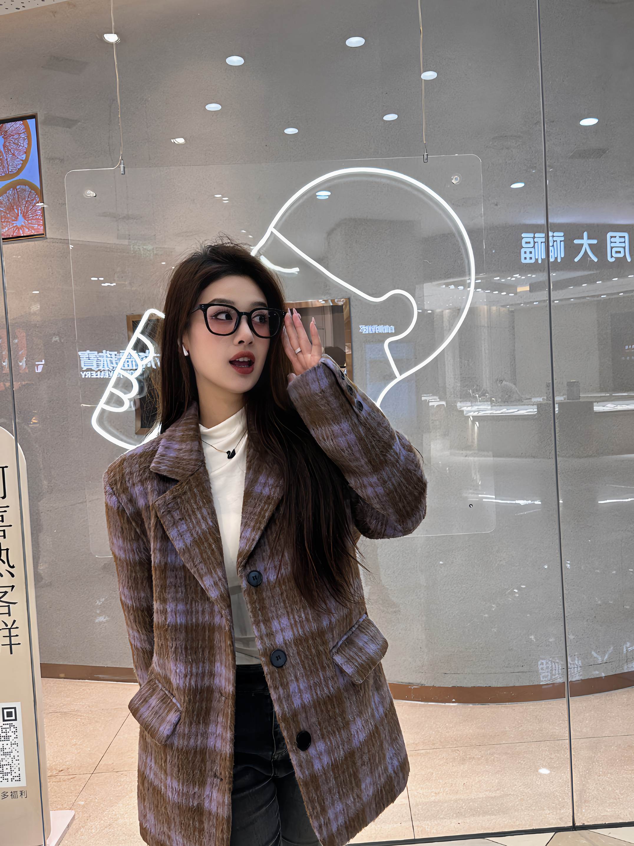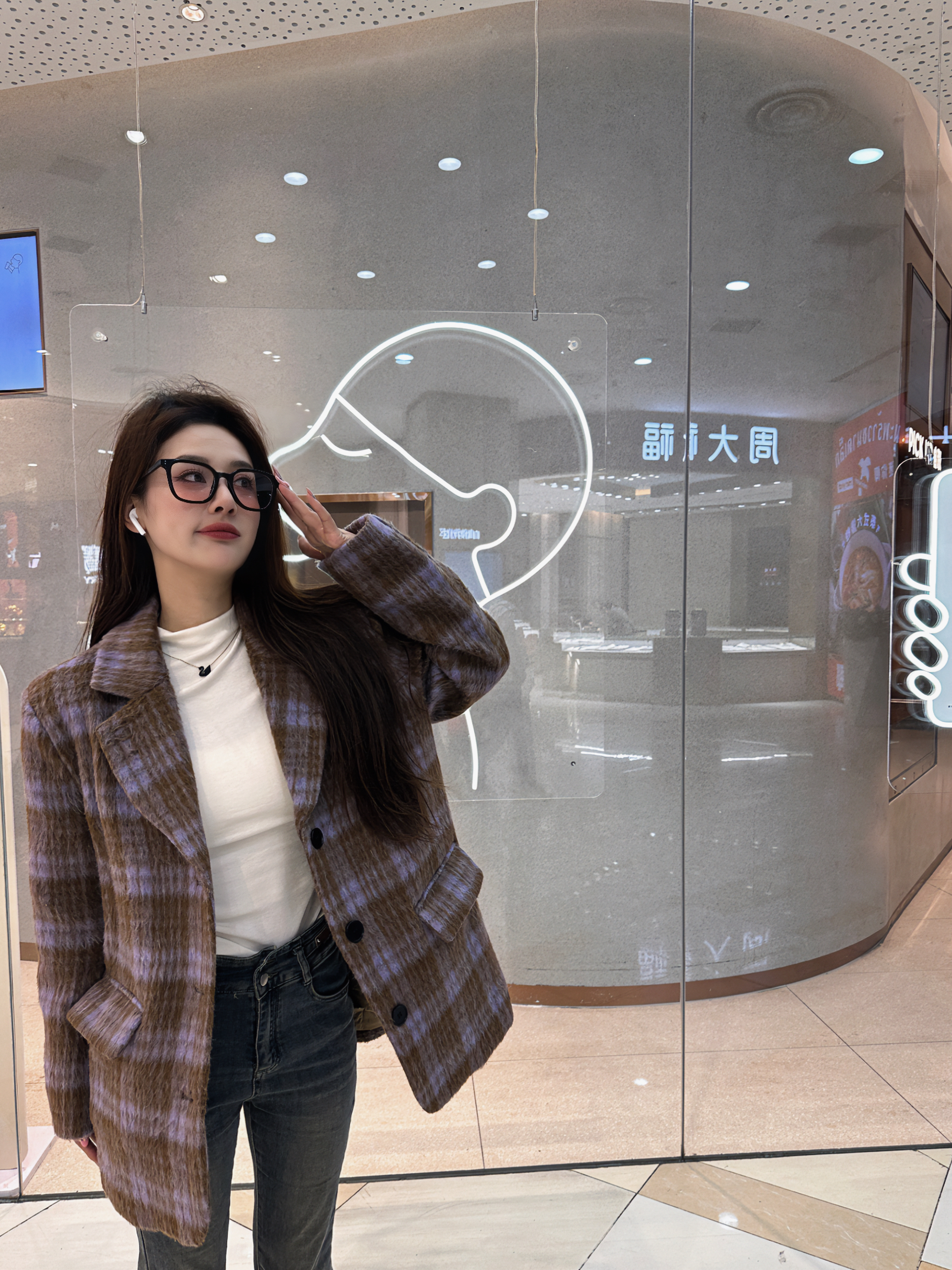 最近挖到的这件棕紫格纹大衣真的戳中我了!本来以为这种混色格纹会显老气,结果上身完全是慵懒又有腔调的感觉,毛呢的质感摸起来软乎乎的,厚度在南方过冬完全够,北方内搭多穿点也能扛住。 内搭选了件基础款的白色短袖,别觉得冬天穿短袖奇怪,这种紧身的白色短袖贴身穿特别舒服,还能在厚重的大衣里露出一点干净的领口,中和了大衣的厚重感,视觉上还能拉长颈部线条。而且白色和大衣的棕紫色撞在一起,一下子就把沉闷的冬日穿搭...