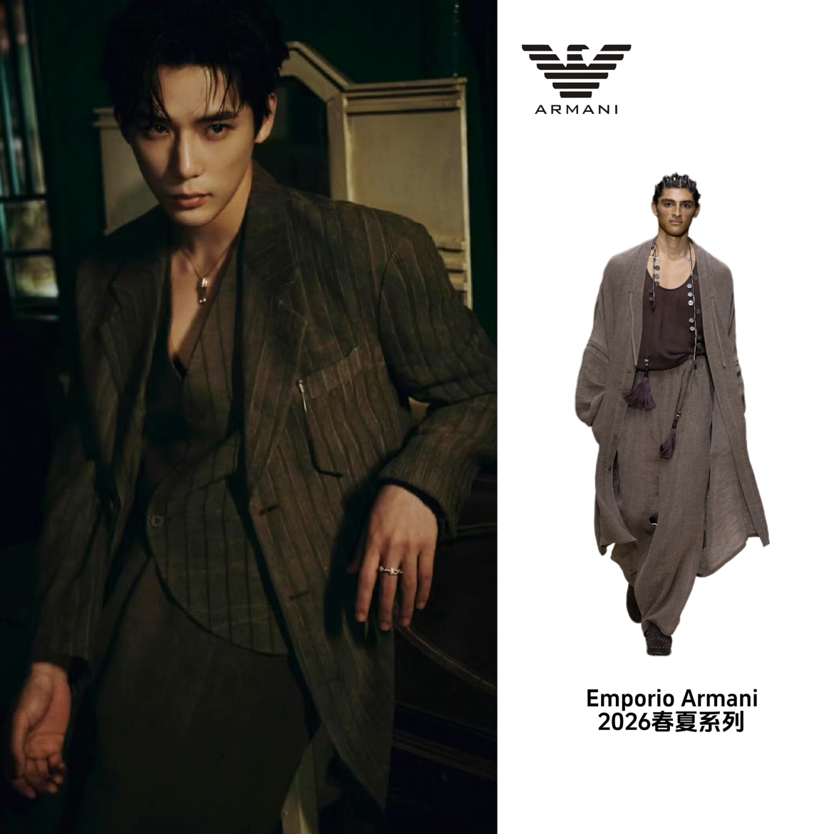 谁懂啊家人们!王安宇这身造型直接把雅痞绅士的氛围感拉满,深棕条纹廓形西装搭蒂芙尼珠宝腕表,贵气又不刻意,松弛感拿捏得死死的,男生这么穿真的帅到犯规! 🧥 穿搭核心单品拆解 1. Emporio Armani 2026春夏系列条纹西装套装 深棕细条纹的廓形剪裁太绝了,宽松的版型弱化了西装的正式感,多了几分慵懒随性,垂坠感面料还能修饰身形,不管是高个子还是微胖男生都能驾驭,单穿内搭真空或者配简约打...