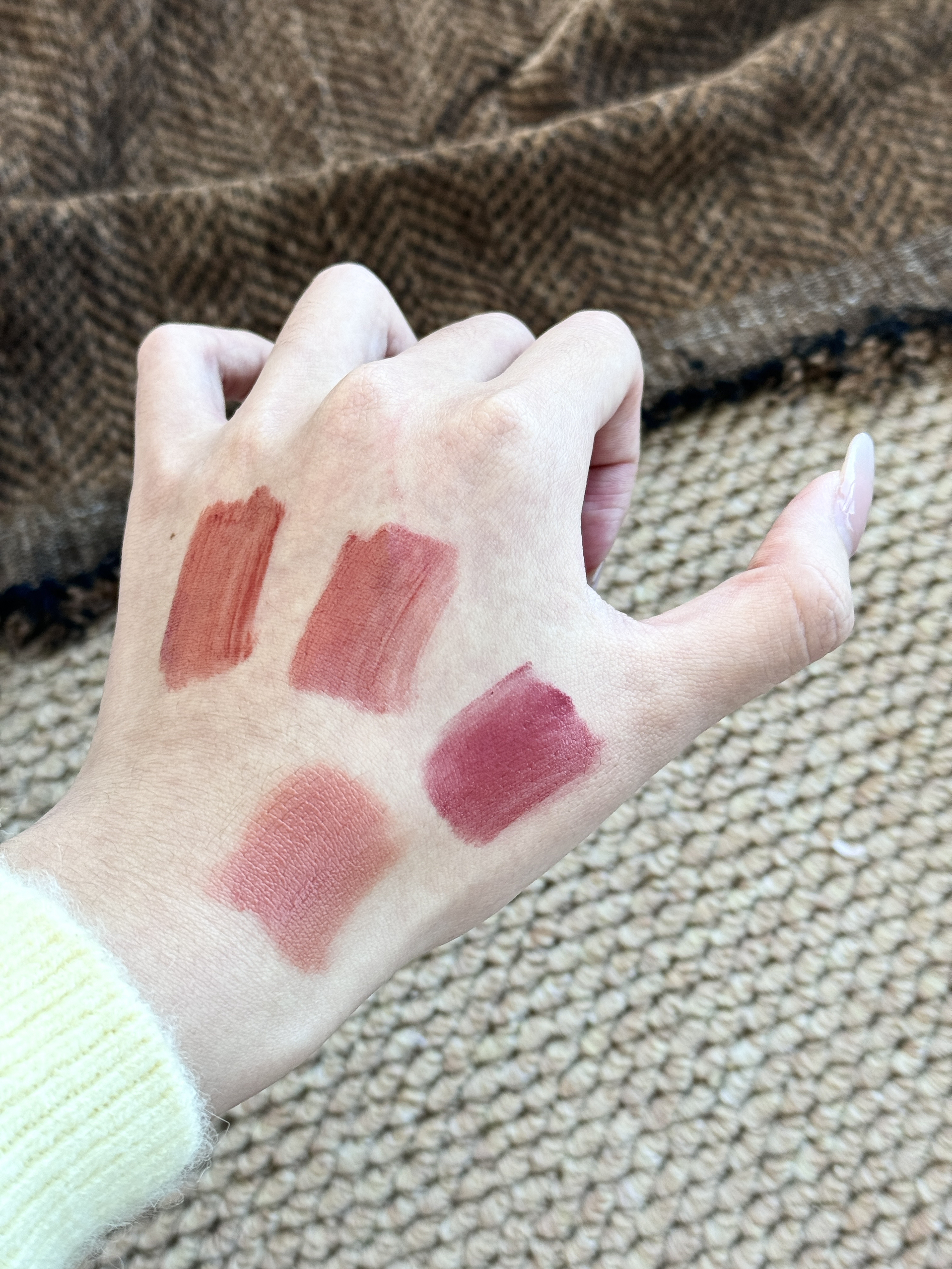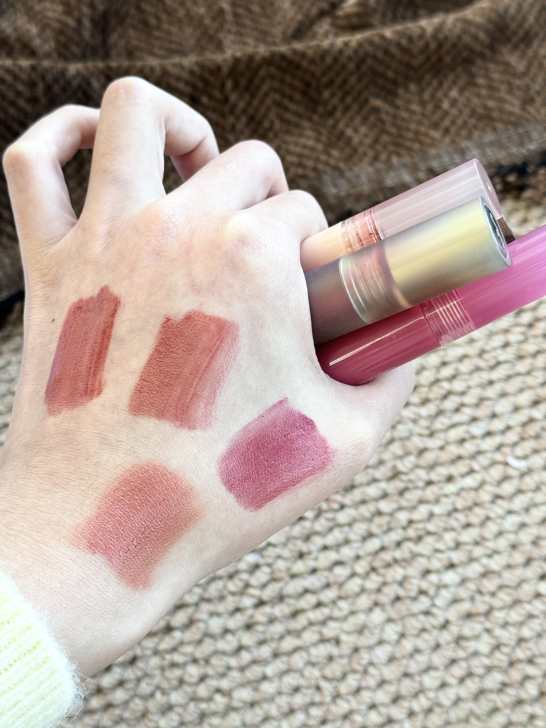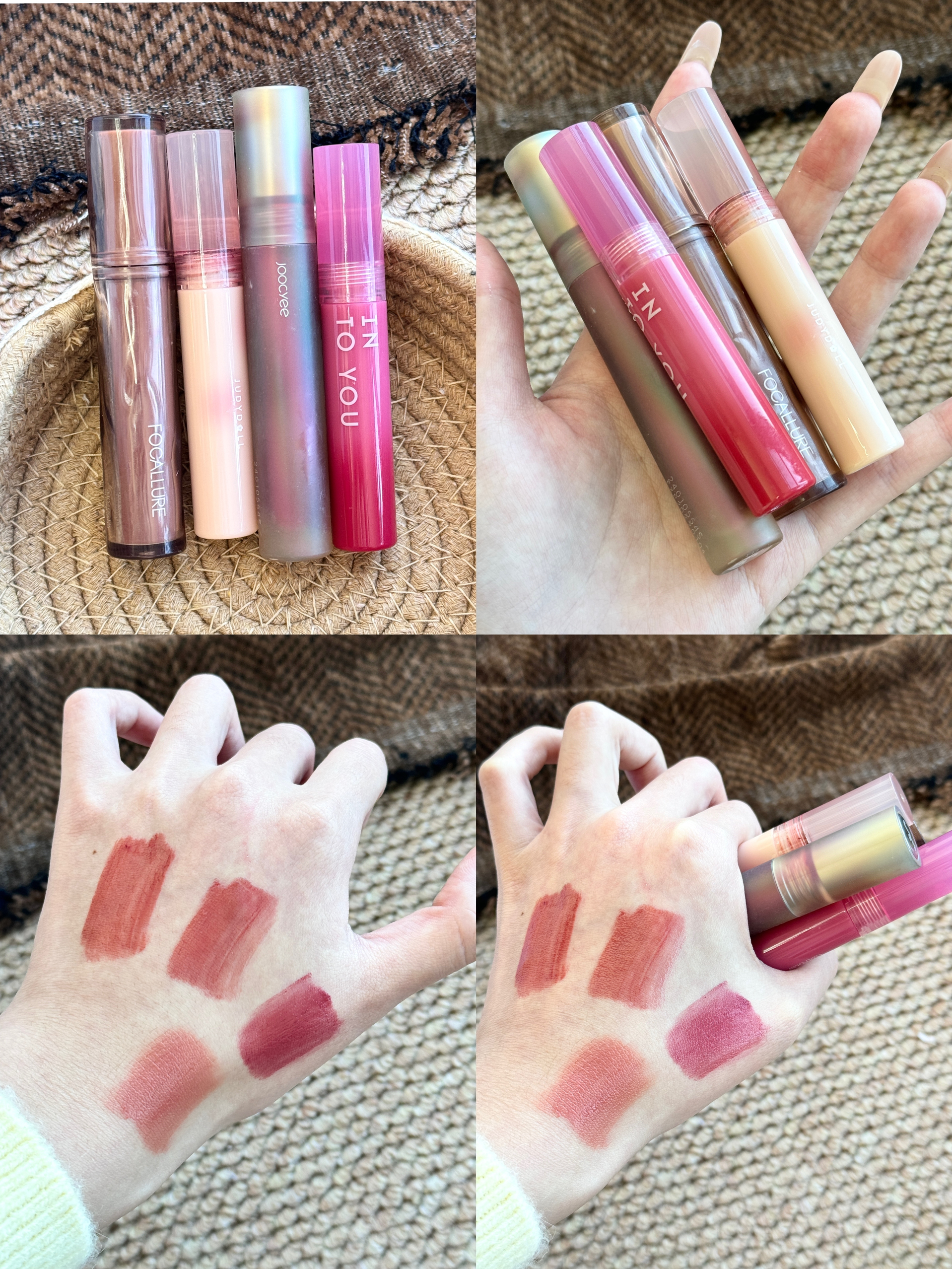 最近翻牌率超高的四支唇釉 直接承包了我日常所有妆容! 每一支都各有各的好,完全舍不得闲置~ 菲鹿儿这支低饱和咖调棕 薄涂是那种很高级的伪素颜 深唇涂也不会显脏,黄皮素颜提气色一绝 橘朵的裸粉色就很适合叠涂 单涂的话是淡淡的白开水唇色,温柔到骨子里 酵色的这支灰调豆沙,质地是那种丝滑的雾面感 抿嘴的时候完全不卡唇纹,通勤涂它超有气质 intoyou的玫粉色是我偶尔想换风格的选择 甜妹感拉满,涂上去...